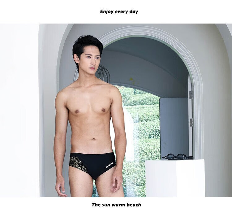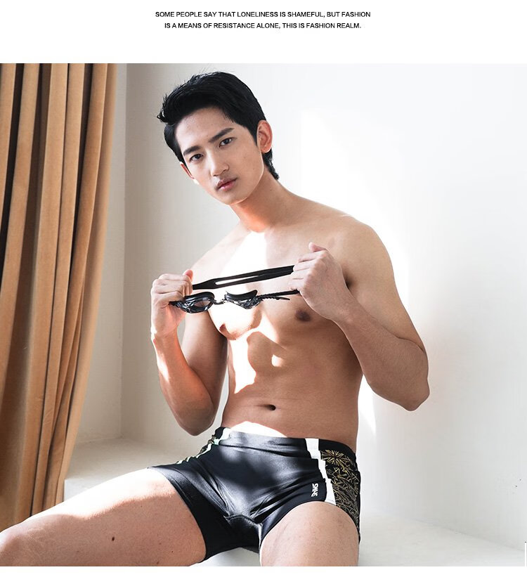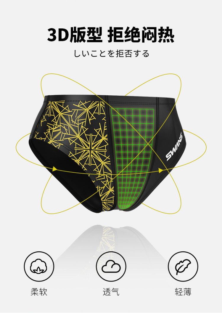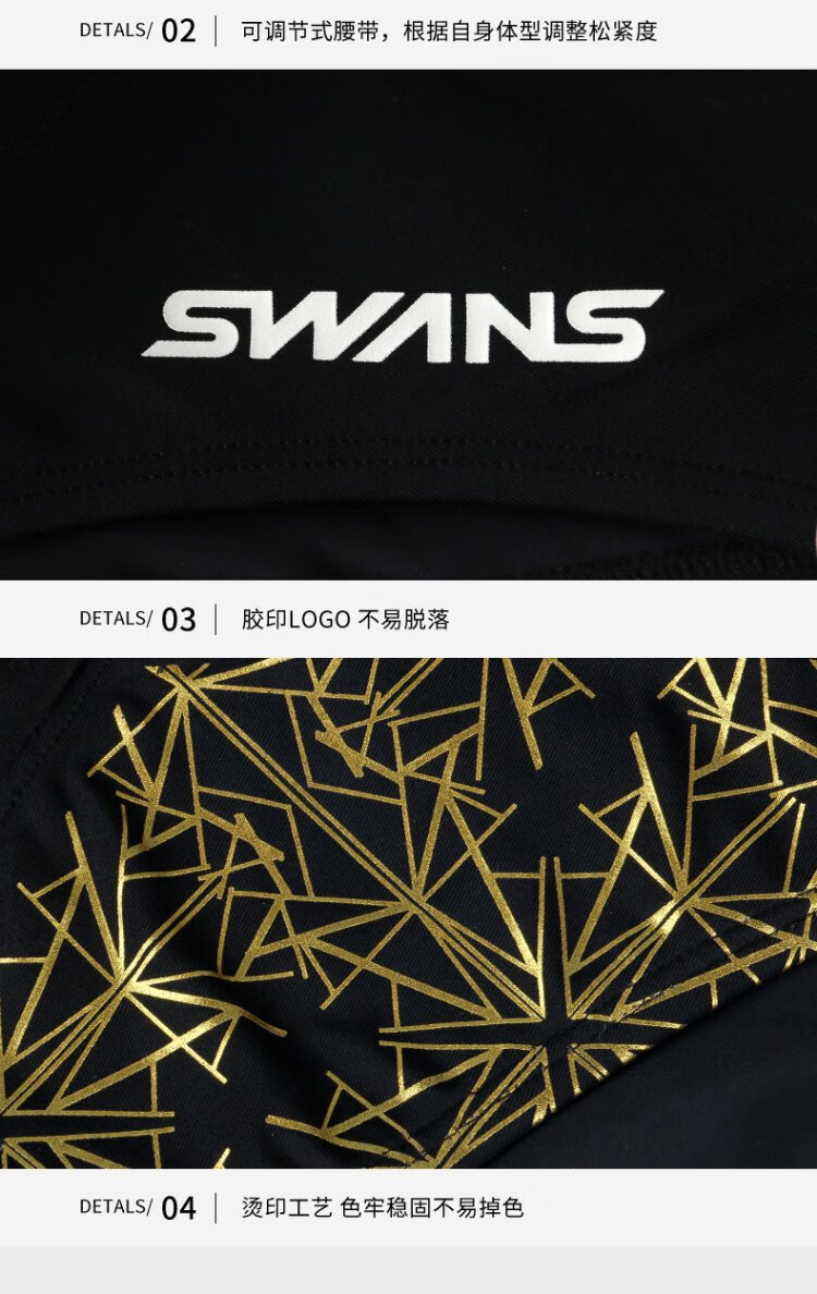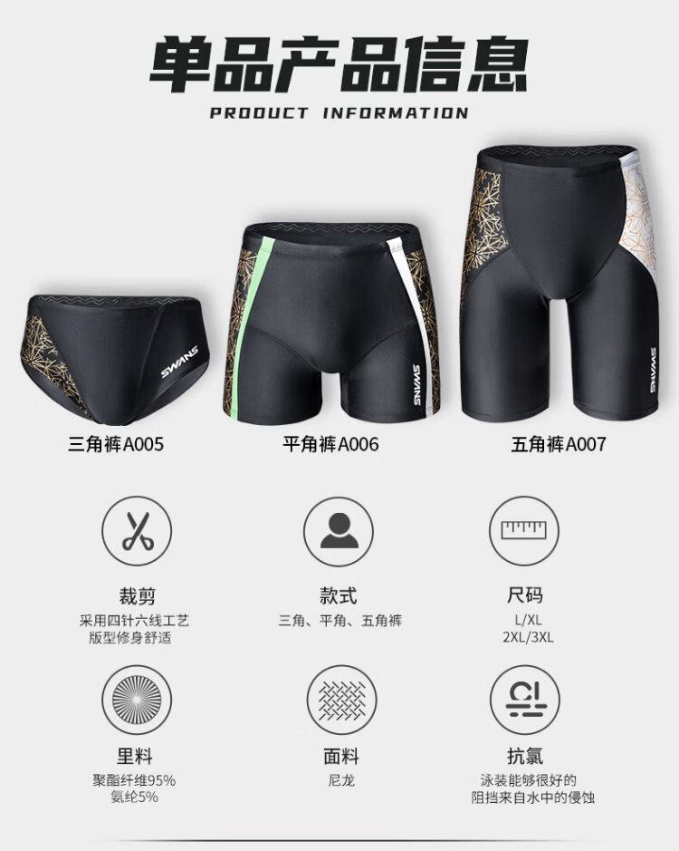 SWANS swimming trunks men's professional swimming shorts men's triangle professional training large size chlorine-resistant men's swimming trunks SY-A005 black 3XL size (83-90KG)