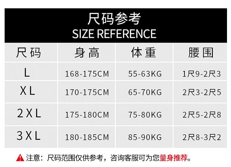 China (cm) 165 / 88-90 170 / 96-98 175 / 108-110 180 / 118-122 185 / 126-130