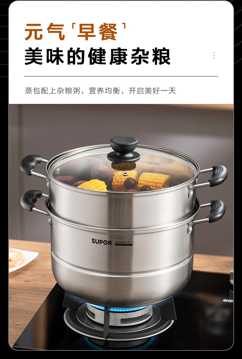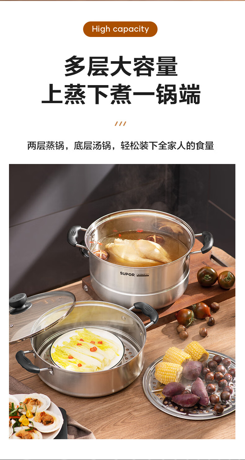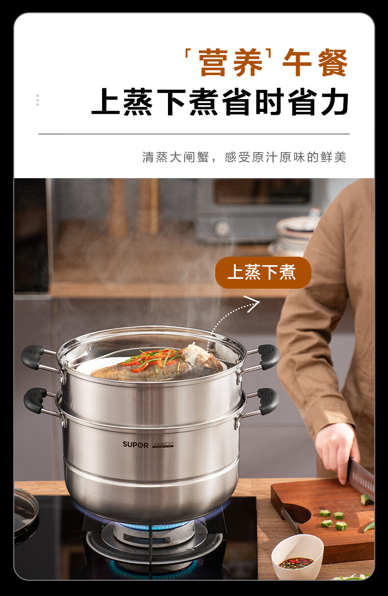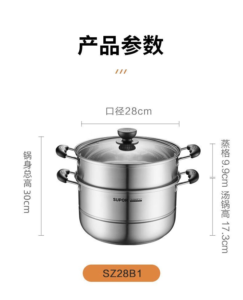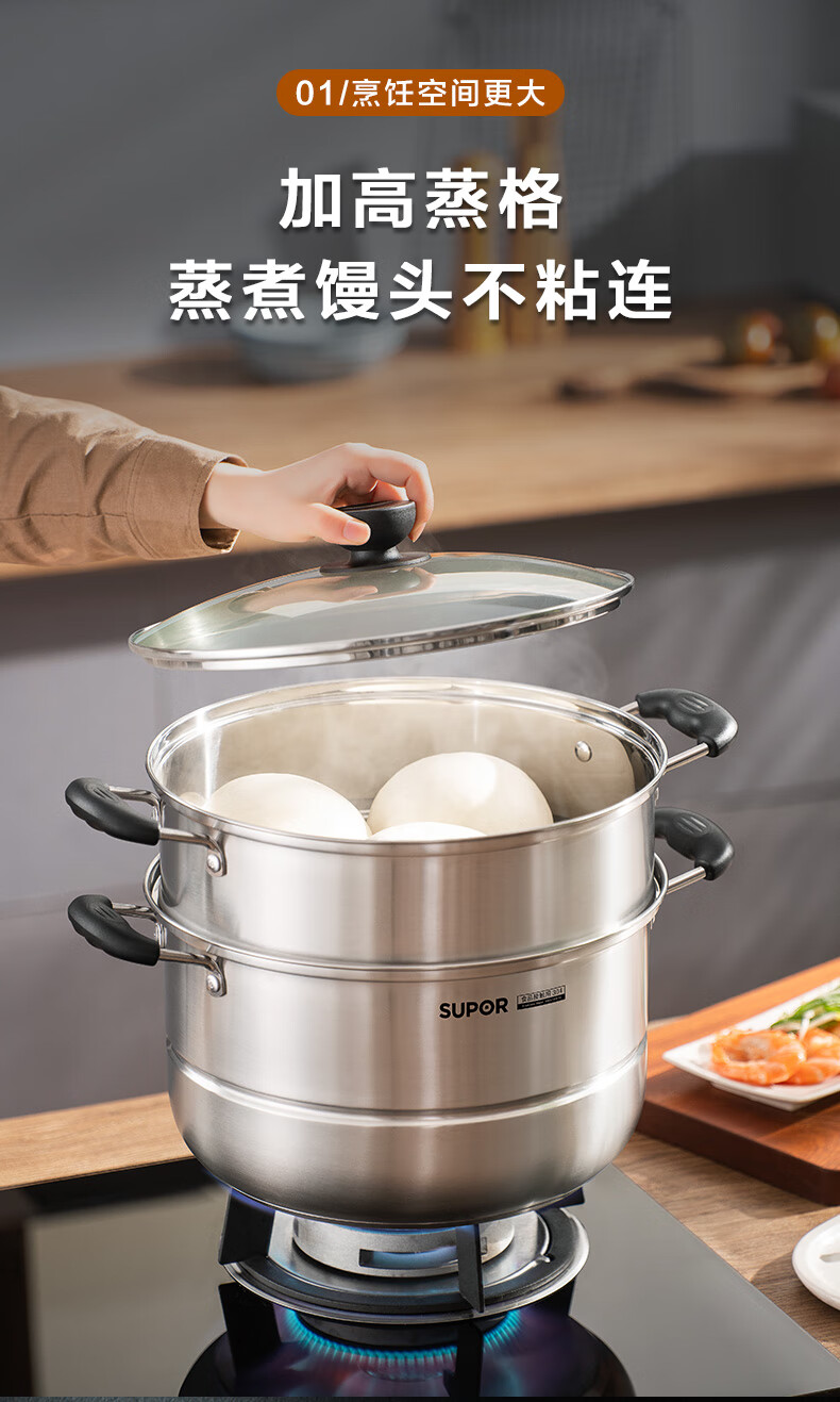 苏泊尔SUPOR易存储304不锈钢双层复底30cm蒸锅汤锅蒸笼SZ30B1