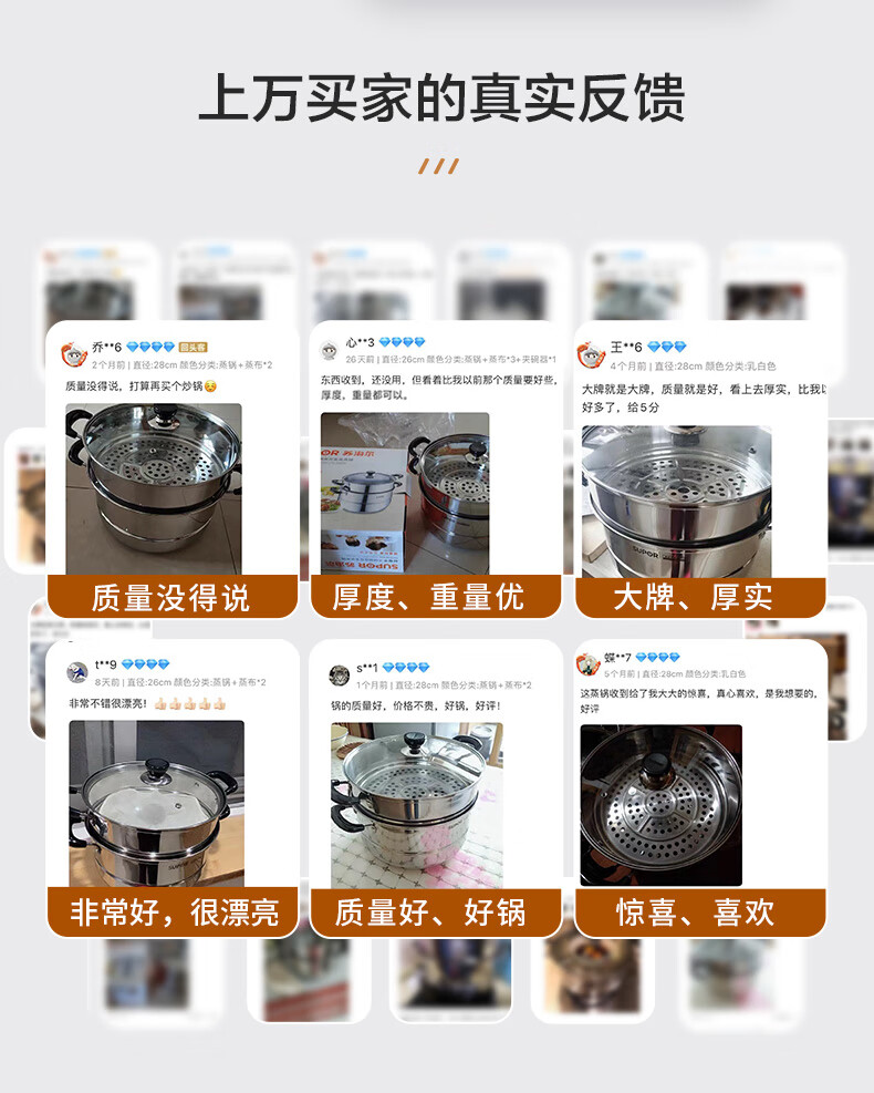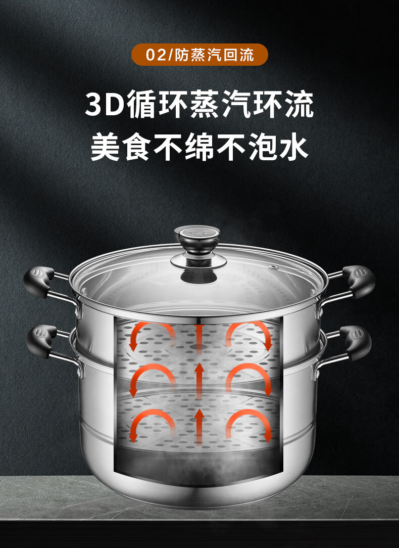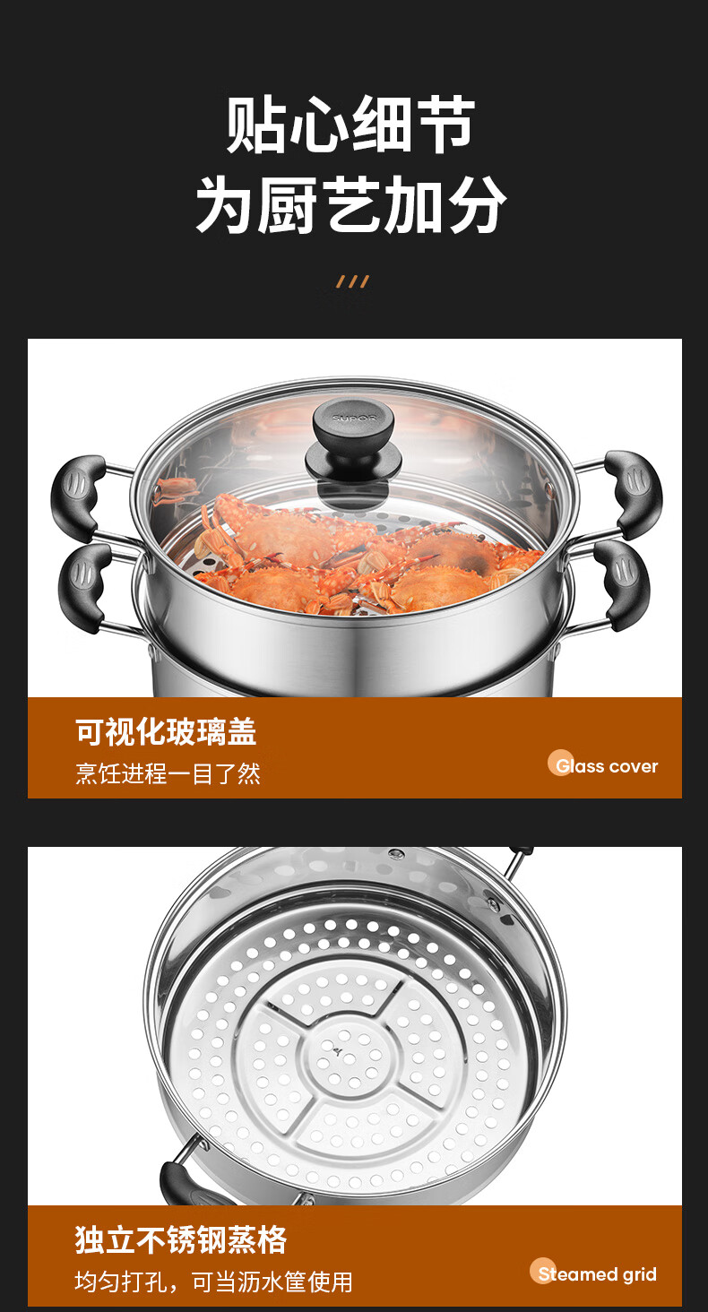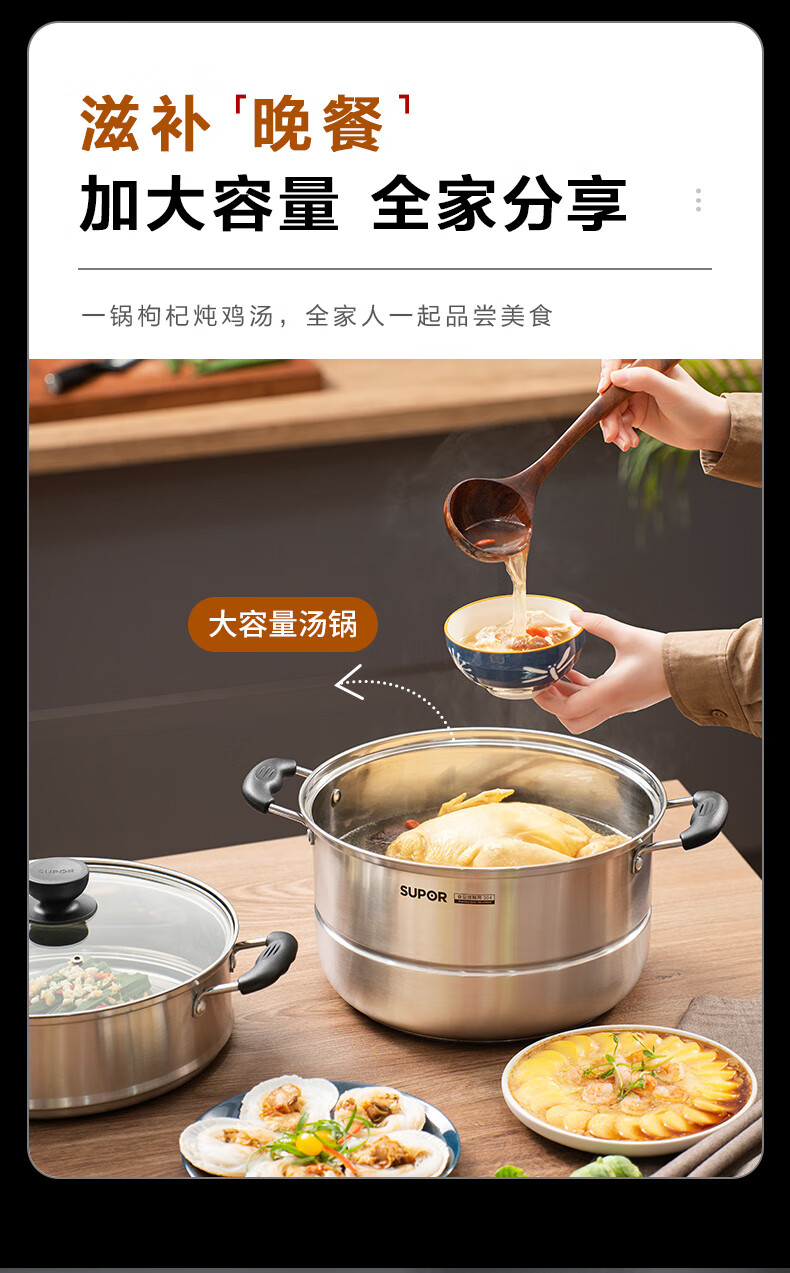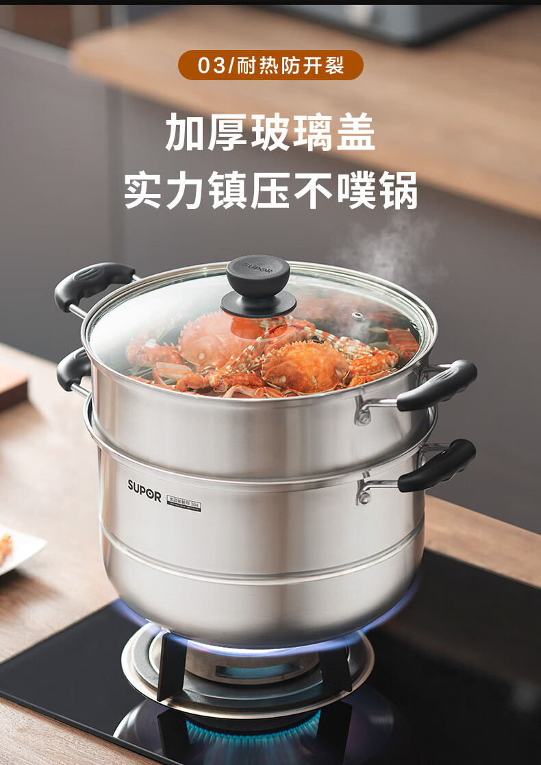 苏泊尔SUPOR易存储304不锈钢双层复底30cm蒸锅汤锅蒸笼SZ30B1