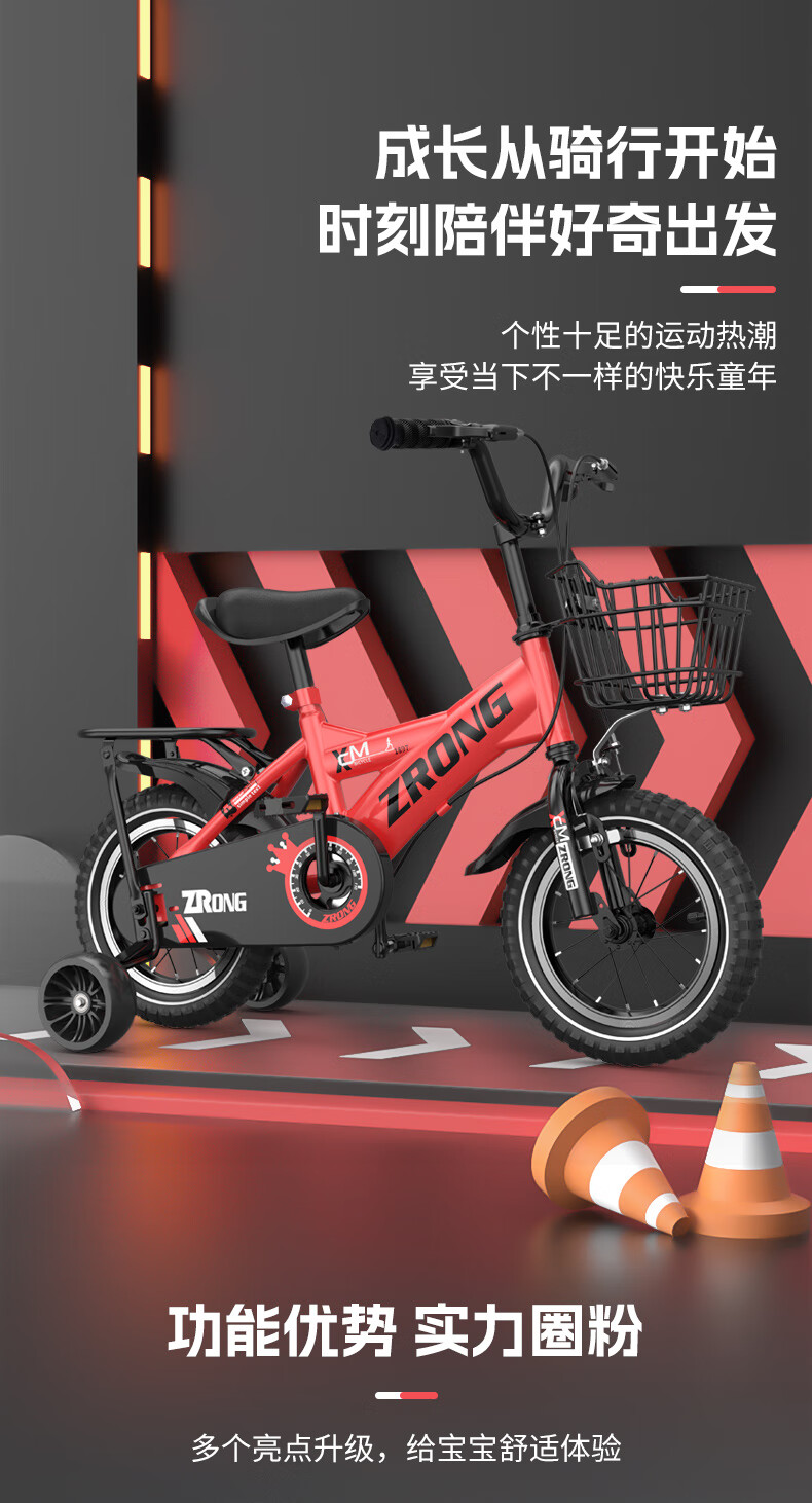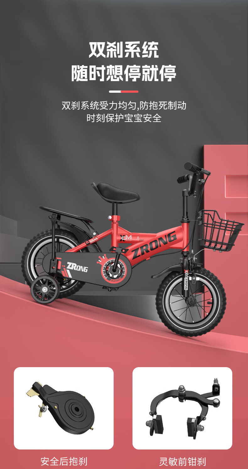 Oxlon children's bicycle 3-4-5-6-7-8 years old children's bicycle baby bicycle for boys and girls primary school children's bicycle upgraded red flagship version + widened flash wheel 14 inches suitable for 90-110cm