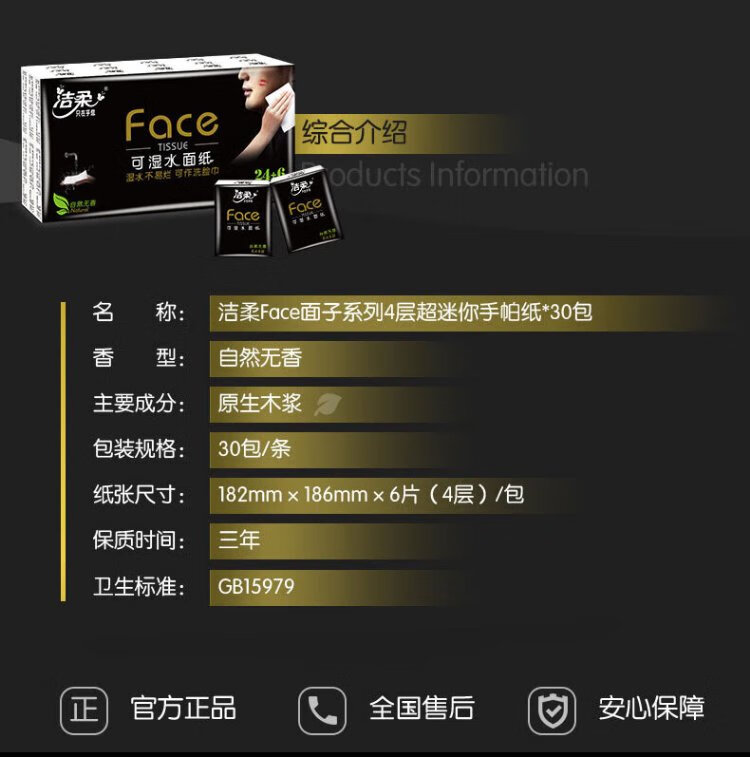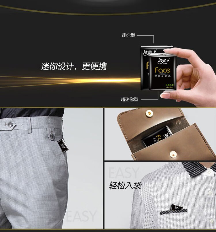 Jierou handkerchief paper black face thickened 4 layers 6 pieces * 30 packs of facial tissue small bag does not shed crumbs super portable campus must-have