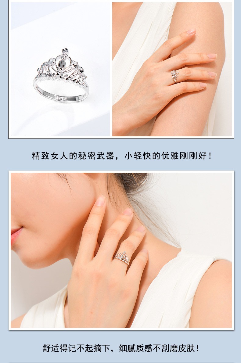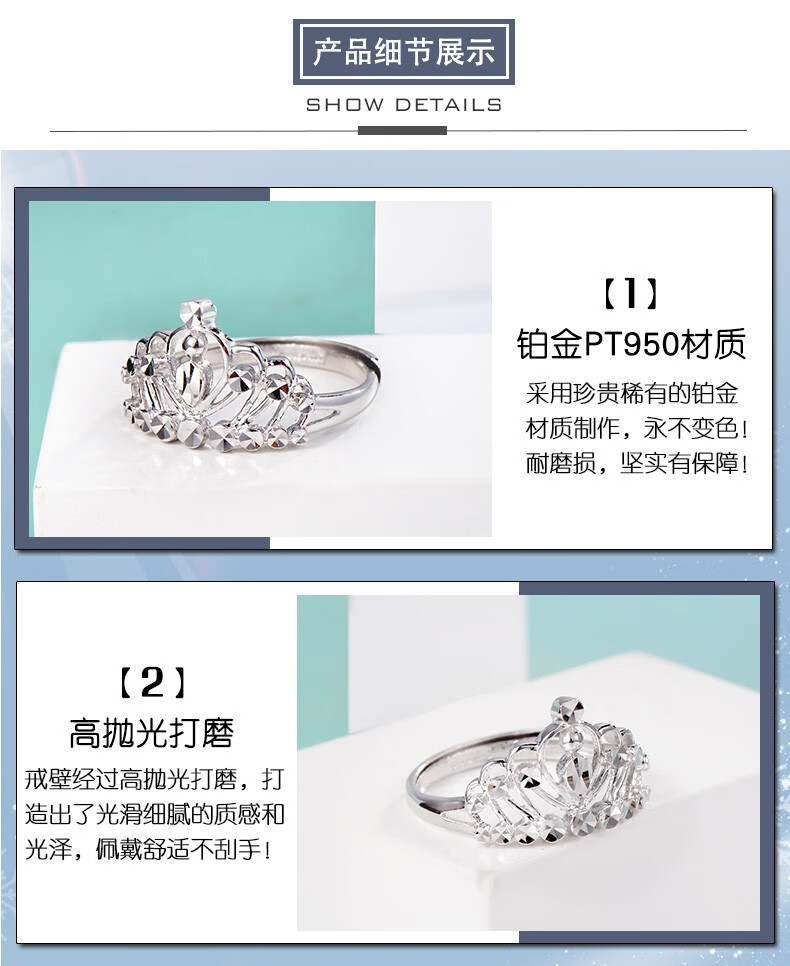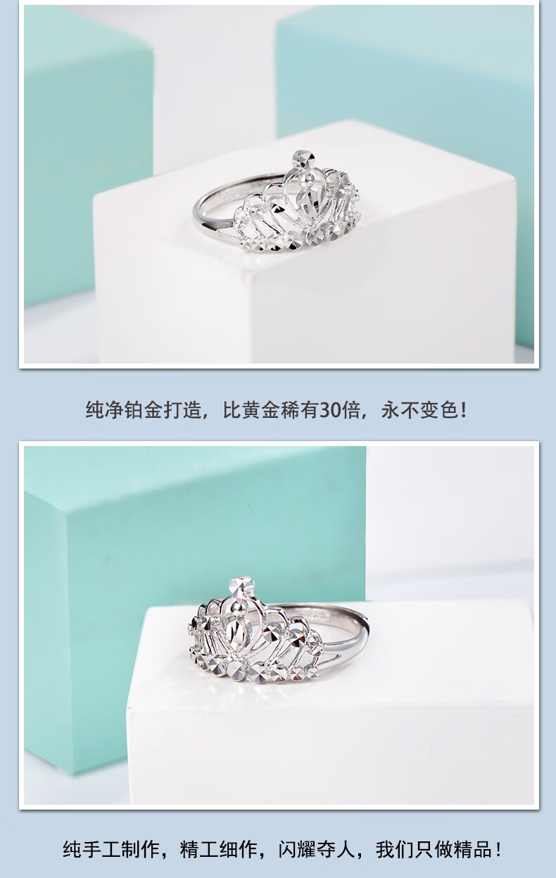 Yuan Shengfu's new PT950 crown imitation diamond platinum ring, women's platinum ring, adjustable, live and shiny, 3.50g