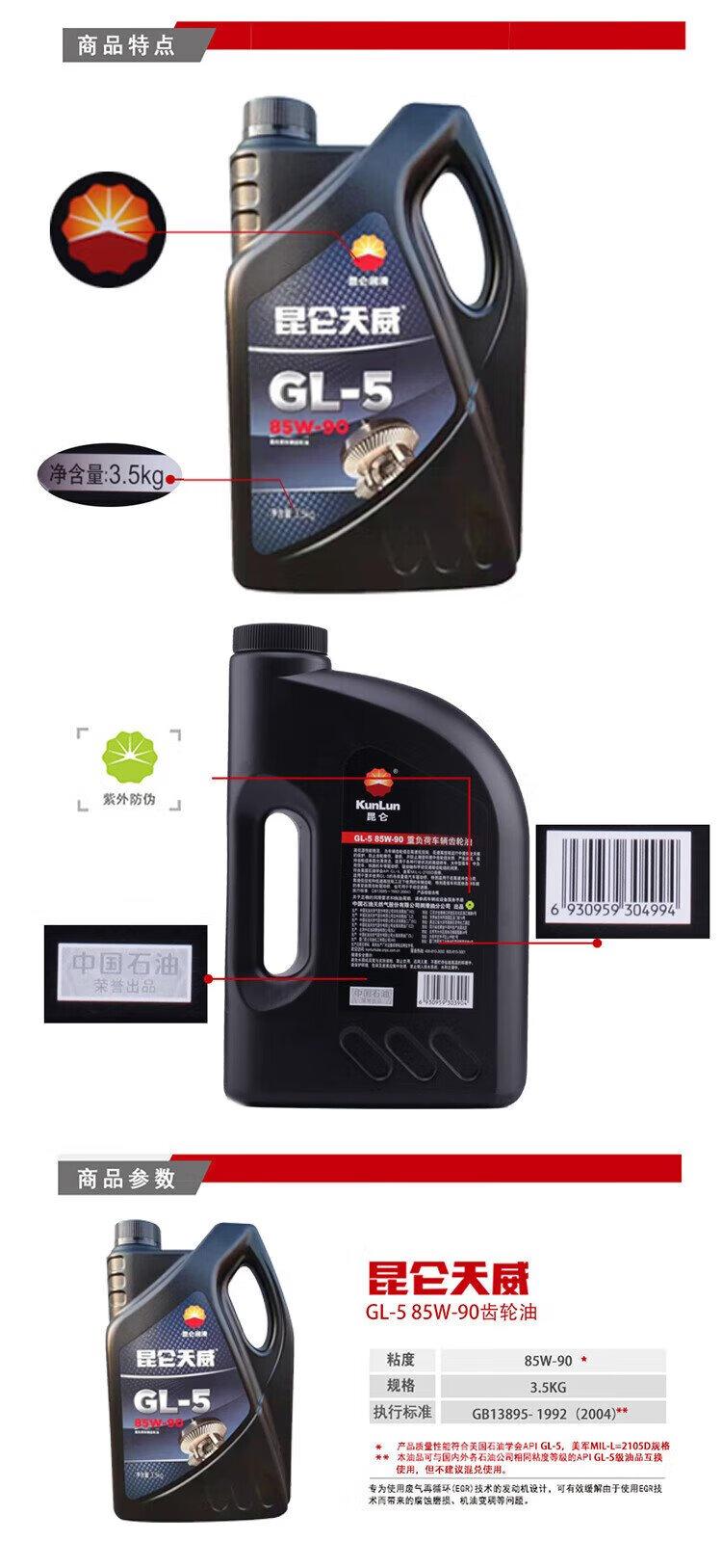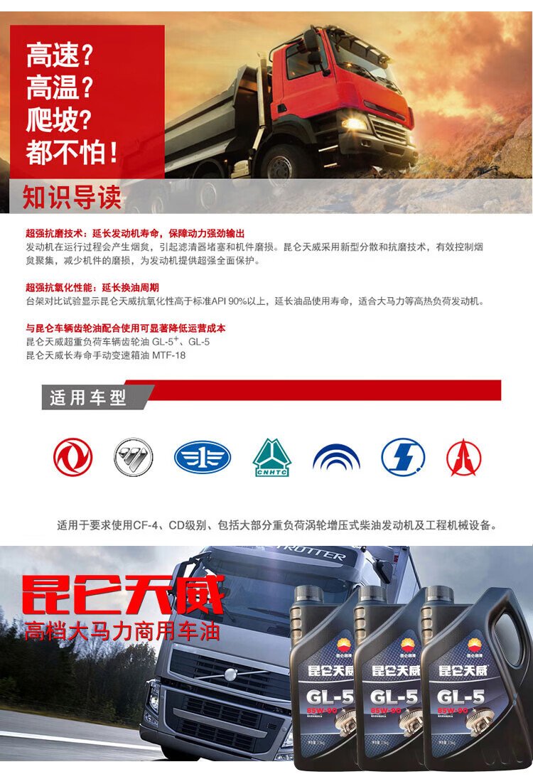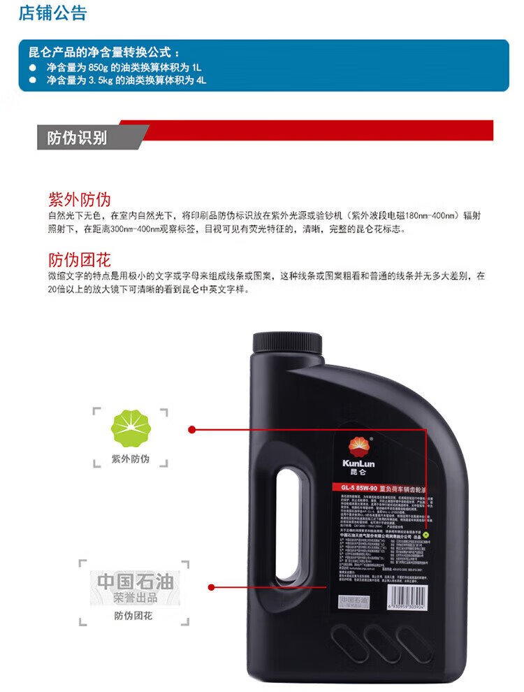 KunLun Kunlun lubricant Tianwei heavy-duty vehicle truck front and rear axle gear oil GL-5 85W-90 4L
