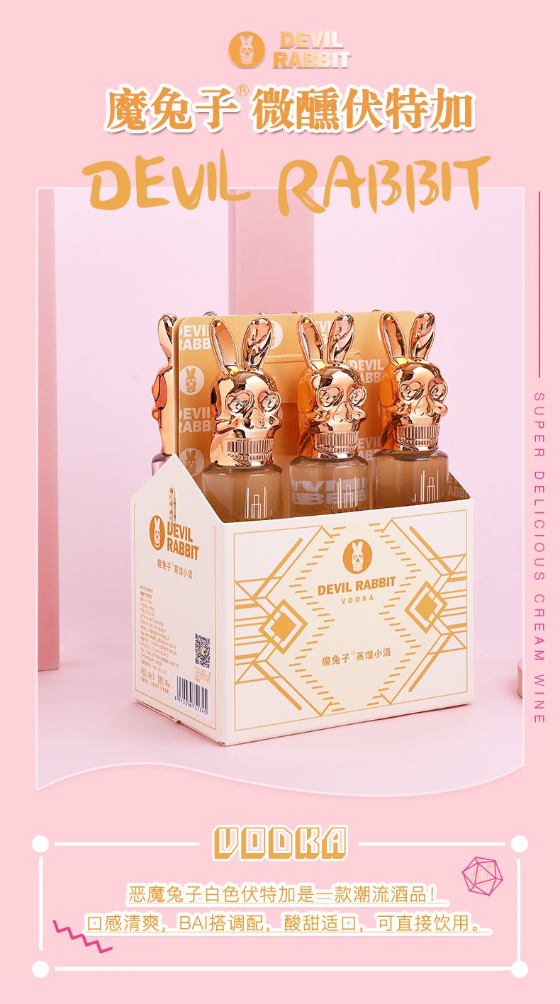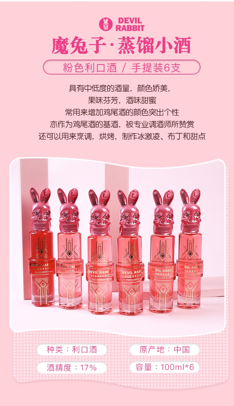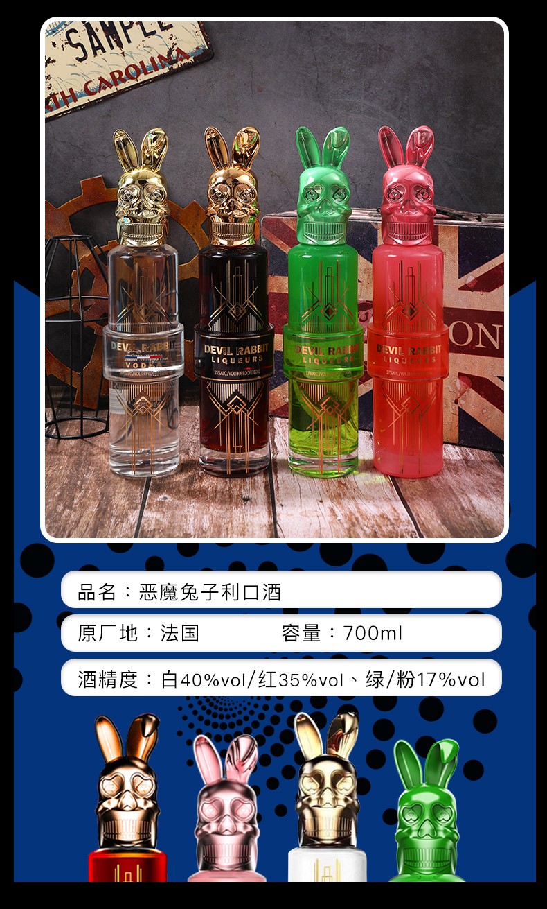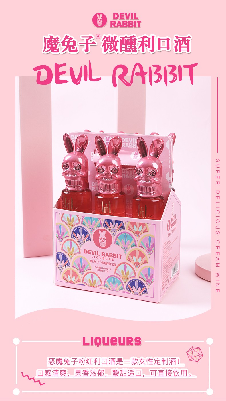 Devil Rabbit Devil Rabbit Liqueur Women's Sweet Wine Liqueur Vodka Pink French Imported Wine Fruit Wine with Box Vodka 700ml