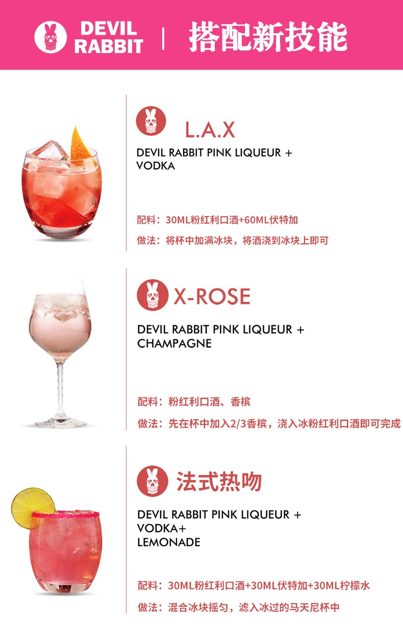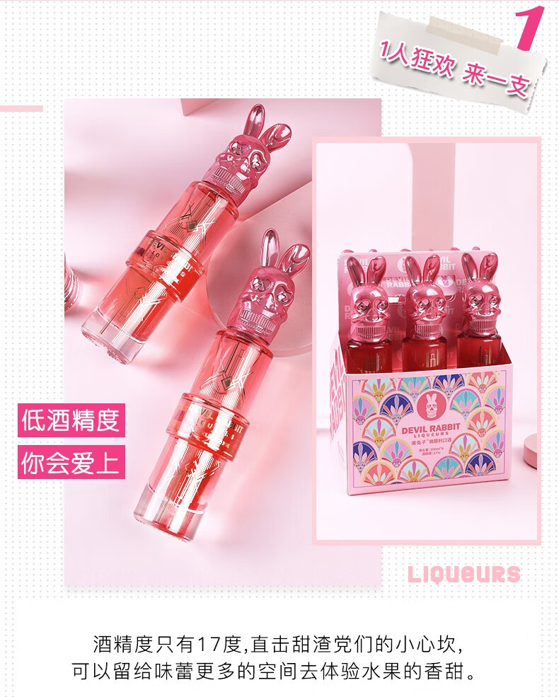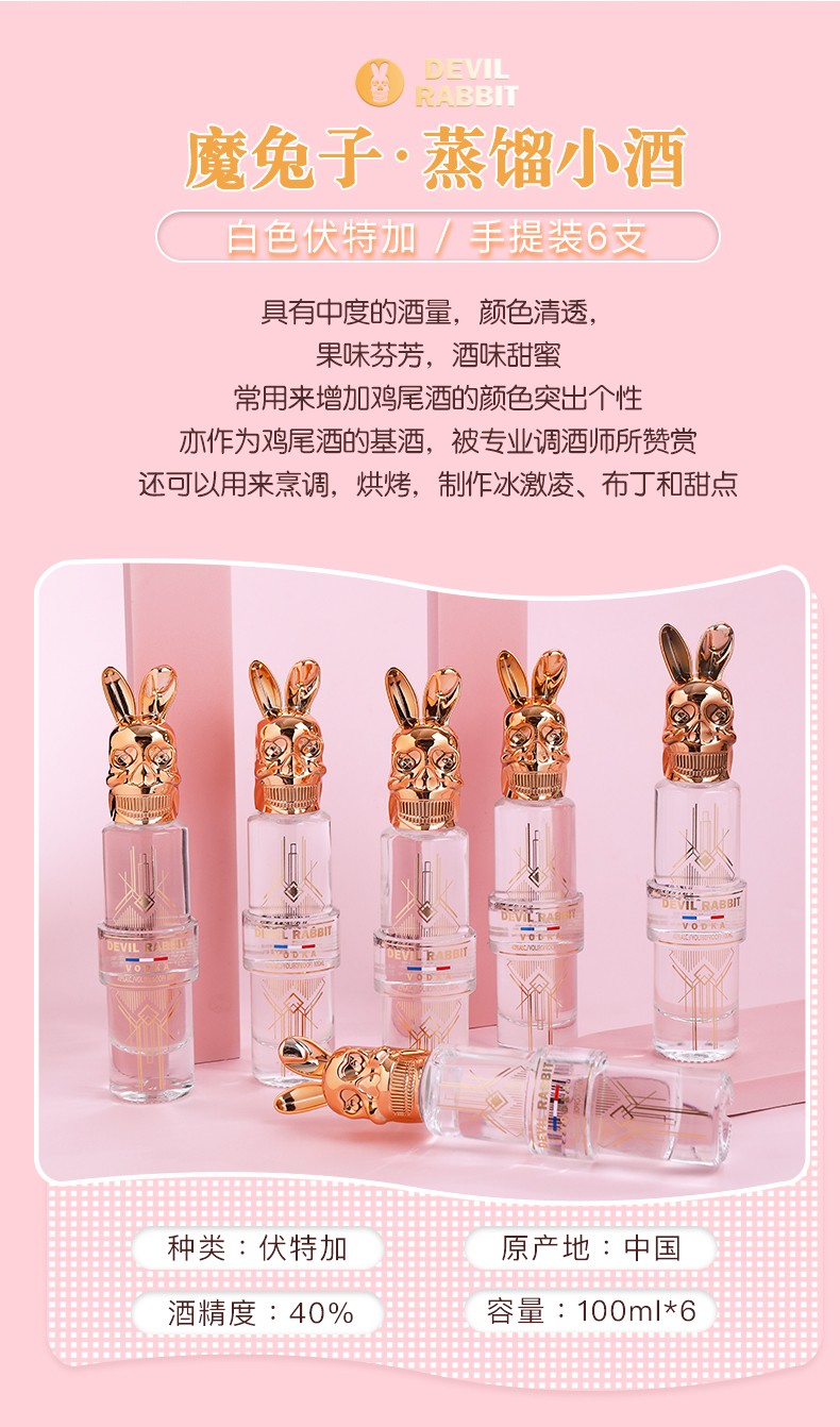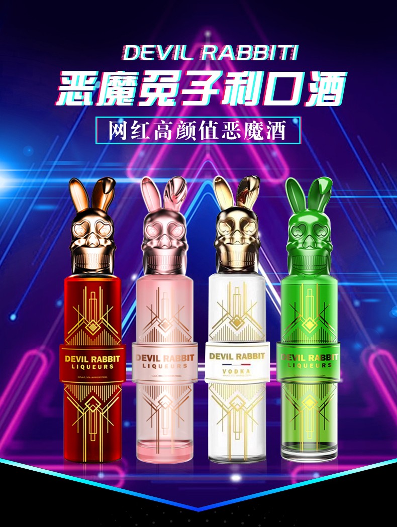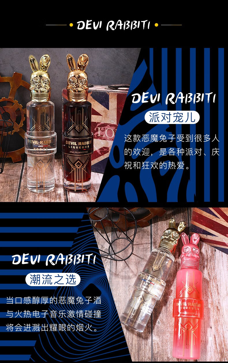 Devil Rabbit Devil Rabbit Liqueur Women's Sweet Wine Liqueur Vodka Pink French Imported Wine Fruit Wine with Box Vodka 700ml