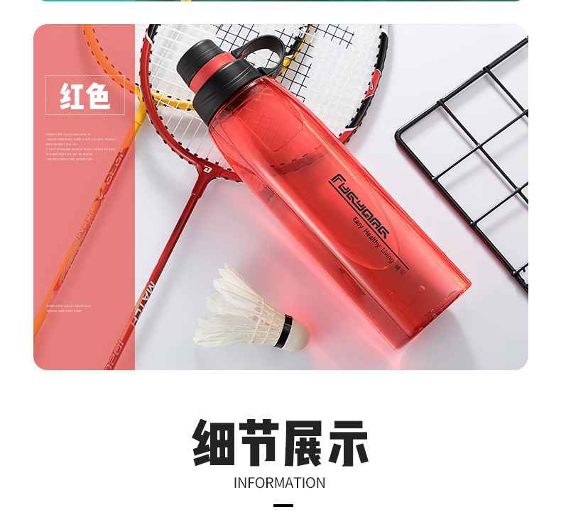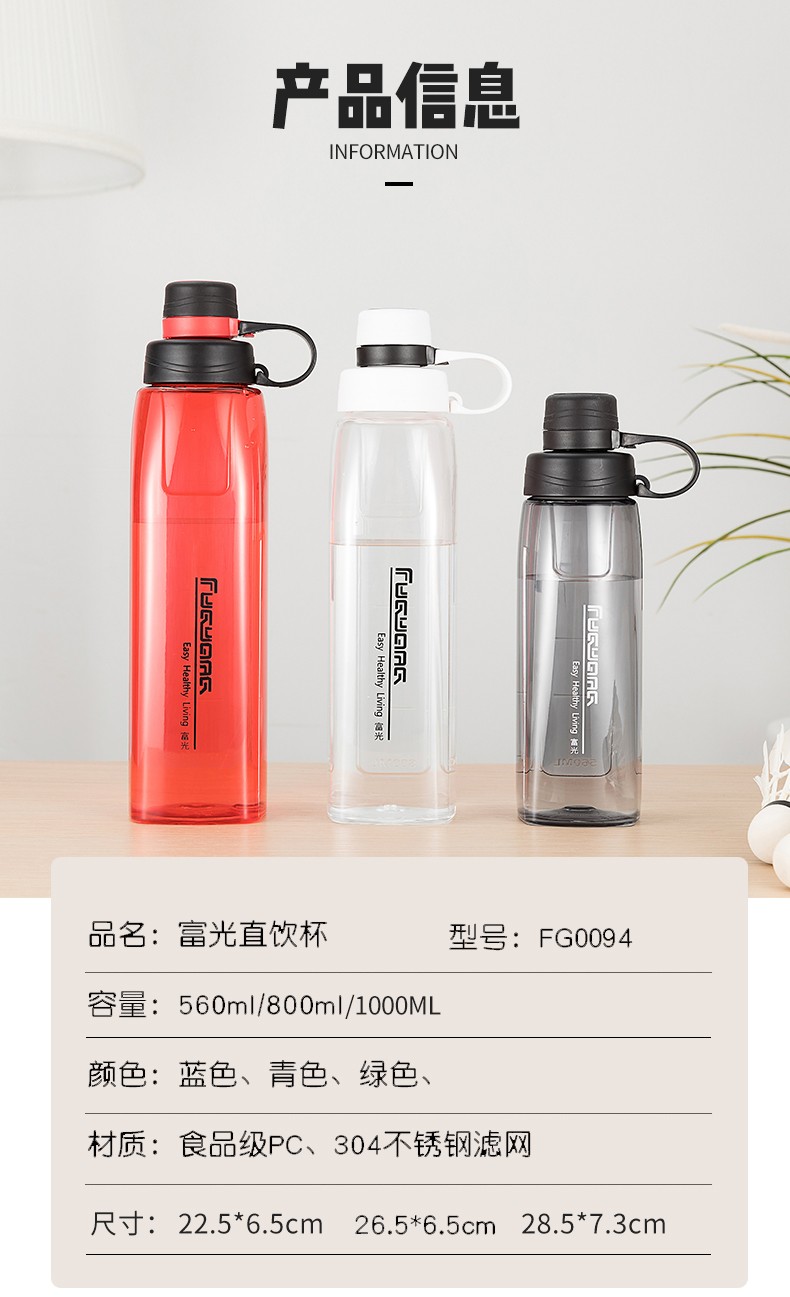 Fuguang portable sports water bottle large capacity explosion-proof space tea cup men's and women's fitness water cup student anti-fall water bottle 800ML black