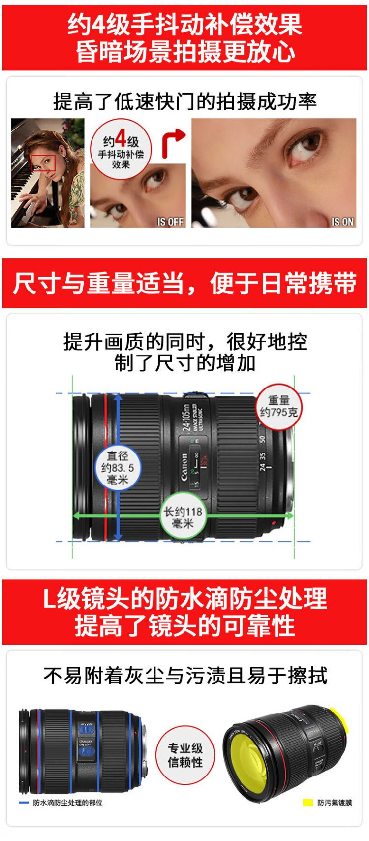 Canon EF 24-105 F4 IS II USM second-generation standard zoom lens, full-frame SLR lens disassembly, package 2, photography package, purchase package 2, upgrade to package 3 for free