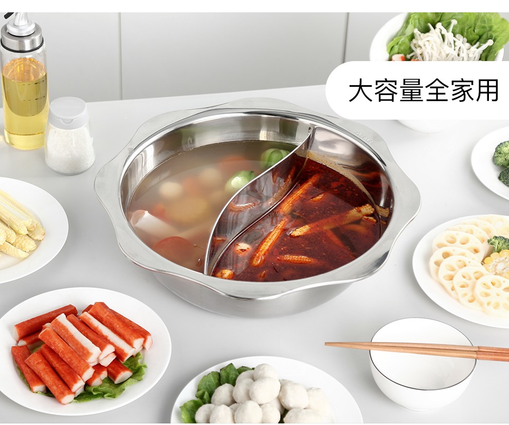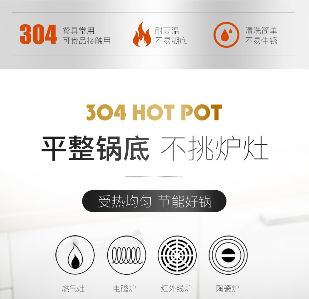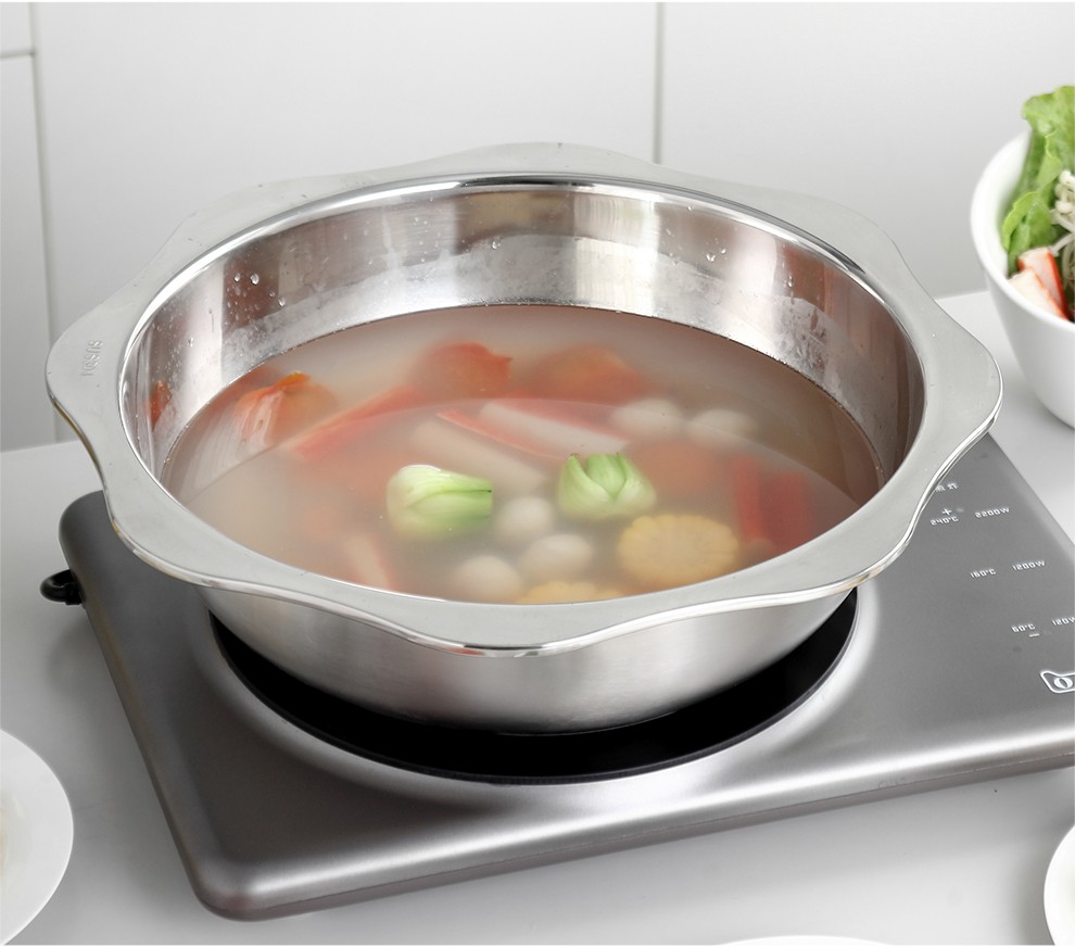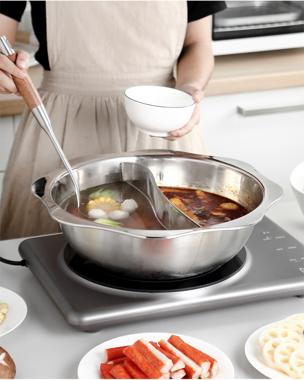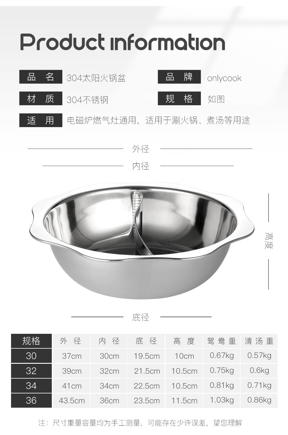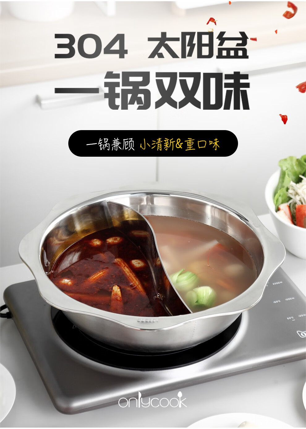Onlycook - Olla caliente de acero inoxidable 304 engrosada, cuenca para el sol, cuenca de pato mandarín, cuenca octogonal, olla de sopa transparente, cocina de inducción doméstica, olla caliente 34 cm 304 cuenca de sopa transparente no pato mandarín/individual 34 cm