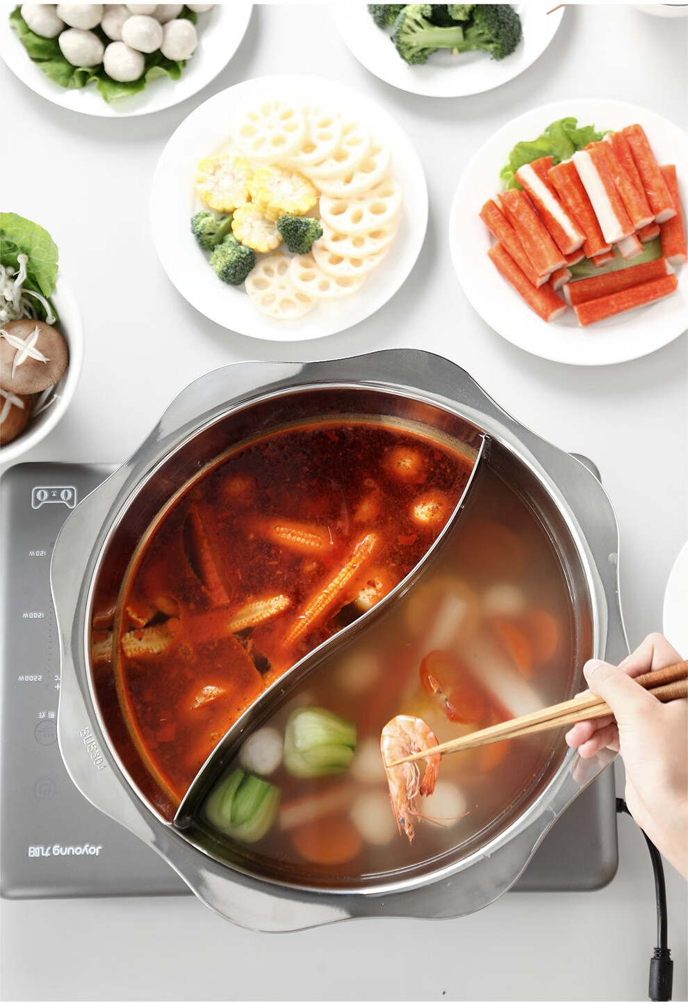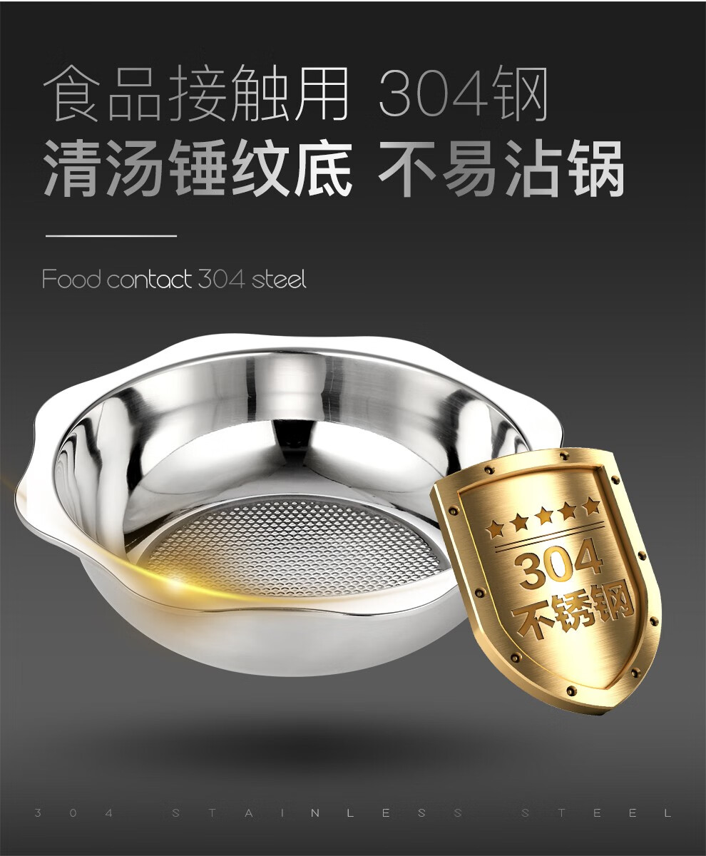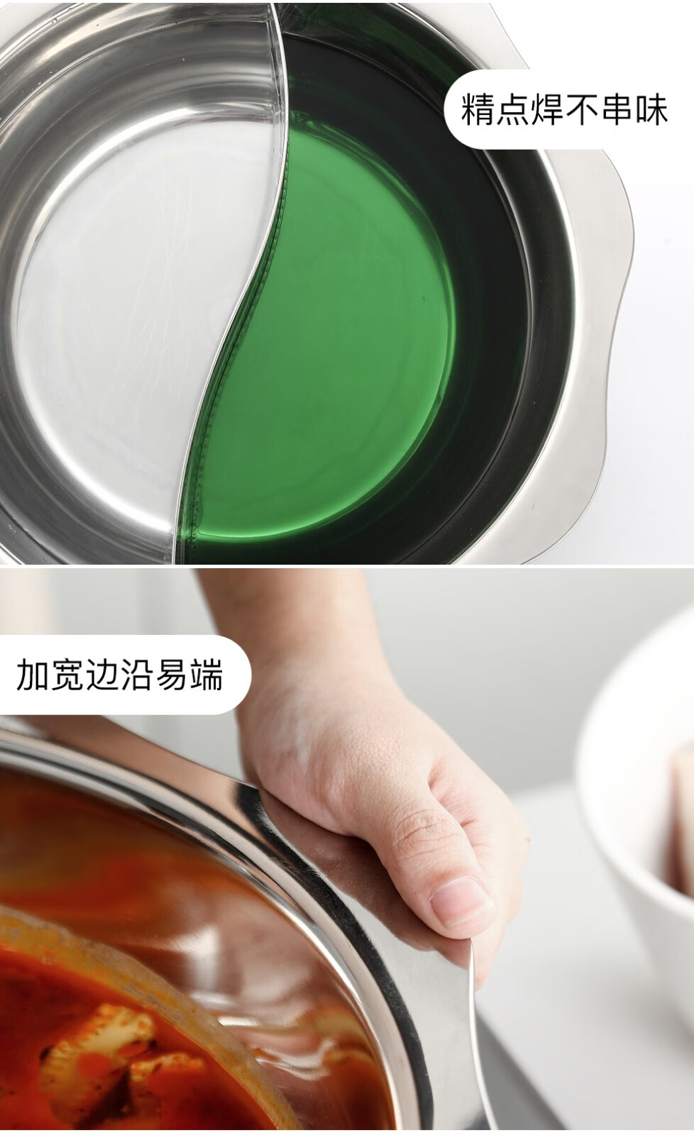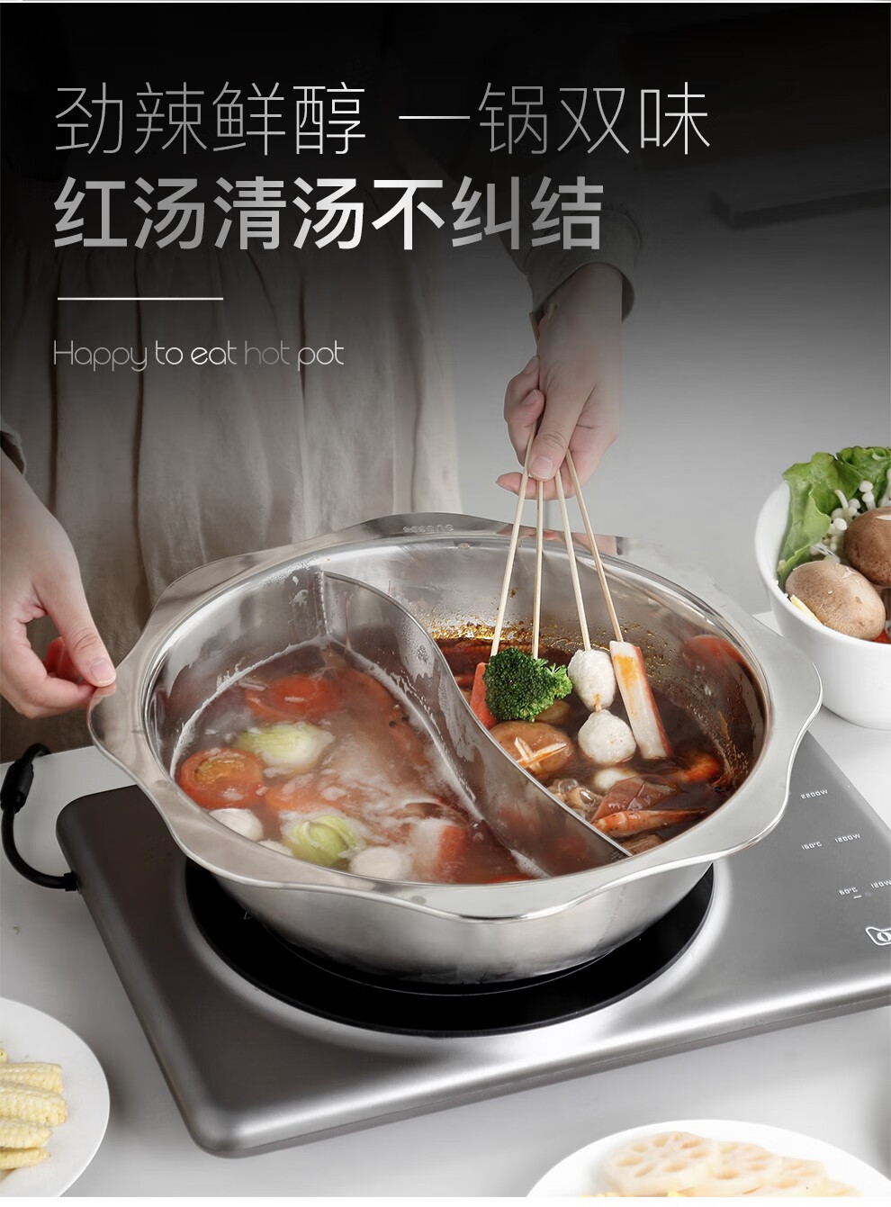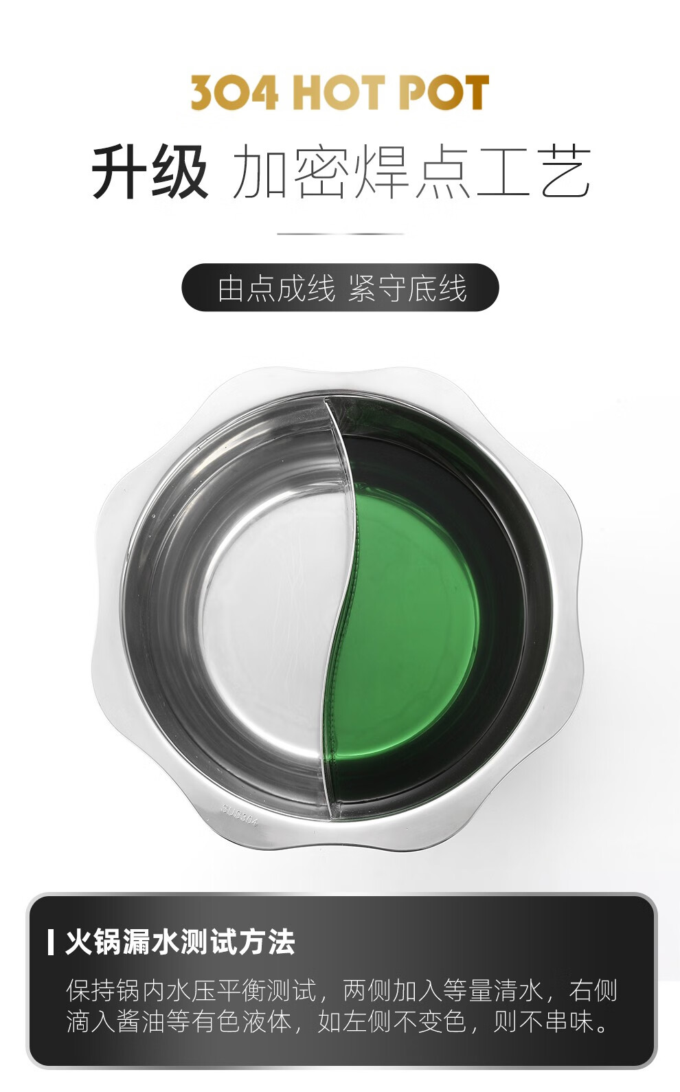 Onlycook - Olla caliente de acero inoxidable 304 engrosada, cuenca para el sol, cuenca de pato mandarín, cuenca octogonal, olla de sopa transparente, cocina de inducción doméstica, olla caliente 34 cm 304 cuenca de sopa transparente no pato mandarín/individual 34 cm