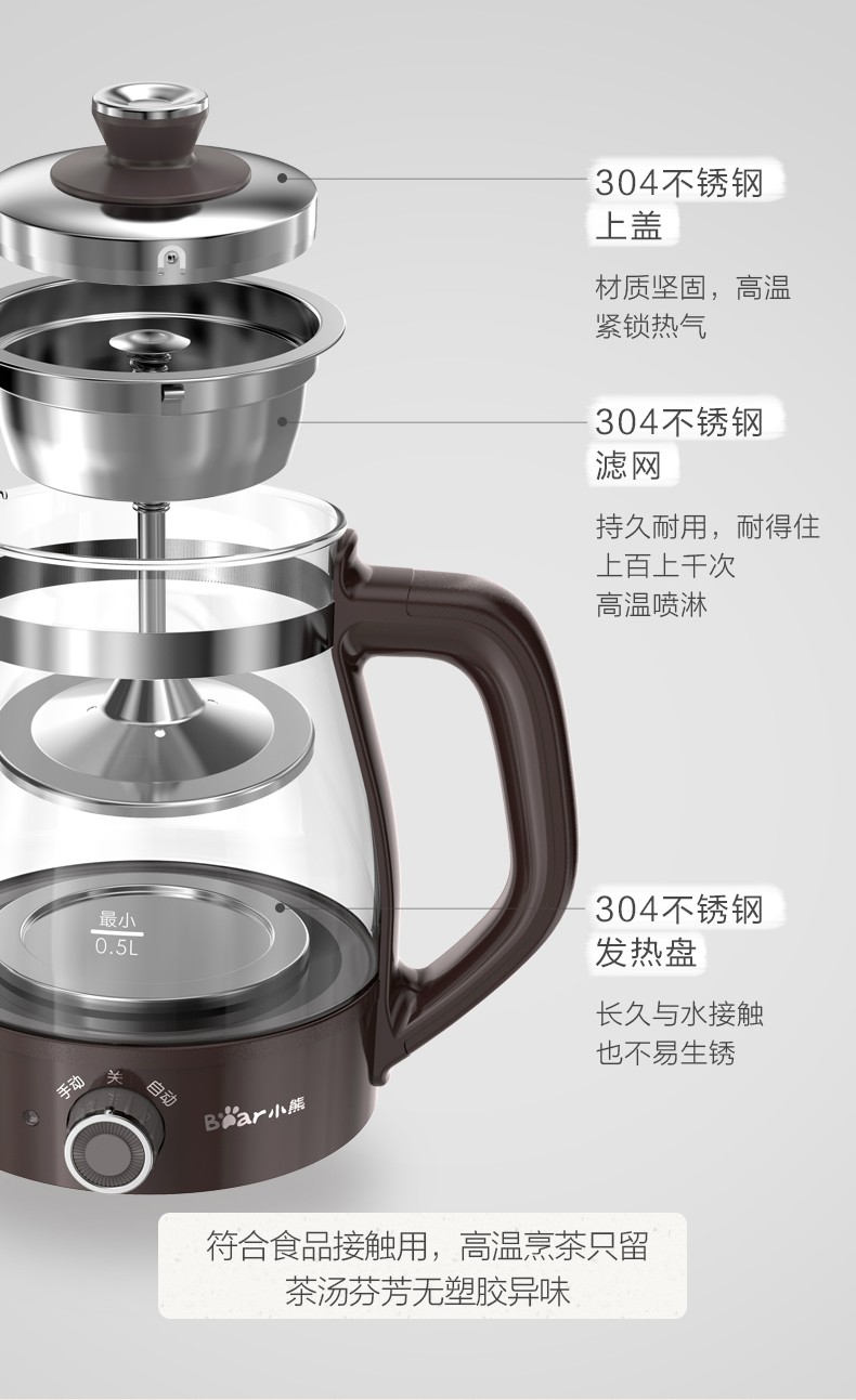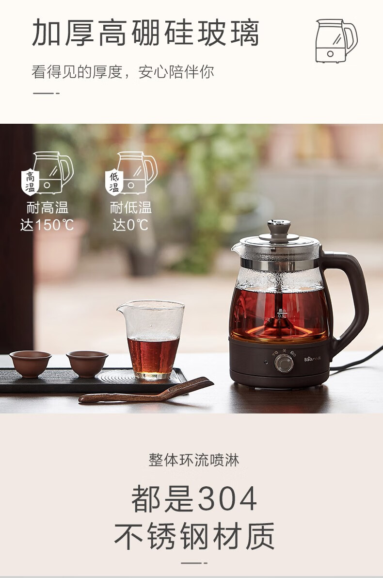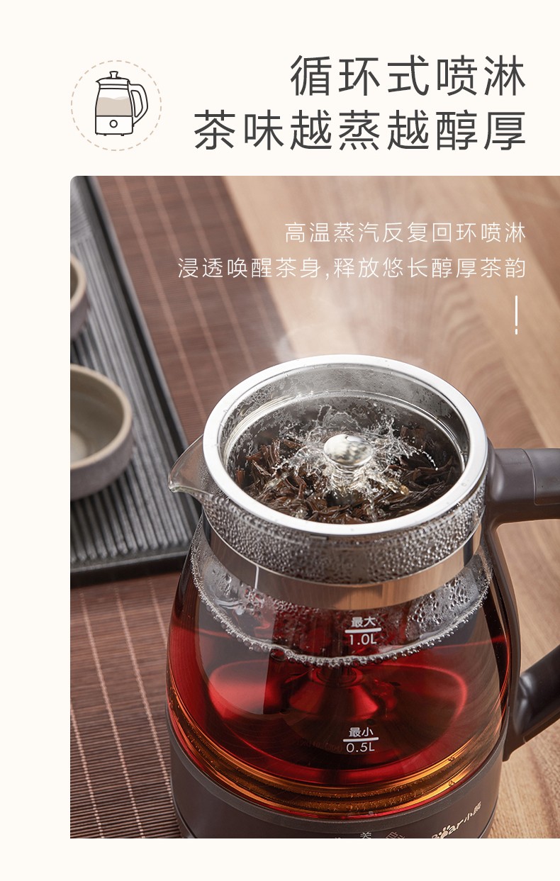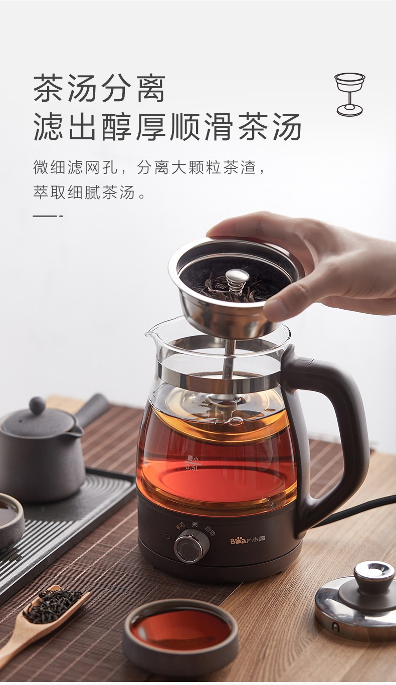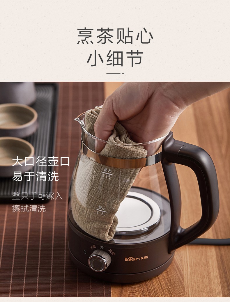 Bear Tea Maker Health Kettle Steam Spray Glass Thickened Black Tea Maker Tea Kettle Small Mini Office Tea Steamer Fully Automatic Tea Stove Electric Kettle ZCQ-A10X1 Basic Edition 1L
