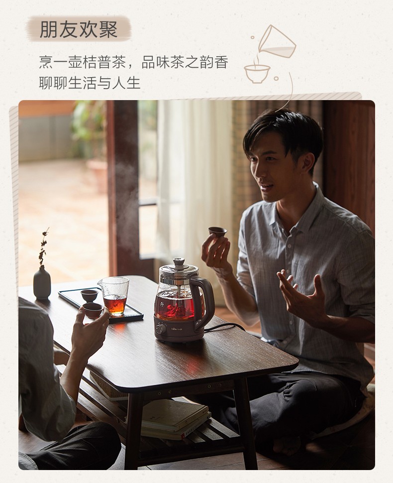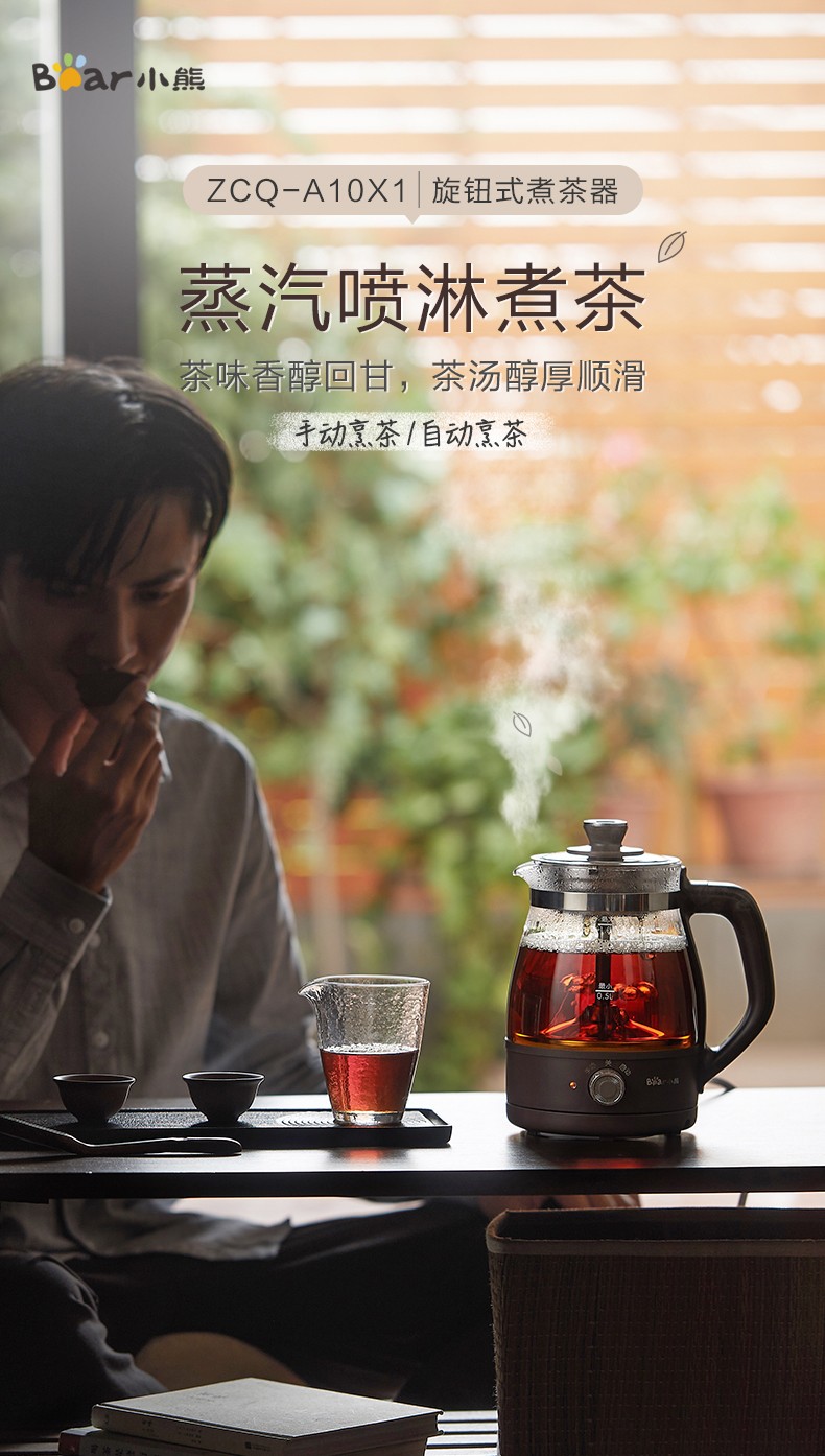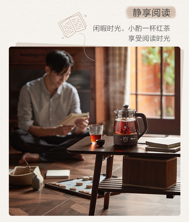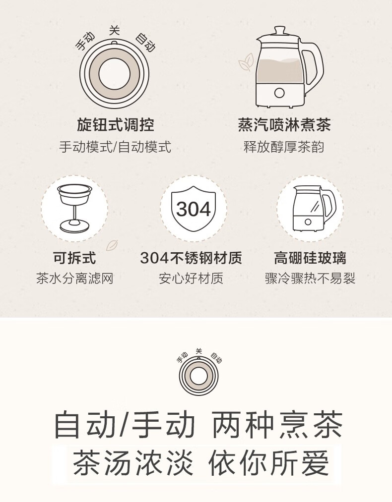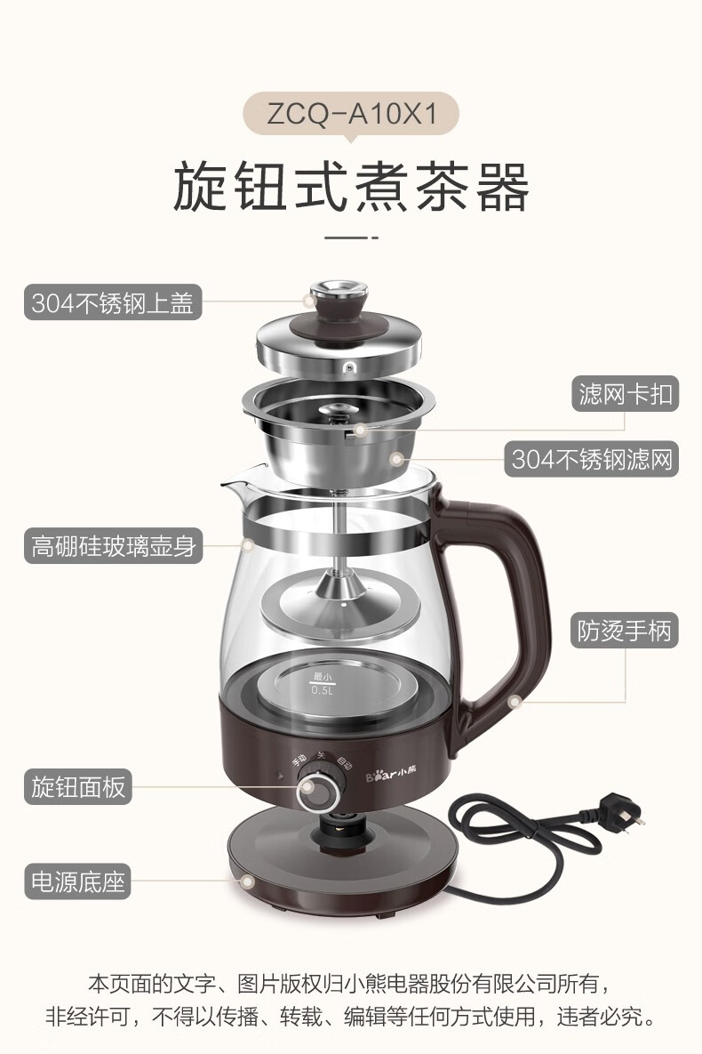 Bear Tea Maker Health Kettle Steam Spray Glass Thickened Black Tea Maker Tea Kettle Small Mini Office Tea Steamer Fully Automatic Tea Stove Electric Kettle ZCQ-A10X1 Basic Edition 1L