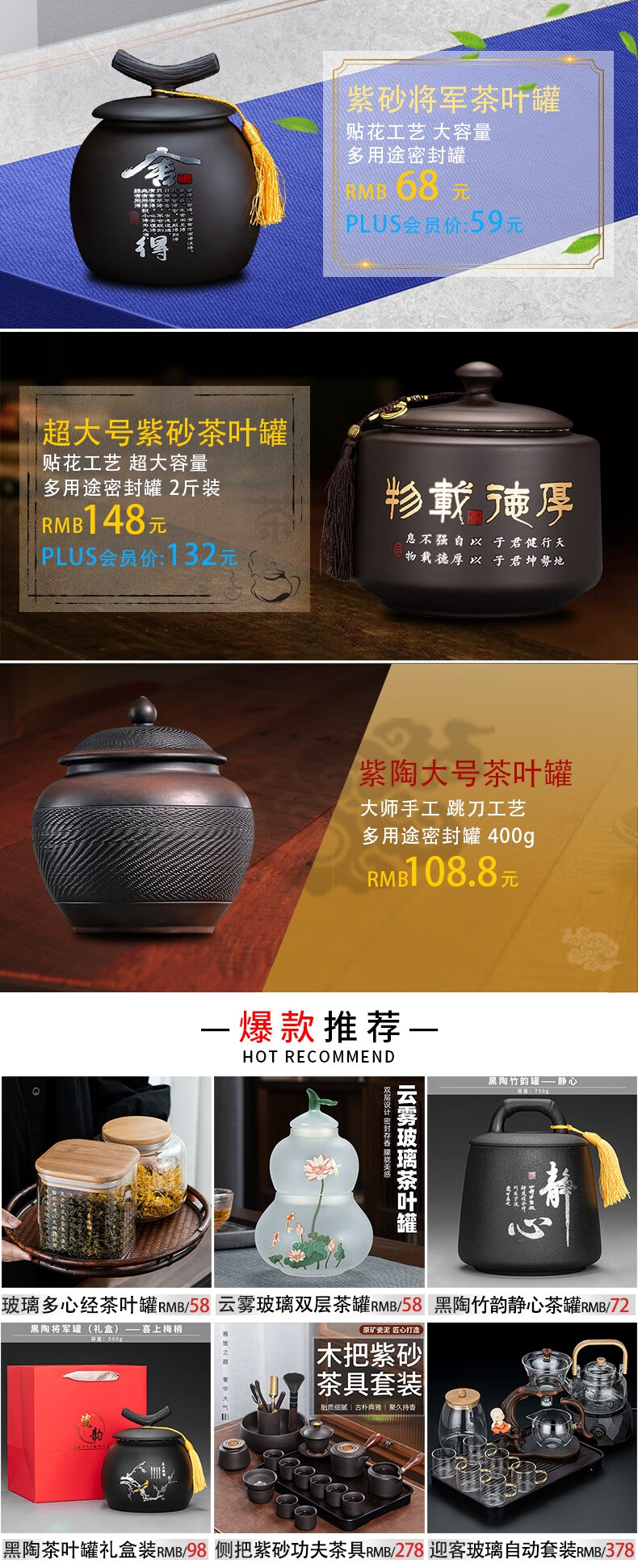 Zhengyang purple clay tea jar Pu'er tea storage jar wake-up tea jar sealed jar storage jar tea cylinder ceramic large size 500g purple clay large size (general jar) - Shede