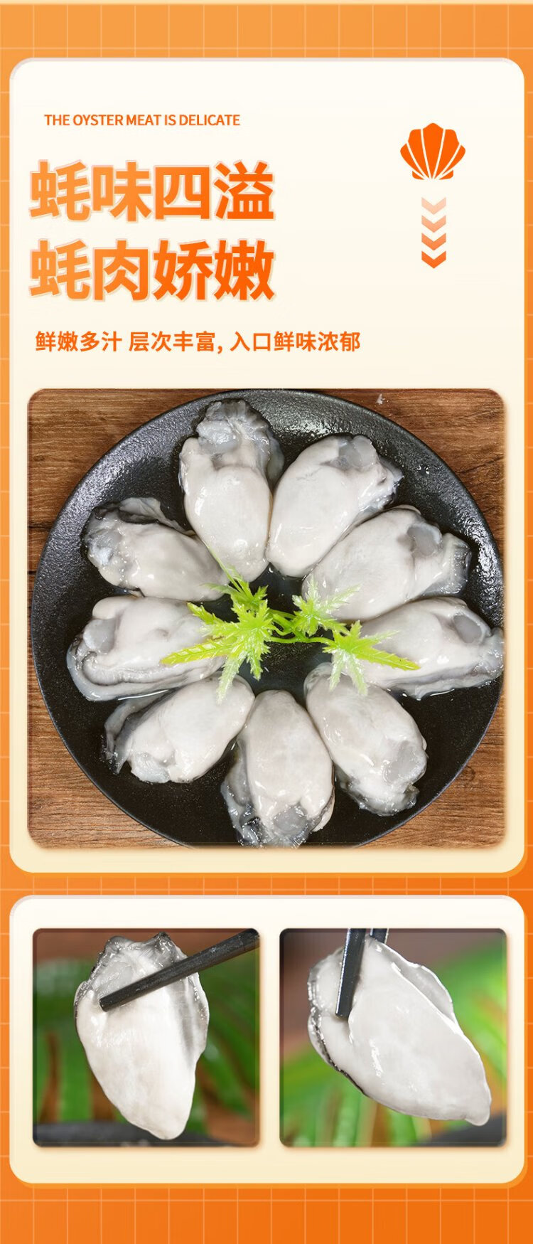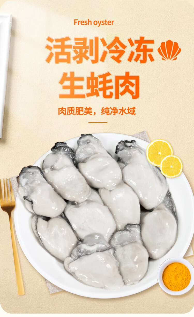 Zibaishang frozen oyster meat, fresh hand-peeled oyster meat, sea oysters, hot pot ingredients, fresh seafood, no processing, large quick-frozen oyster meat, net weight 2Jin Jin is equal to 0.5 kg