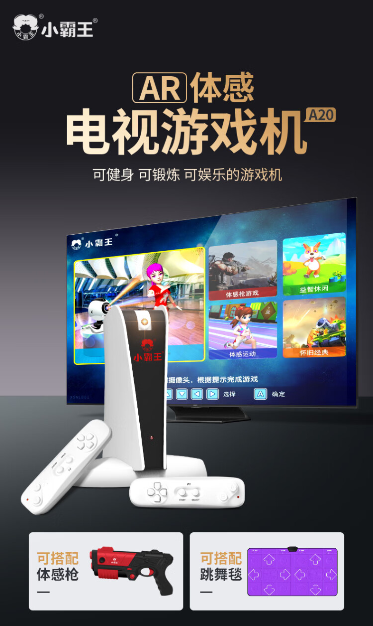 Xiaobawang dance mat home somatosensory game console connected to TV children's gift AR image induction somatosensory double yoga wireless handle HD sports shooting double game console AR camera host + double handle + somatosensory gun + PU purple dance mat