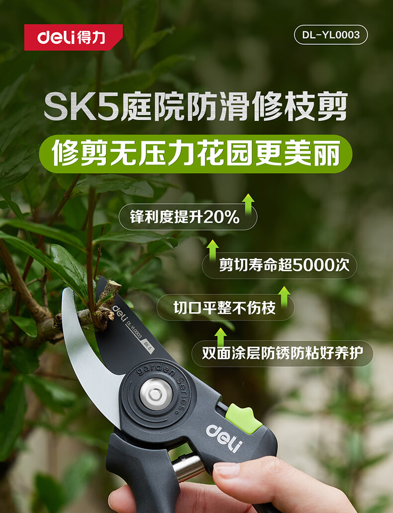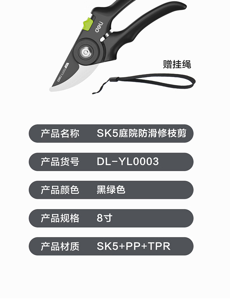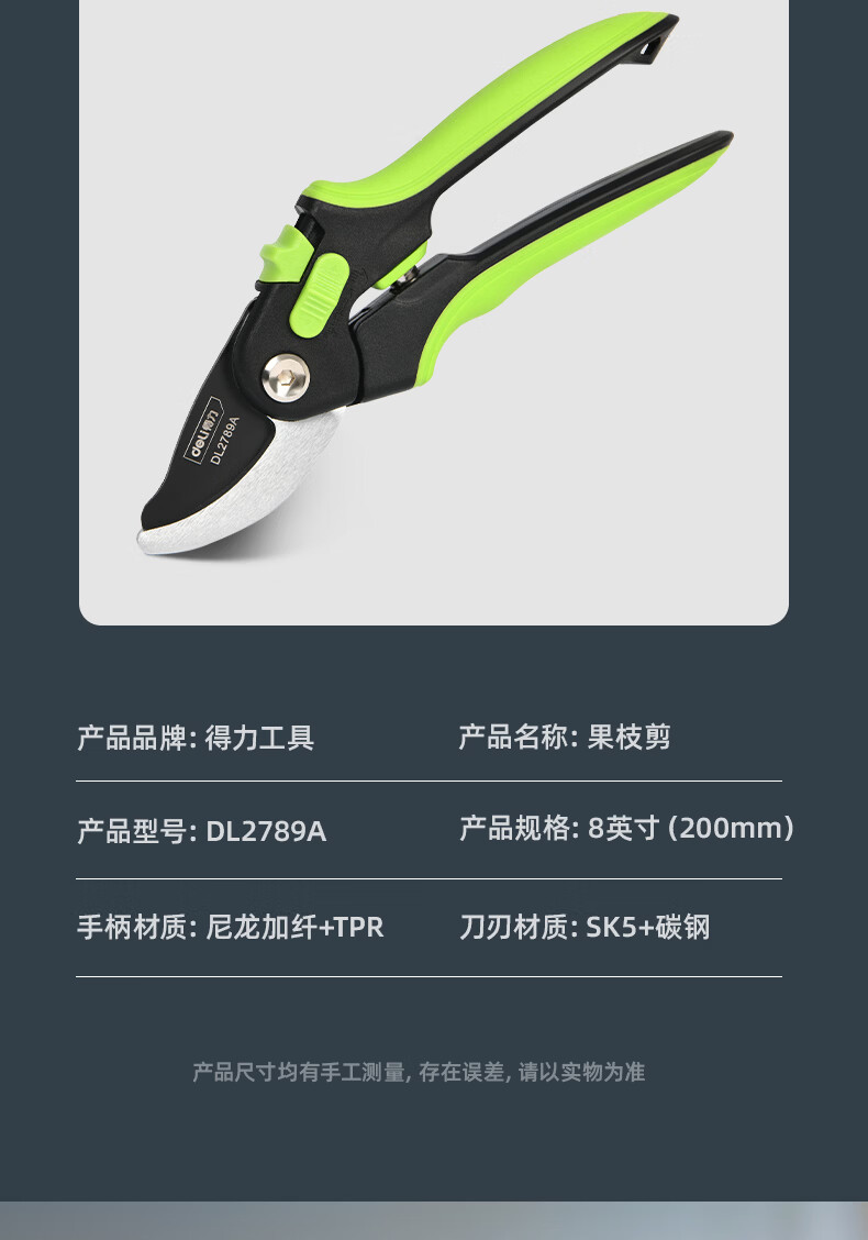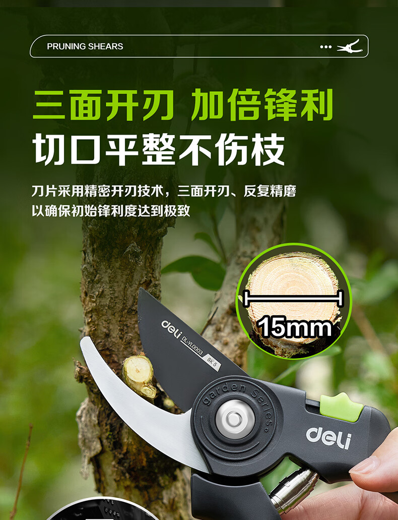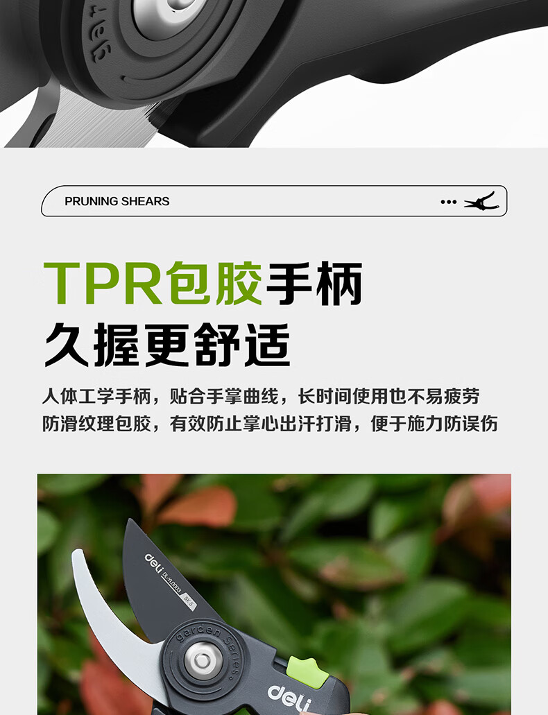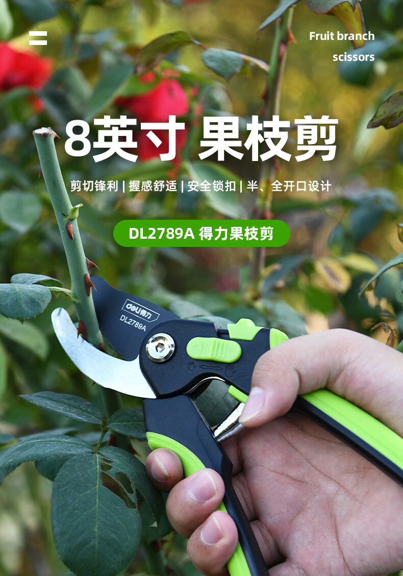 Deli fruit tree scissors, pruning scissors, garden flower scissors, gardening flowers and trees, branch pruning, thick branch pruning shears, labor-saving scissors, 8-inch stainless steel blade, can cut 15mm wet branches, pruning shears