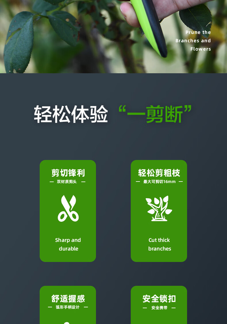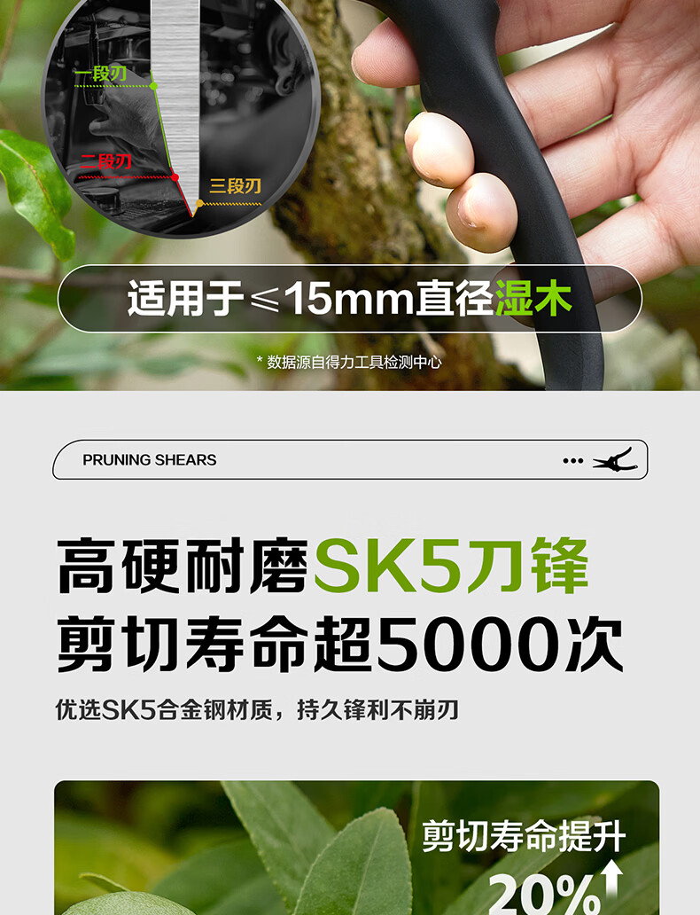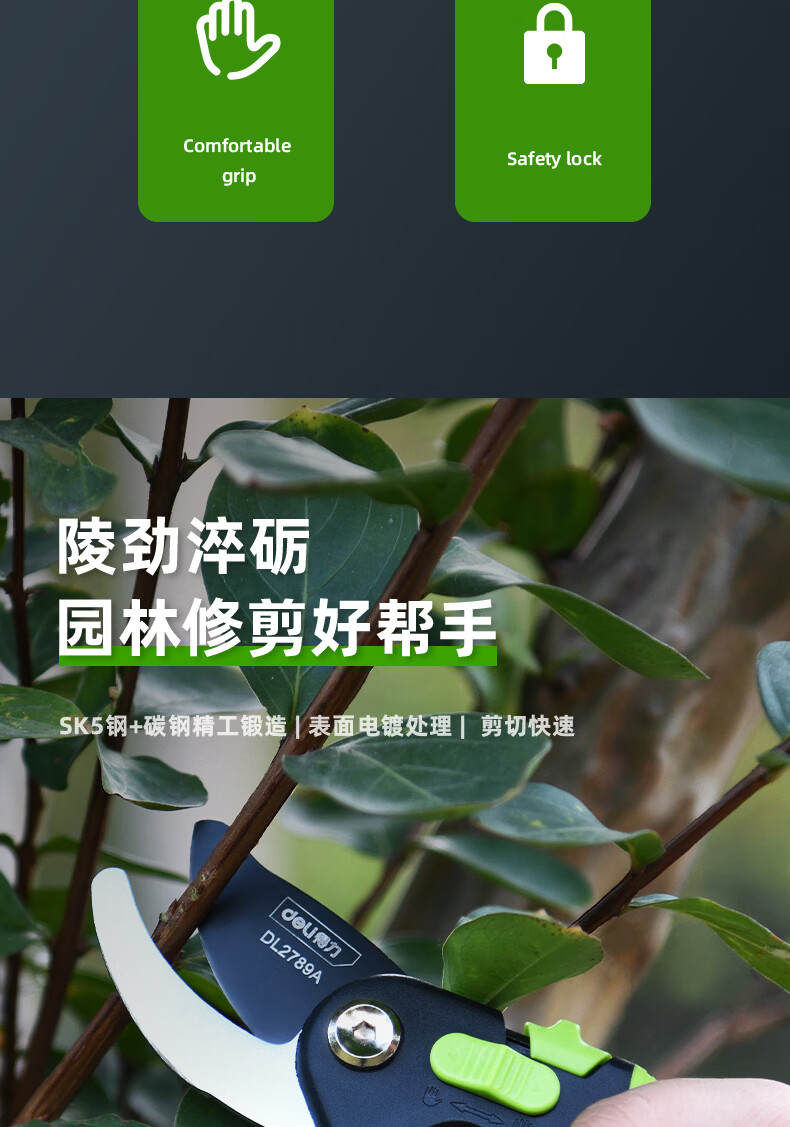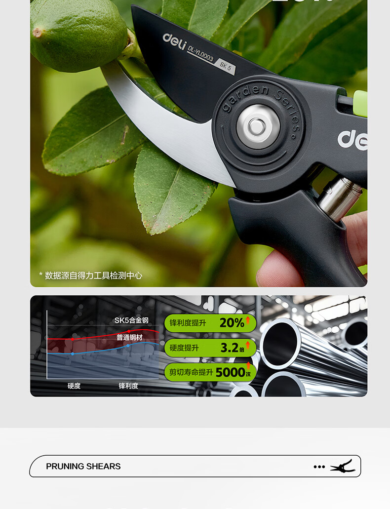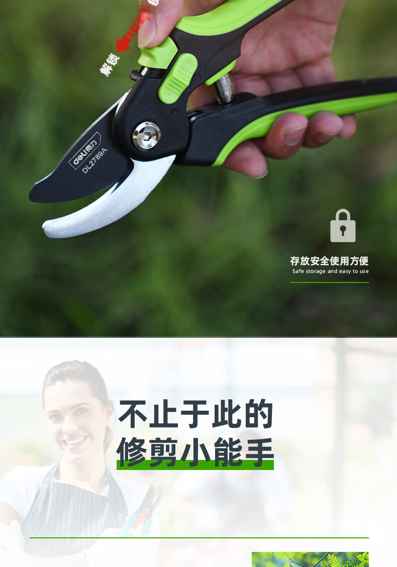 Deli fruit tree scissors, pruning scissors, garden flower scissors, gardening flowers and trees, branch pruning, thick branch pruning shears, labor-saving scissors, 8-inch stainless steel blade, can cut 15mm wet branches, pruning shears