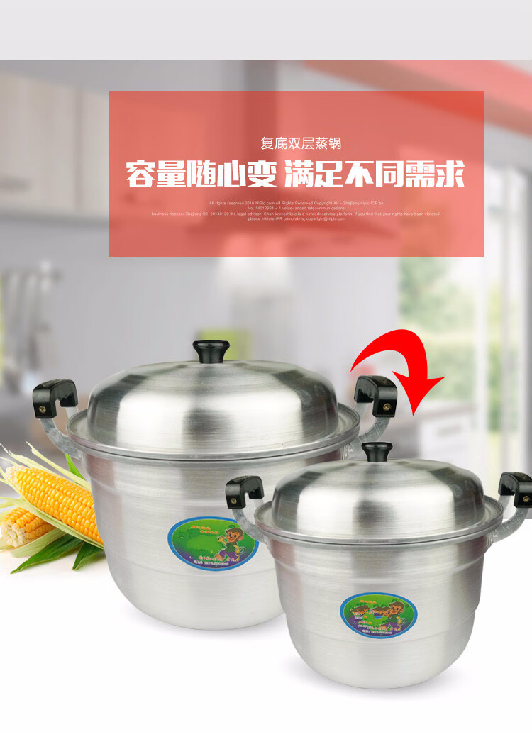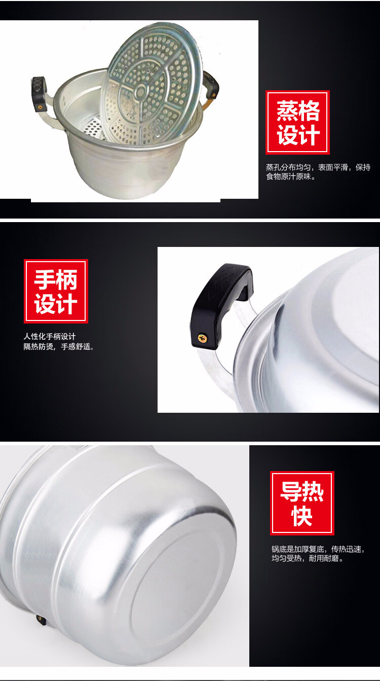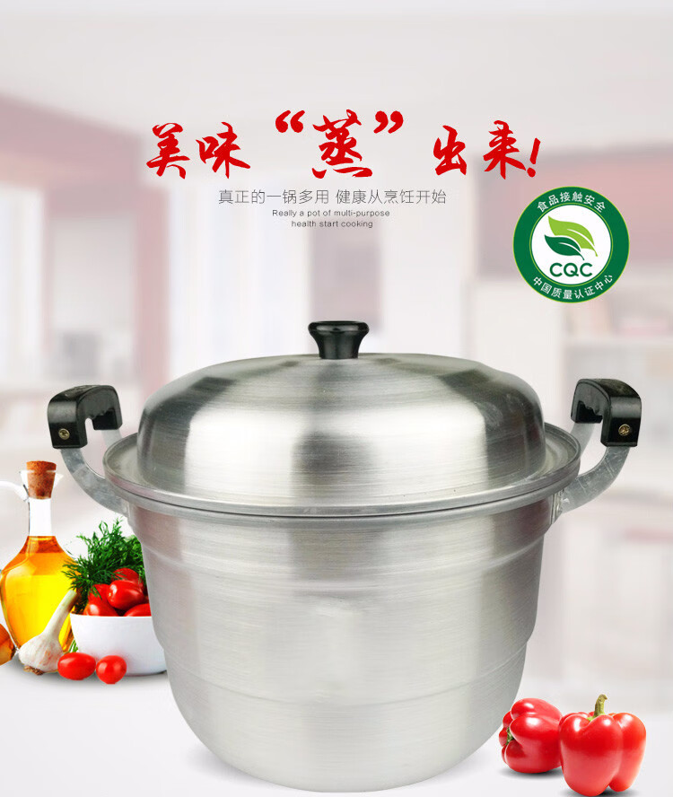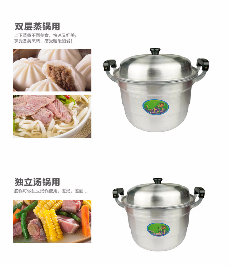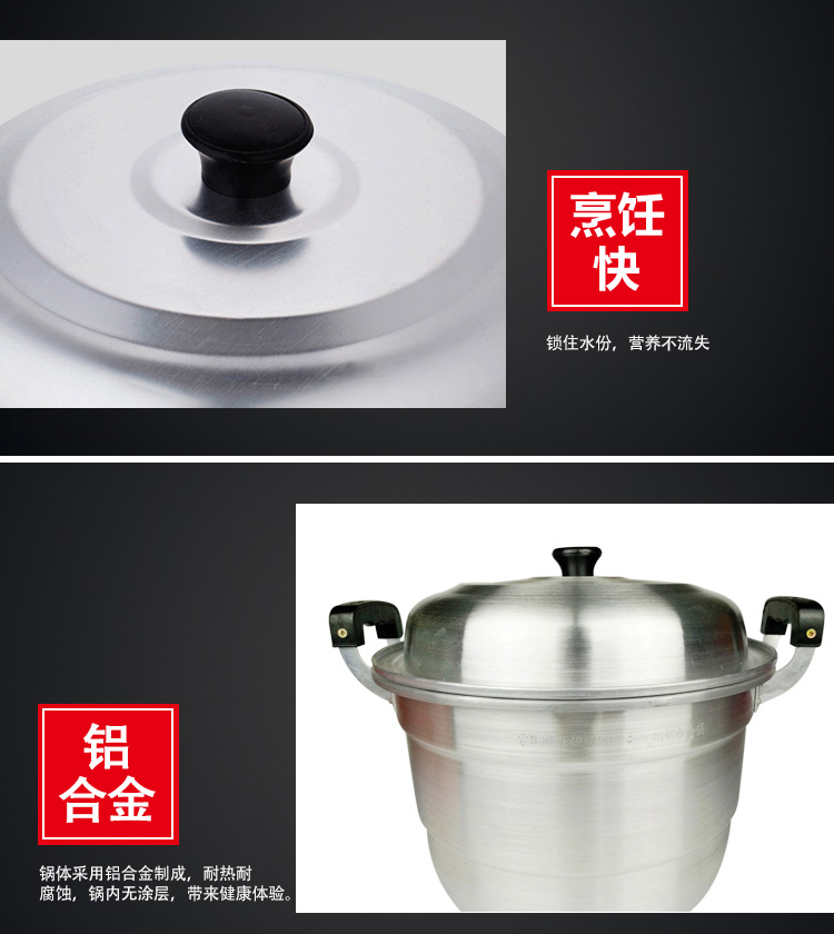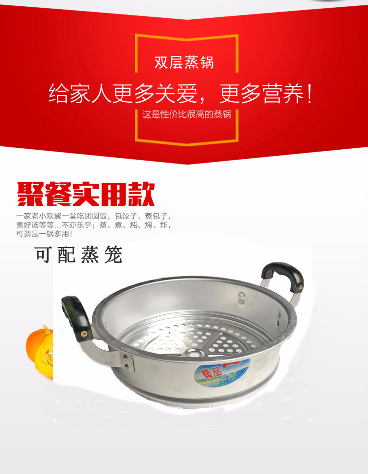 Oiyou aluminum pot traditional double-layer aluminum pot old-fashioned household thickened large aluminum steamer commercial bun steamer reinforced pot (10-15 people) extra thick 38cm + 2 steaming grates (2 layers