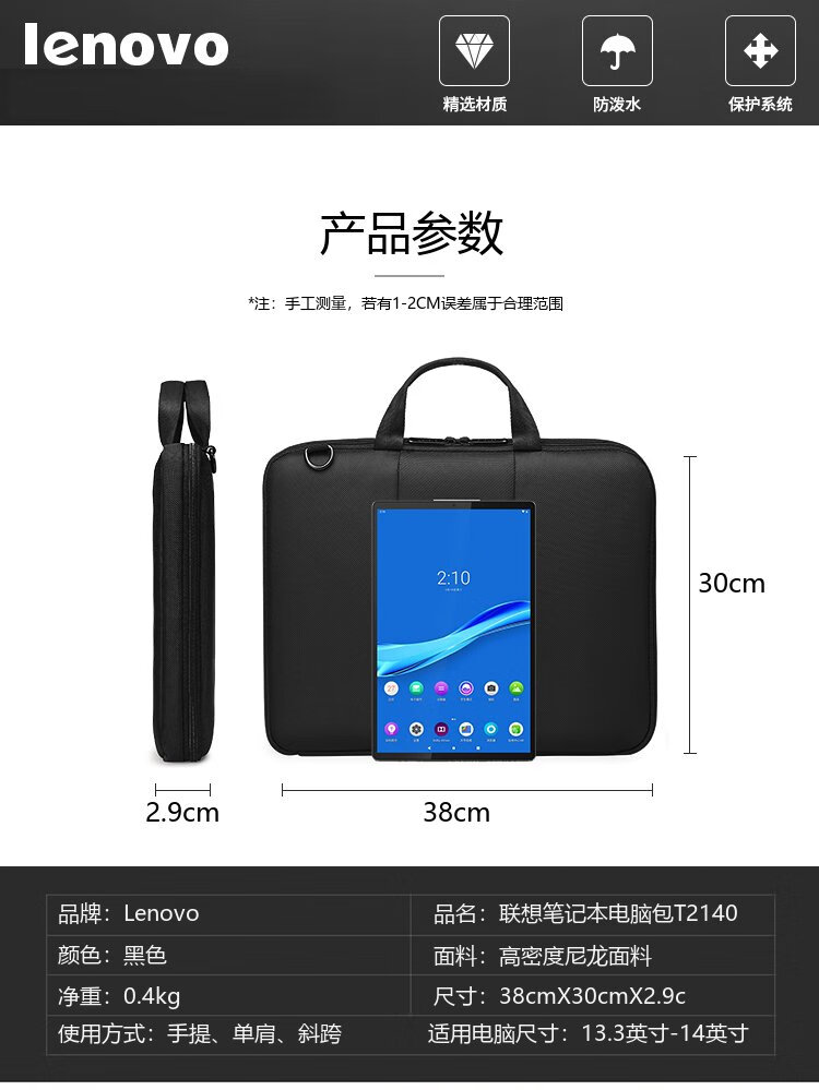 Lenovo computer bag 14-inch portable briefcase business ultra-thin 13.3-inch laptop bag black