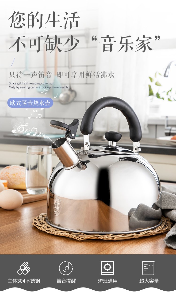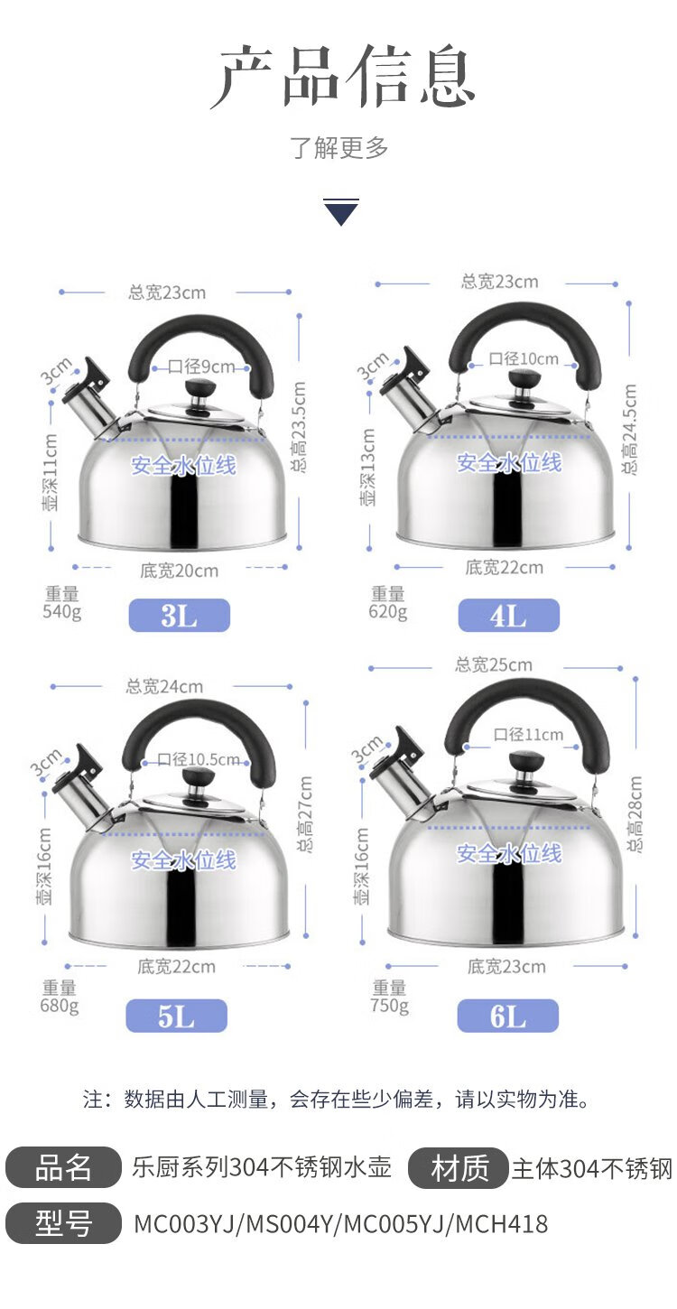 Maxcook kettle 304 stainless steel kettle 4L thickened sound universal gas induction cooker MS004Y