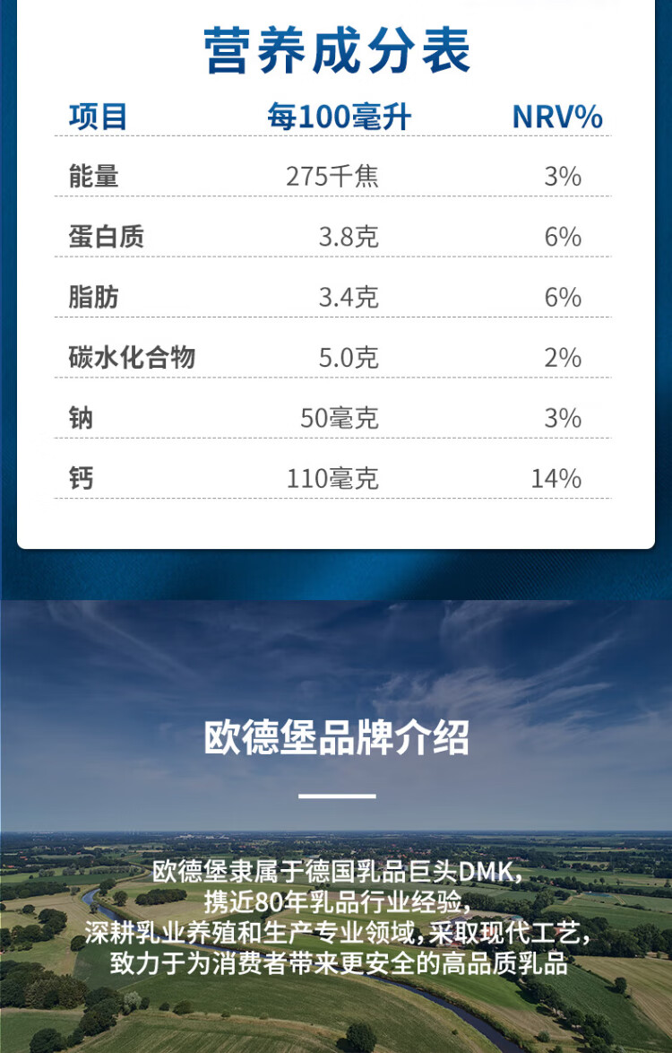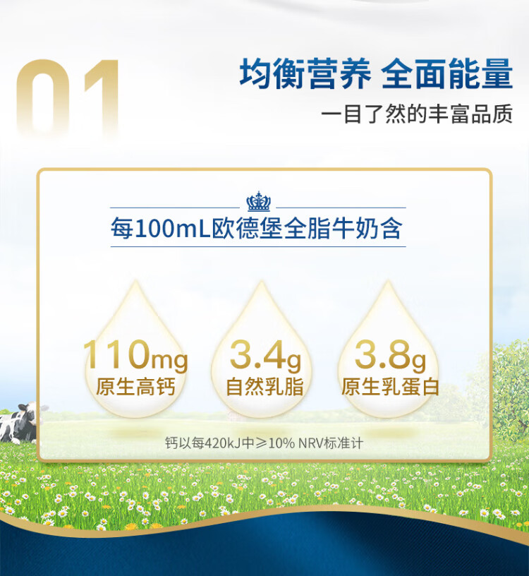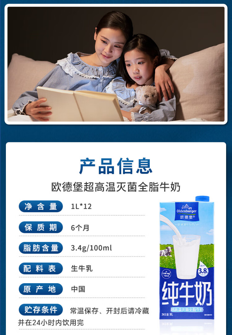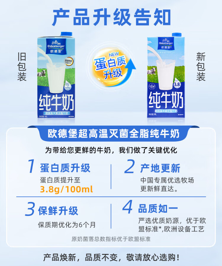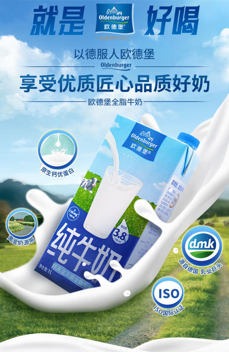 Oldenburger 3.8g protein high calcium whole milk 1L*12 box family/student/elderly milk breakfast milk