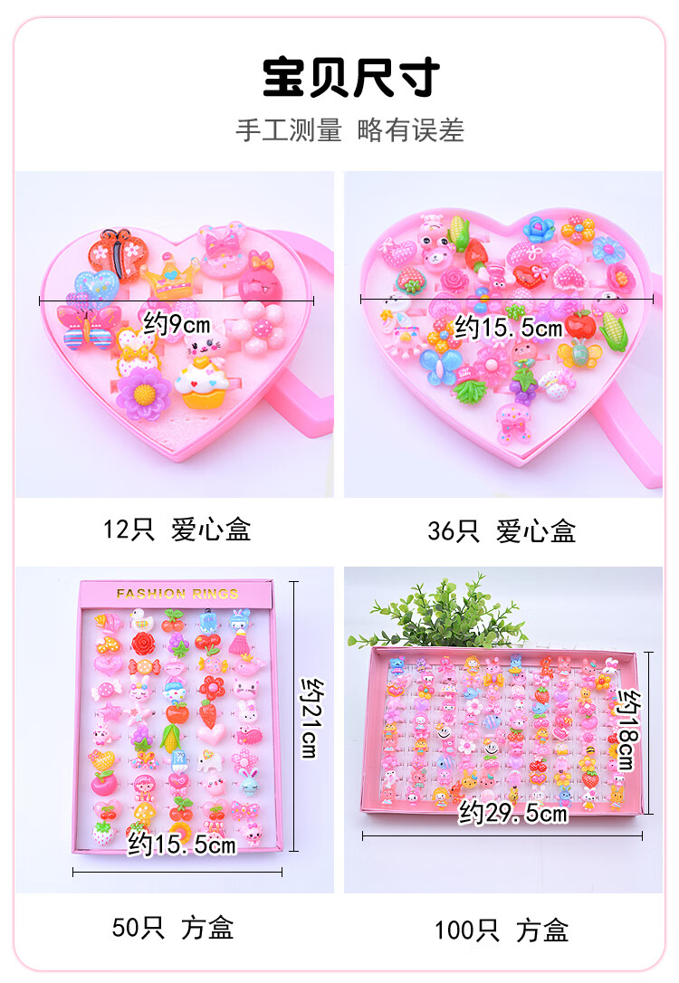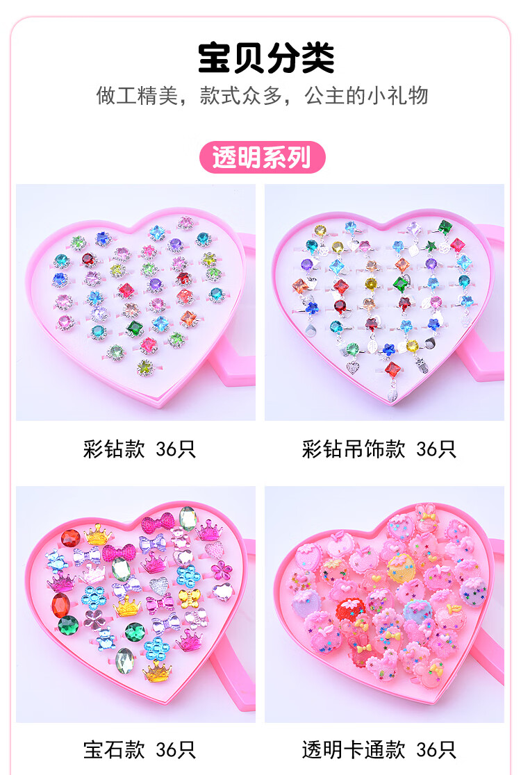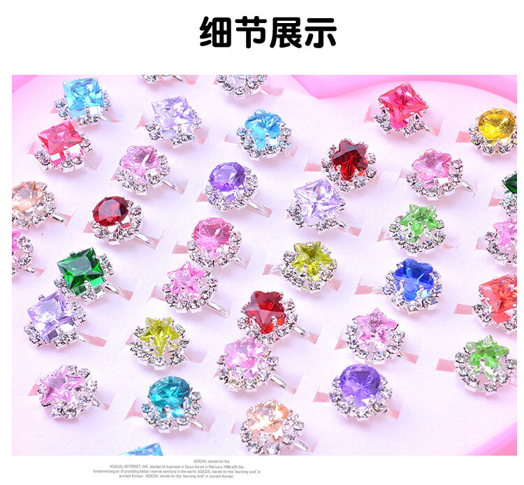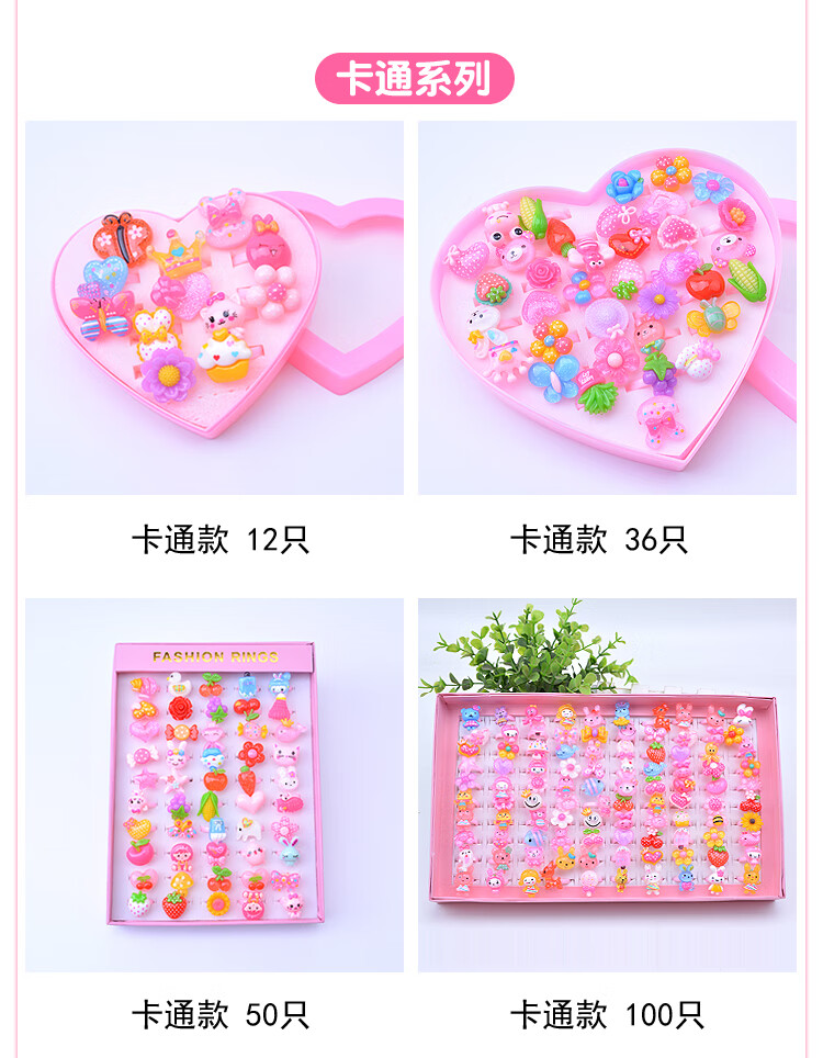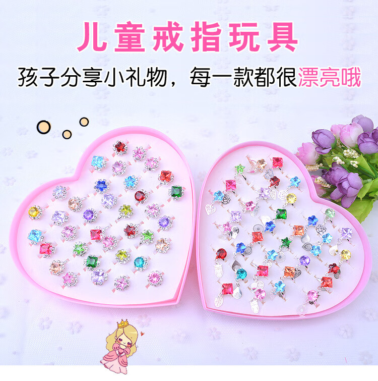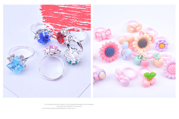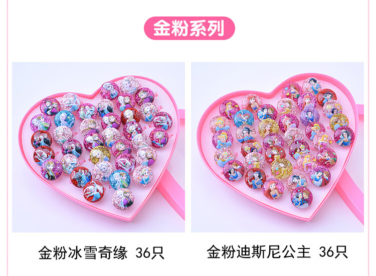 Meng Junchen Children's Cartoon Ring Set Female Princess Cute Baby Toy Plastic Small Ring Children's Jewelry Girls Diamond Sparkling Style 36 Pack