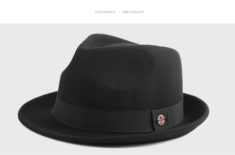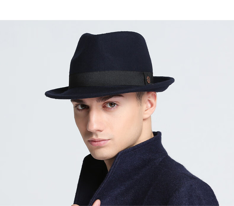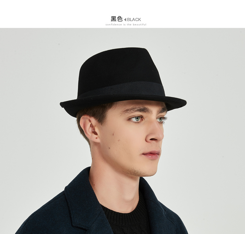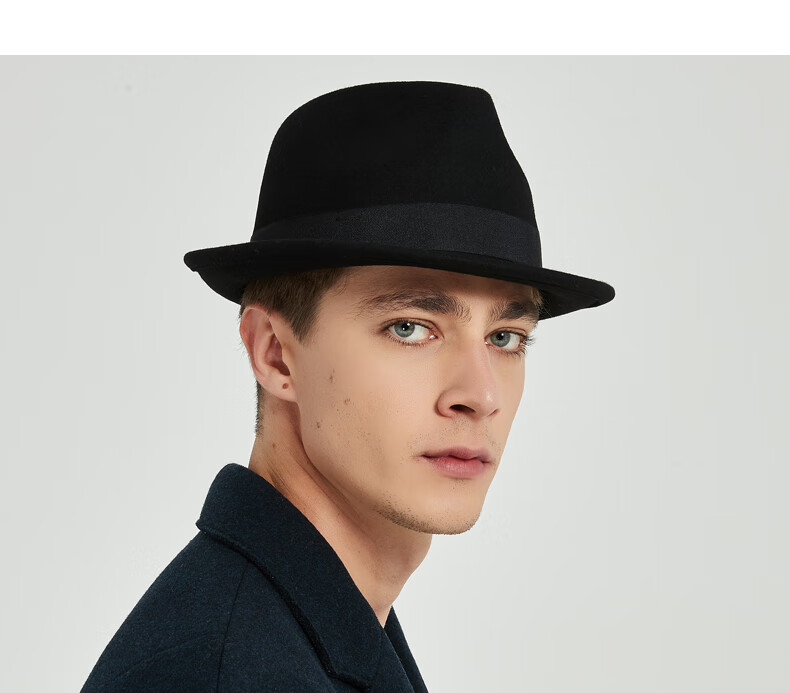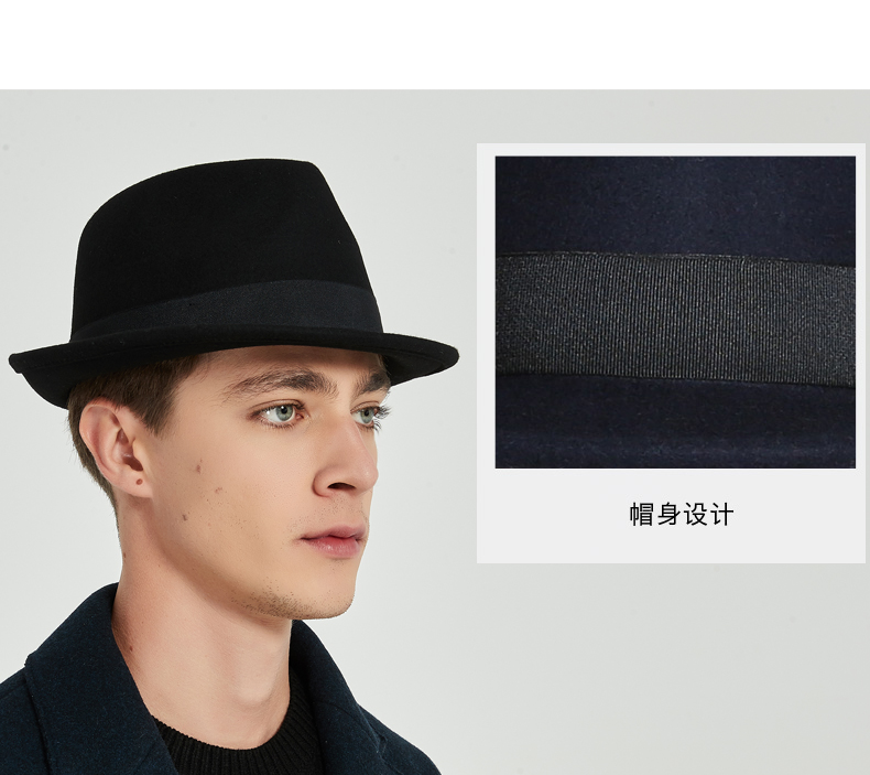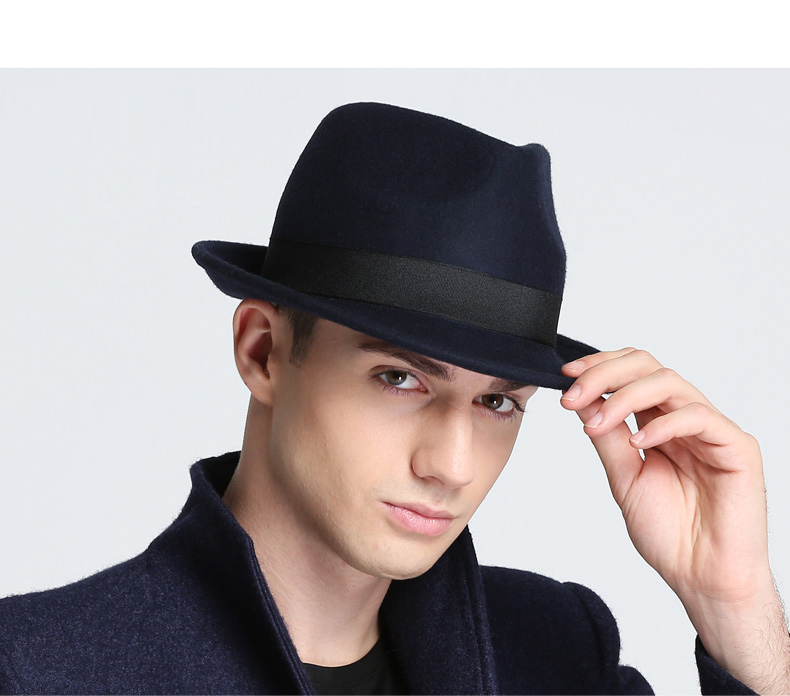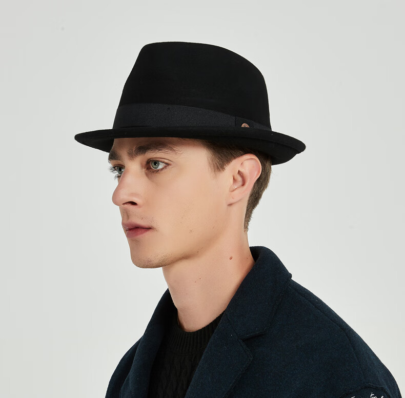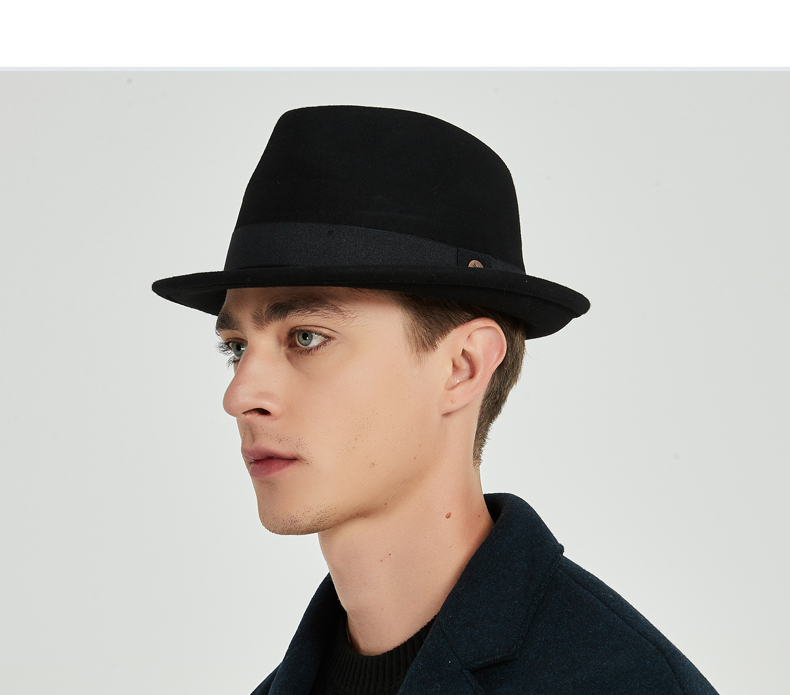 7PM Top Hat Men's British Jazz Hat Woolen Gentleman Hat Winter Thickened Men's Top Hat Middle-aged and Old Dad Hat Black One Size (56-58cm) Adjustable