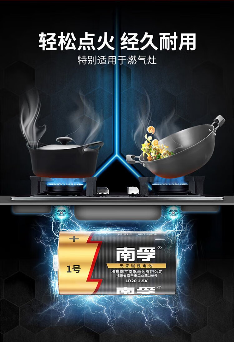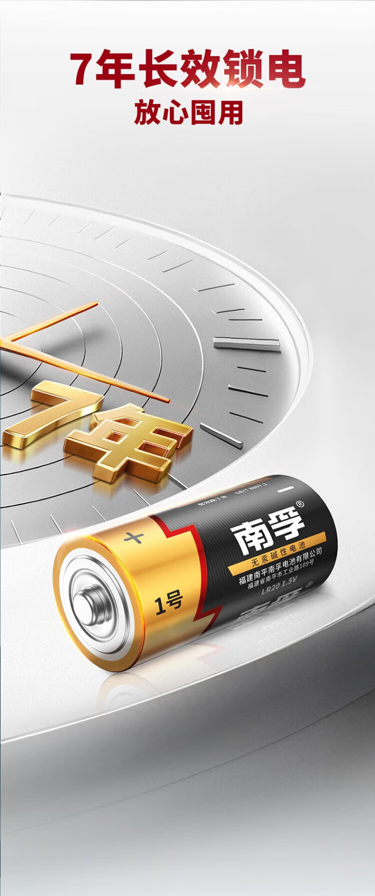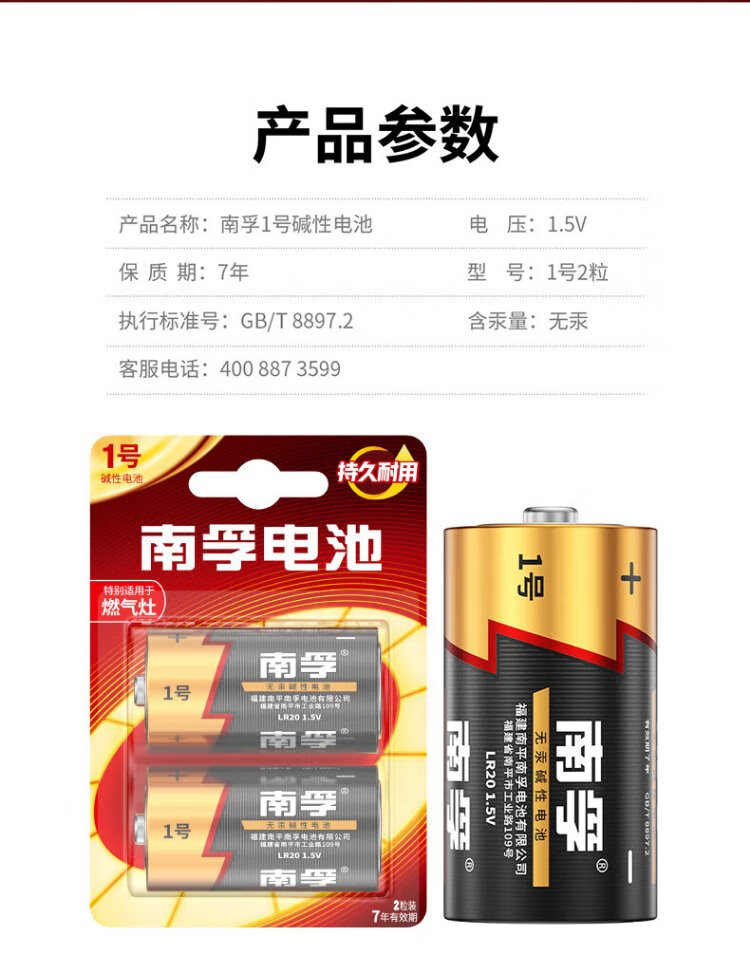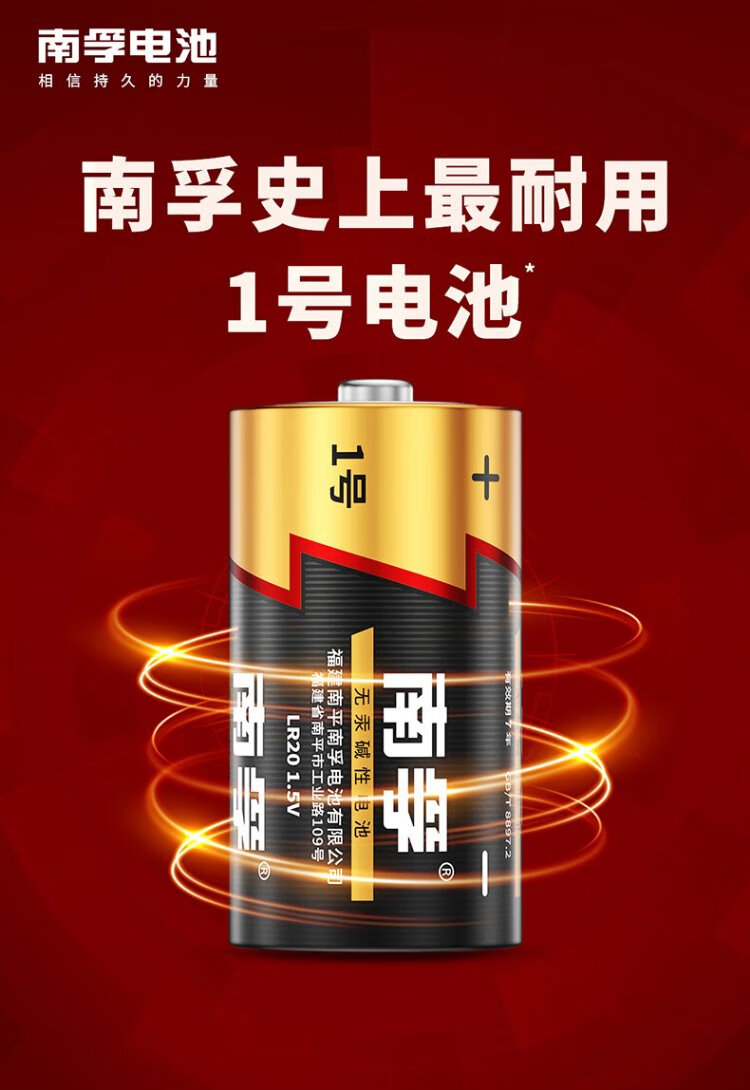 Nanfu No. 1 alkaline battery 2 pieces large battery suitable for water heater/gas stove/flashlight/electronic keyboard/wall clock, etc. LR20-2B