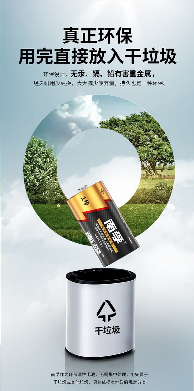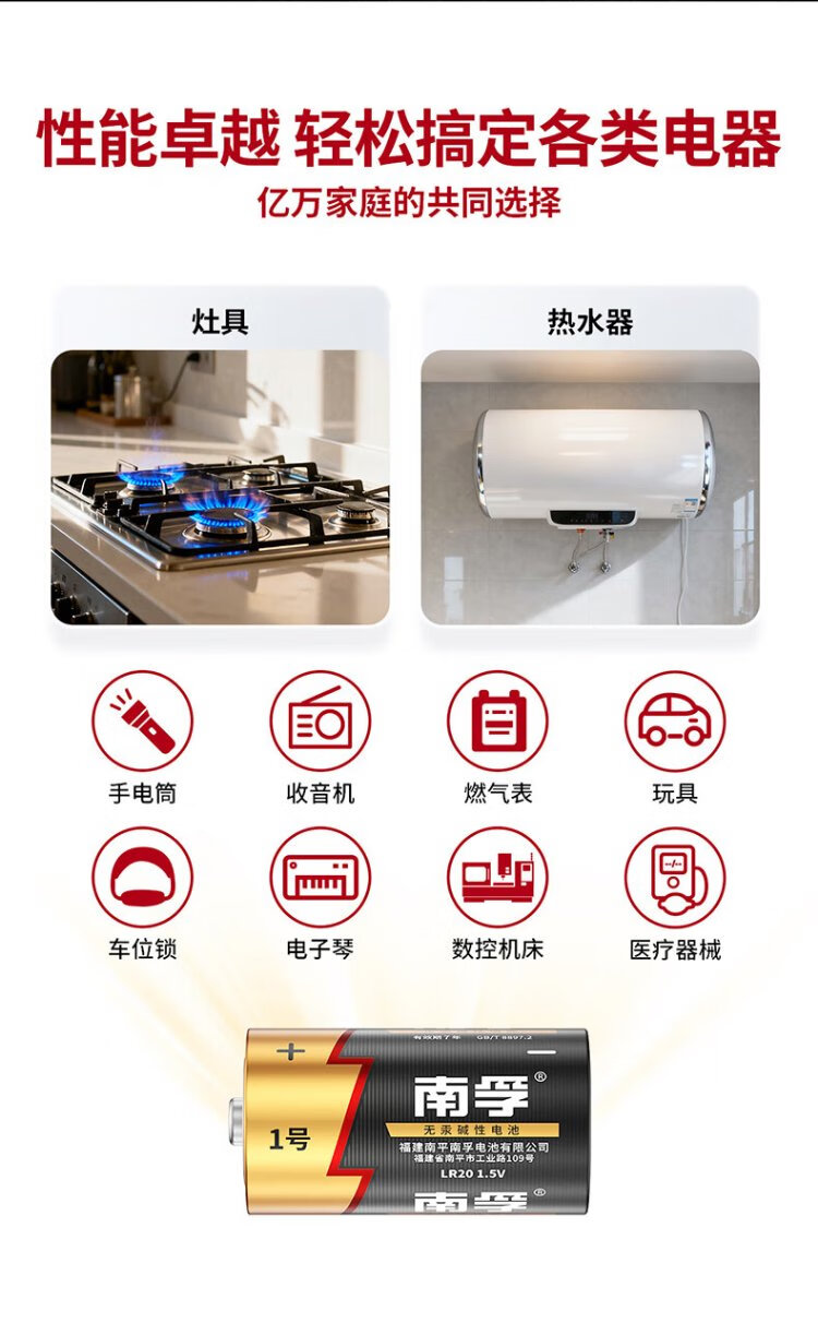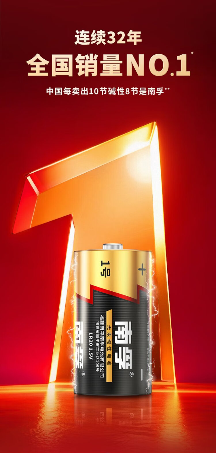 Nanfu No. 1 alkaline battery 2 pieces large battery suitable for water heater/gas stove/flashlight/electronic keyboard/wall clock, etc. LR20-2B