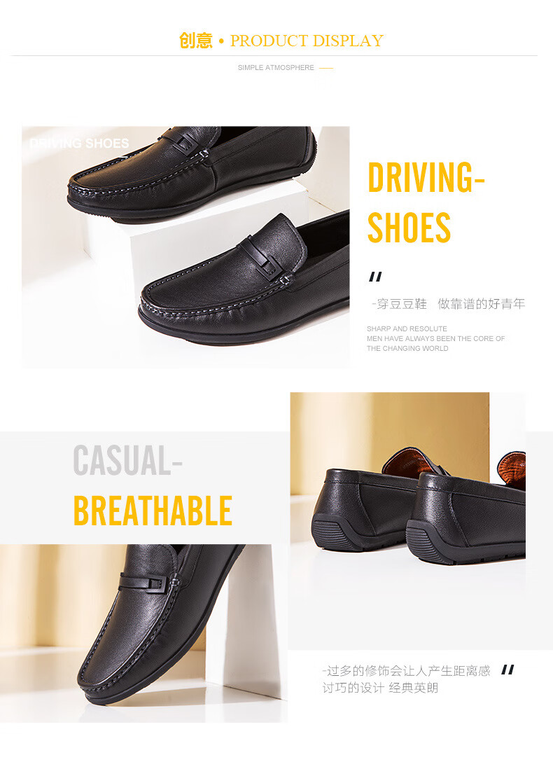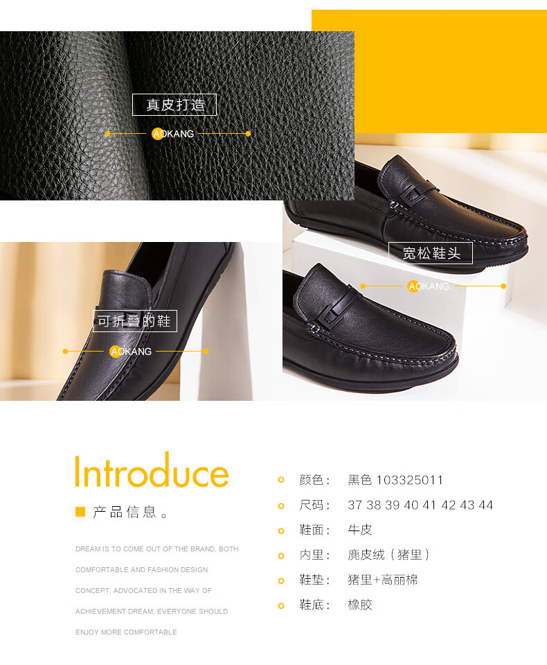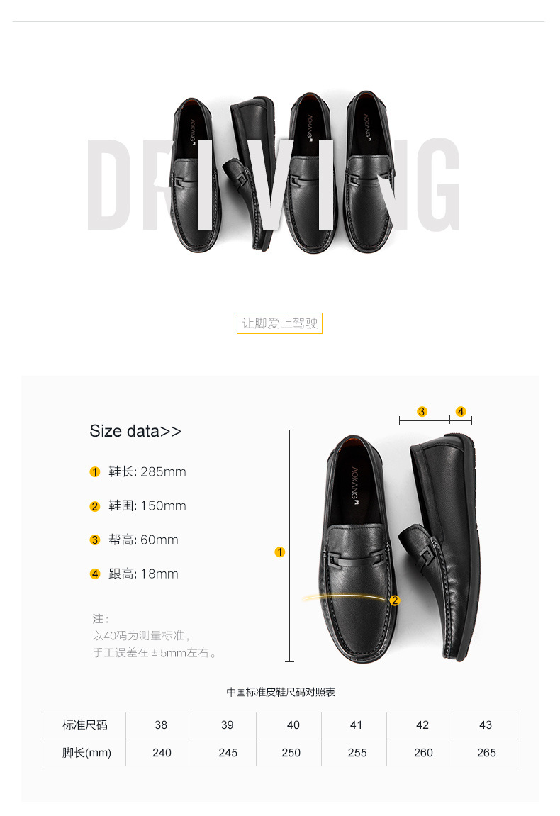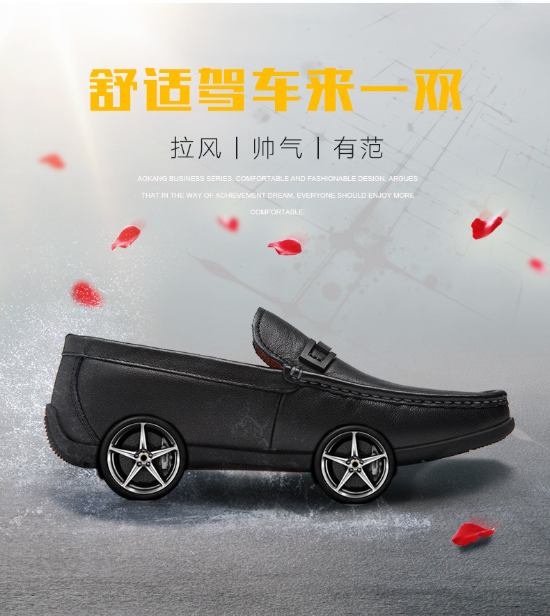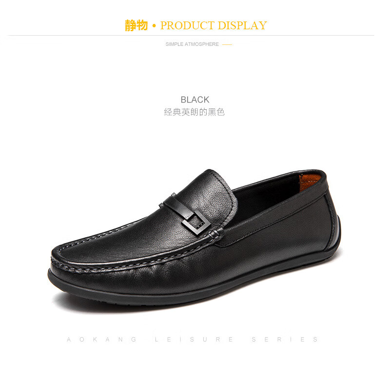 Aokang official men's shoes spring and autumn business casual leather shoes simple slip-on men's genuine leather soft-soled bean shoes driving shoes black 1243224000 41 (255mm)