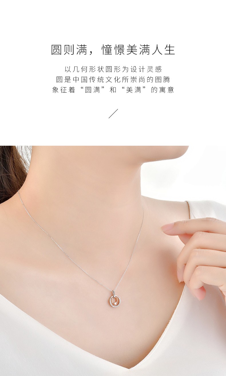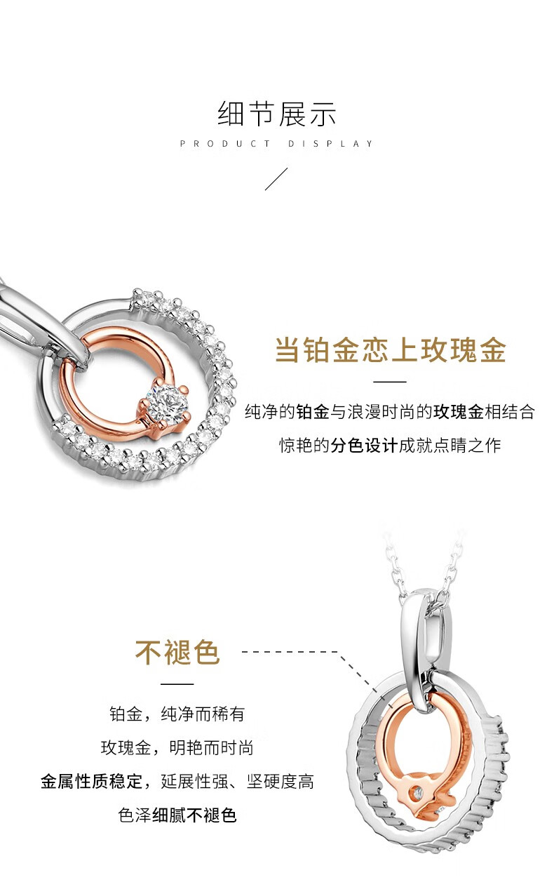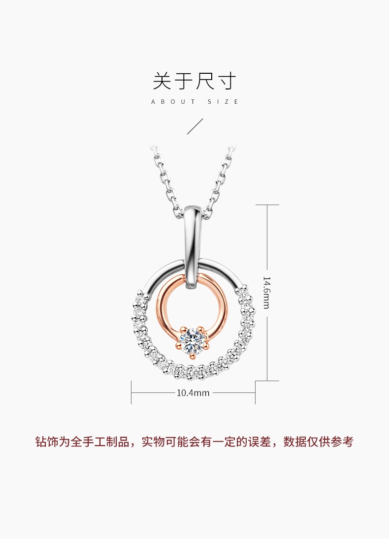 WithLovePt platinum 18K rose gold two-color diamond pendant round group set light luxury niche necklace for women Pt950/18K gold in stock (free S925 silver chain)