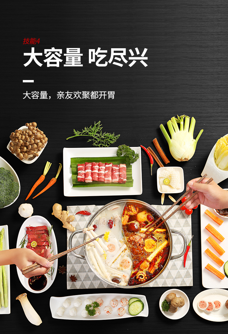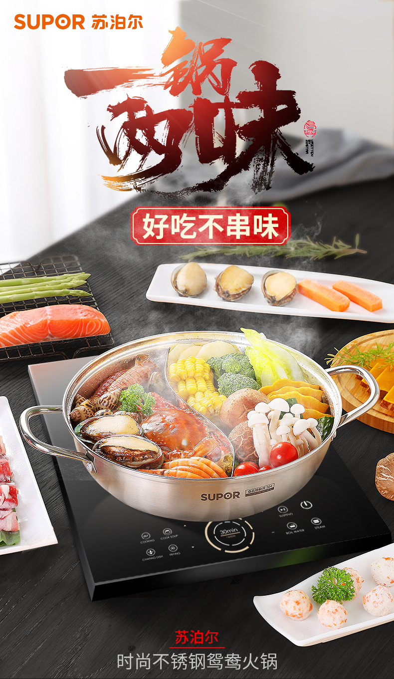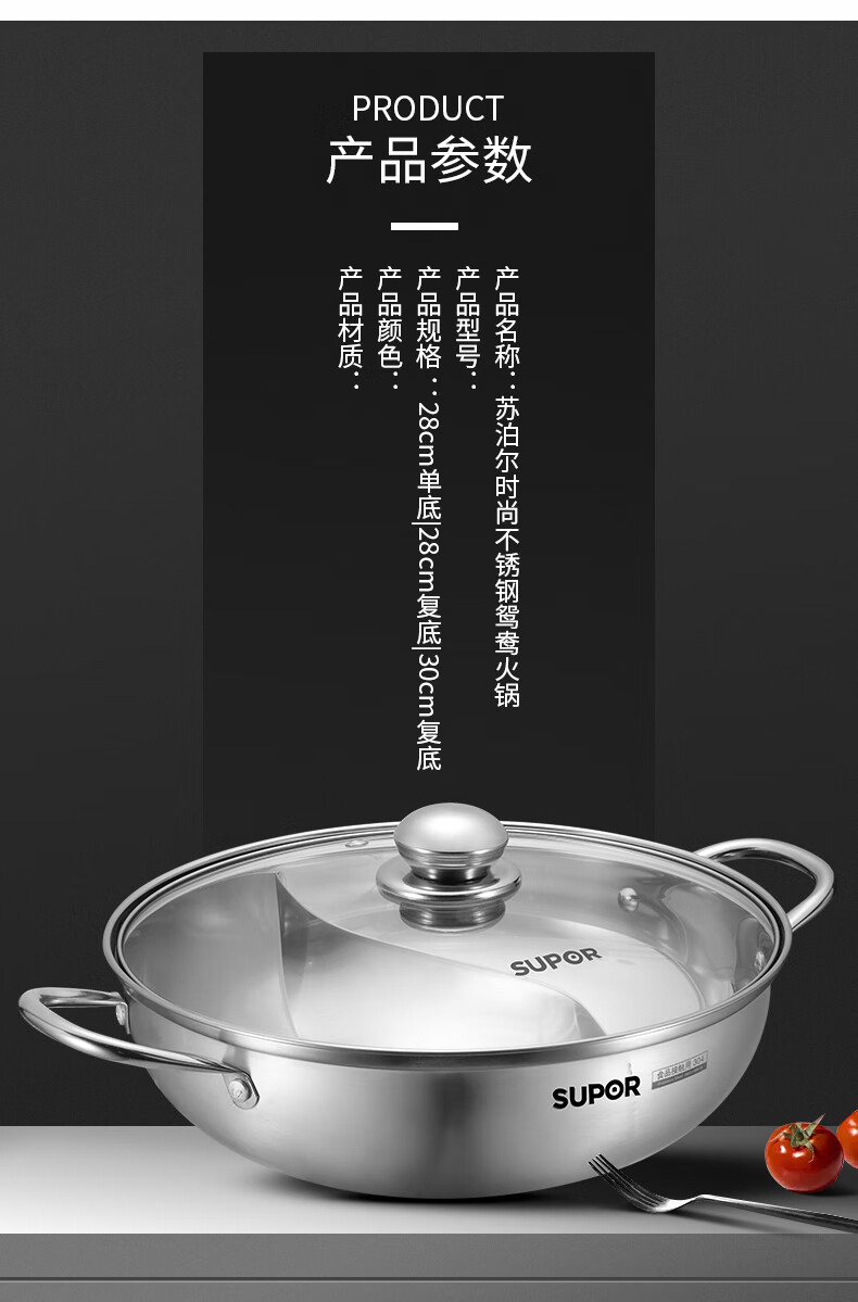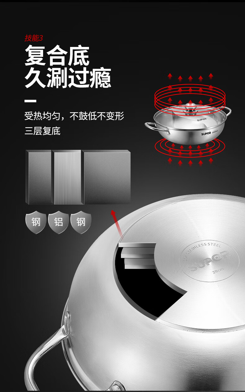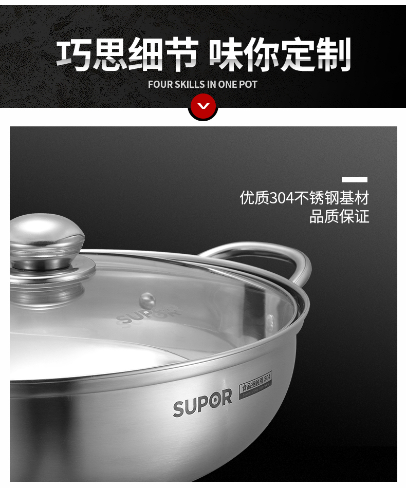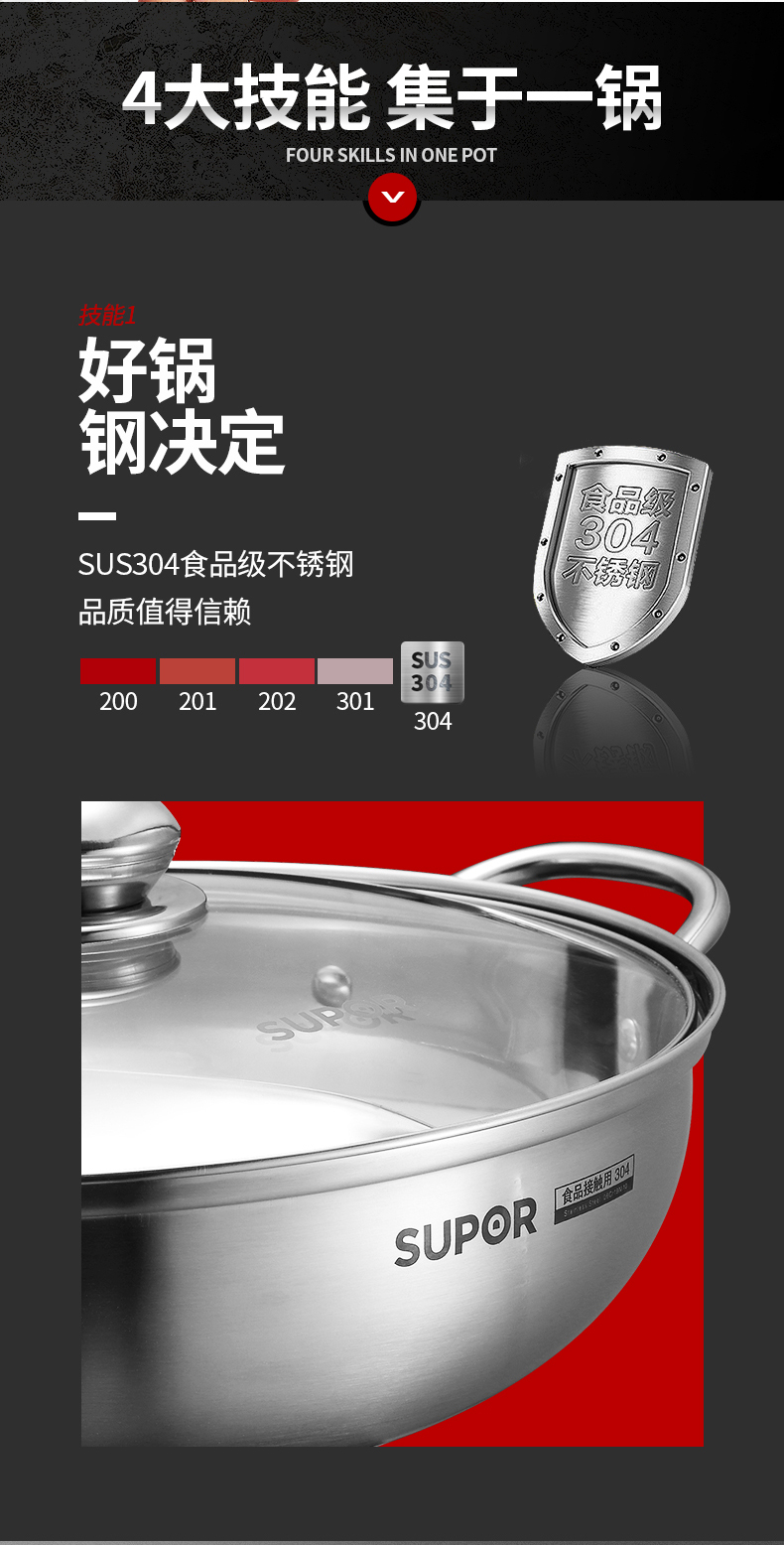 SUPOR hot pot 304 stainless steel soup pot large capacity shabu-shabu hot pot pot induction cooker gas universal ET28BS02- 28cm