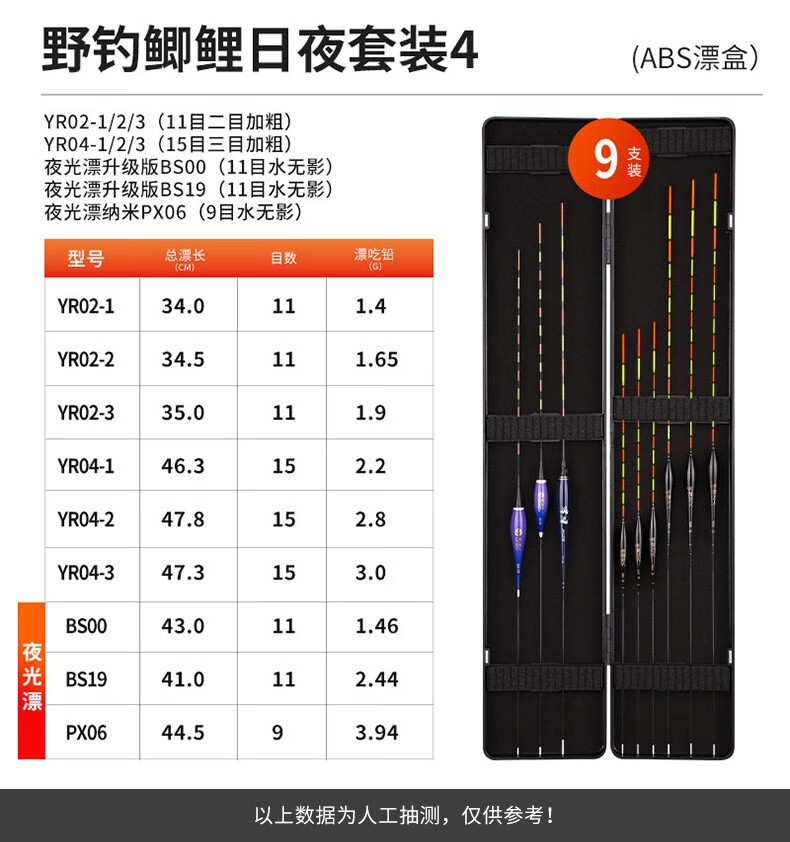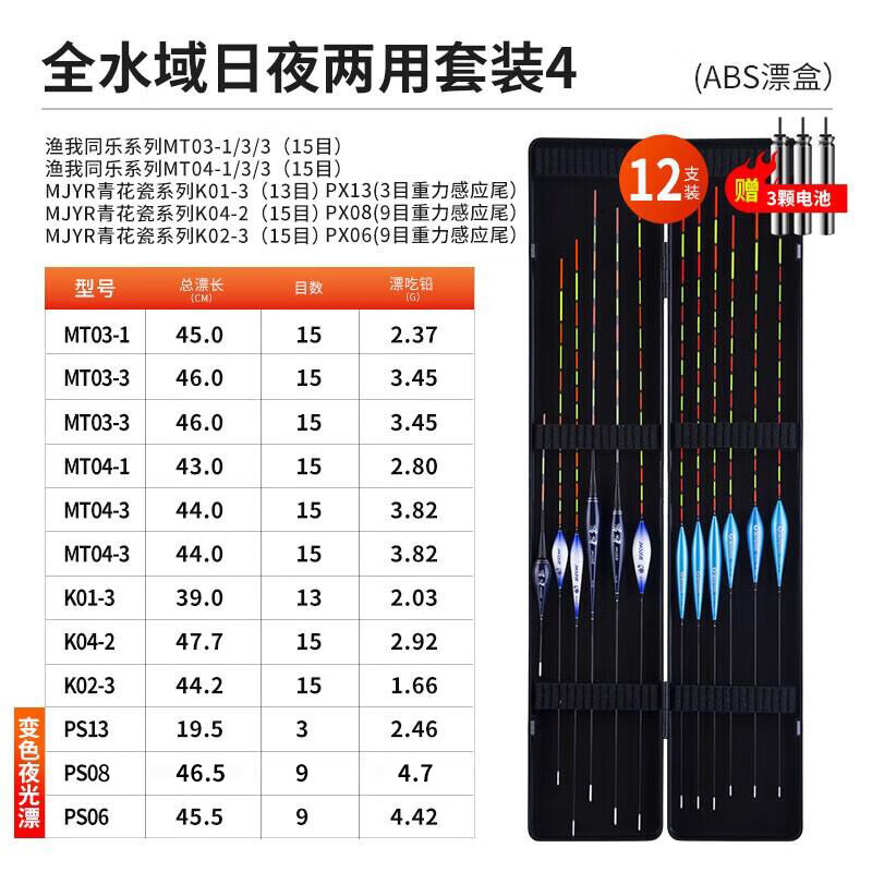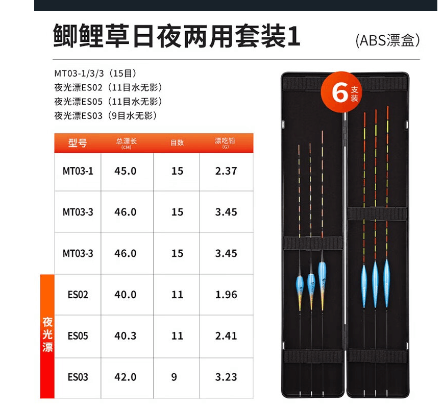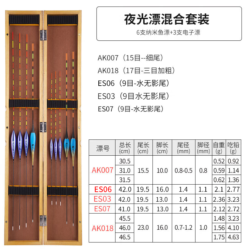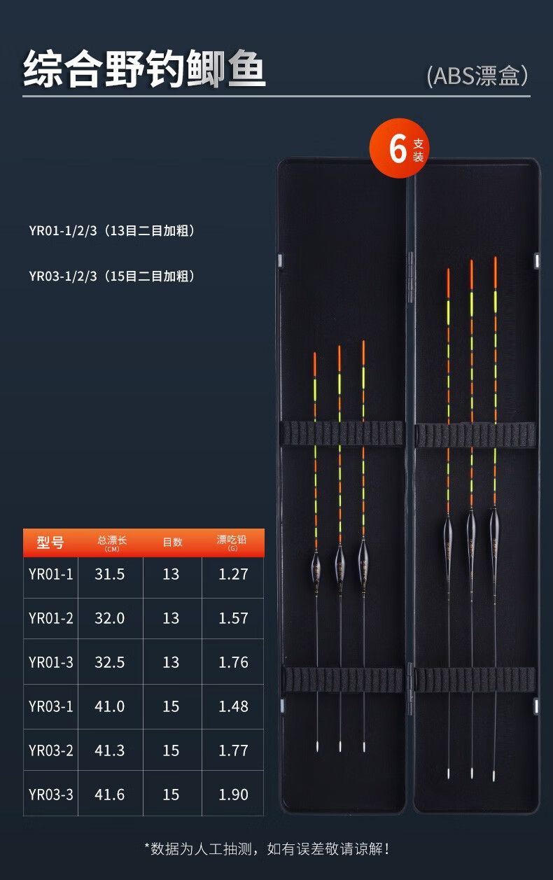 Folk artist bold and eye-catching fish float set crucian carp highly sensitive wild fishing float luminous float shallow water large objects fishing gear fishing supplies comprehensive wild fishing crucian carp 6-piece ABS float box set