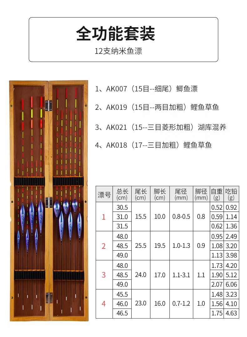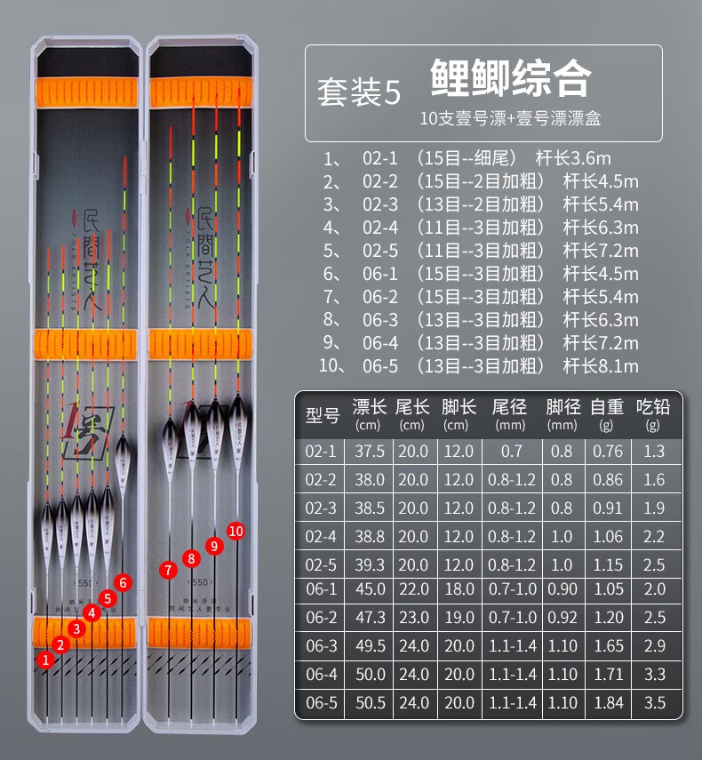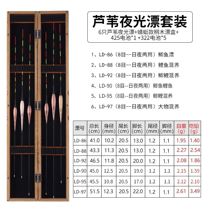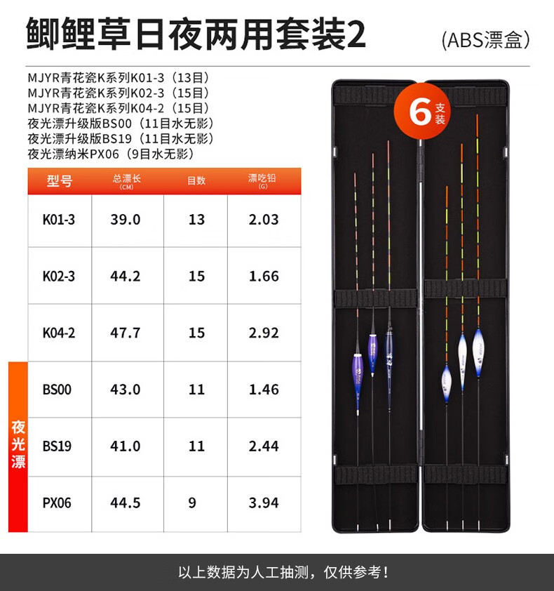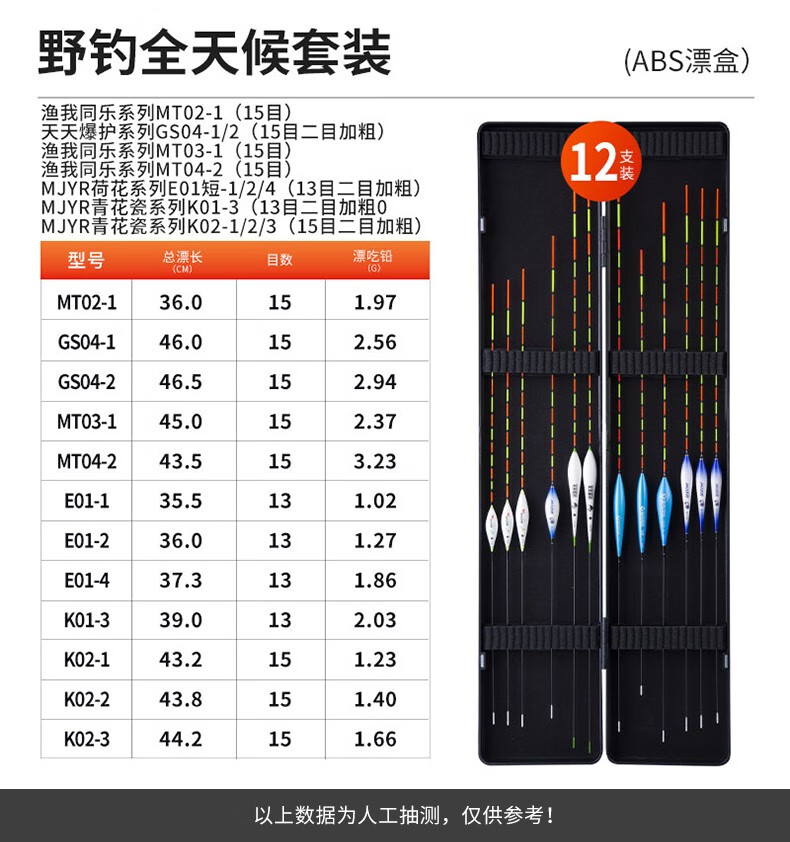 Folk artist bold and eye-catching fish float set crucian carp highly sensitive wild fishing float luminous float shallow water large objects fishing gear fishing supplies comprehensive wild fishing crucian carp 6-piece ABS float box set