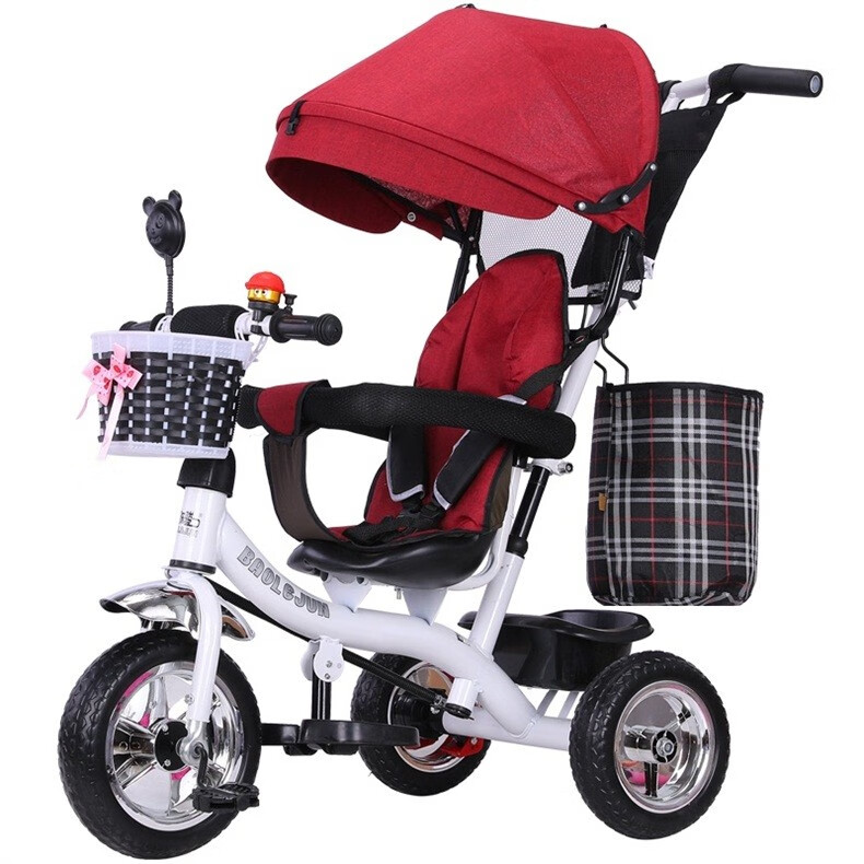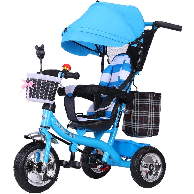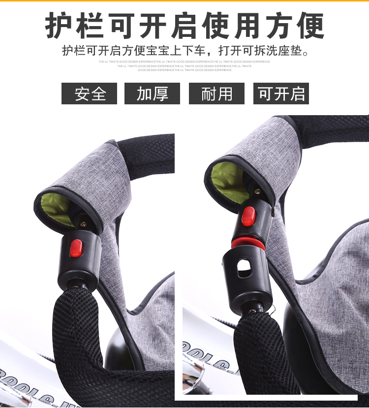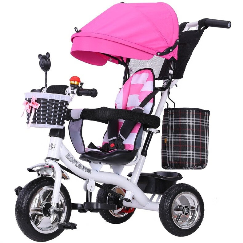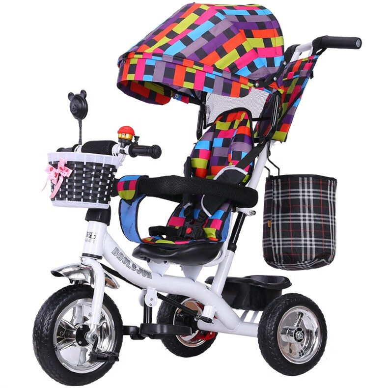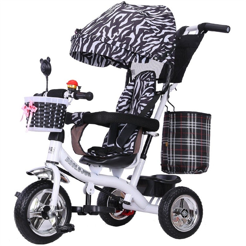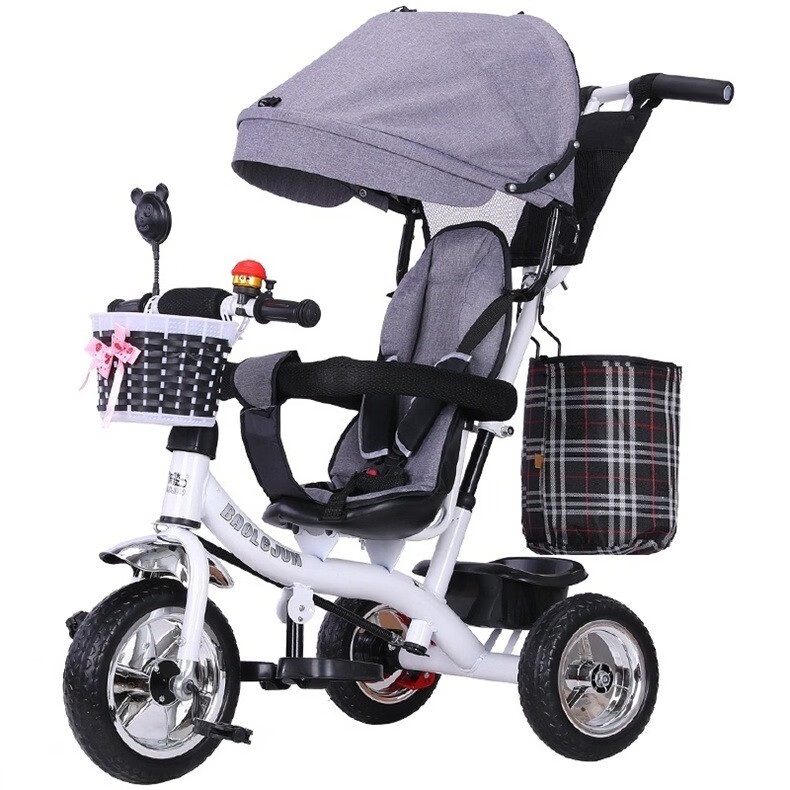 BAOLEJUN children's tricycle bicycle baby stroller infant stroller child 1-3-6 years old with guardrail carport black gray two-way promotion music + safety belt