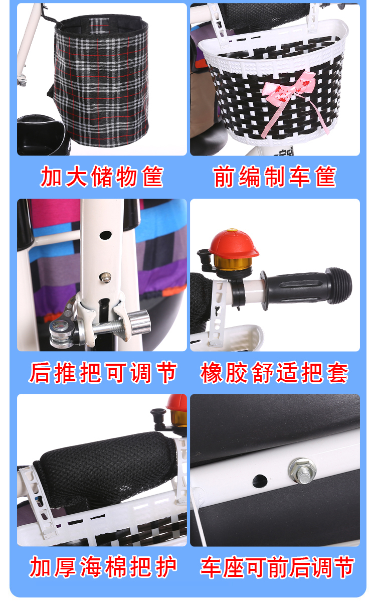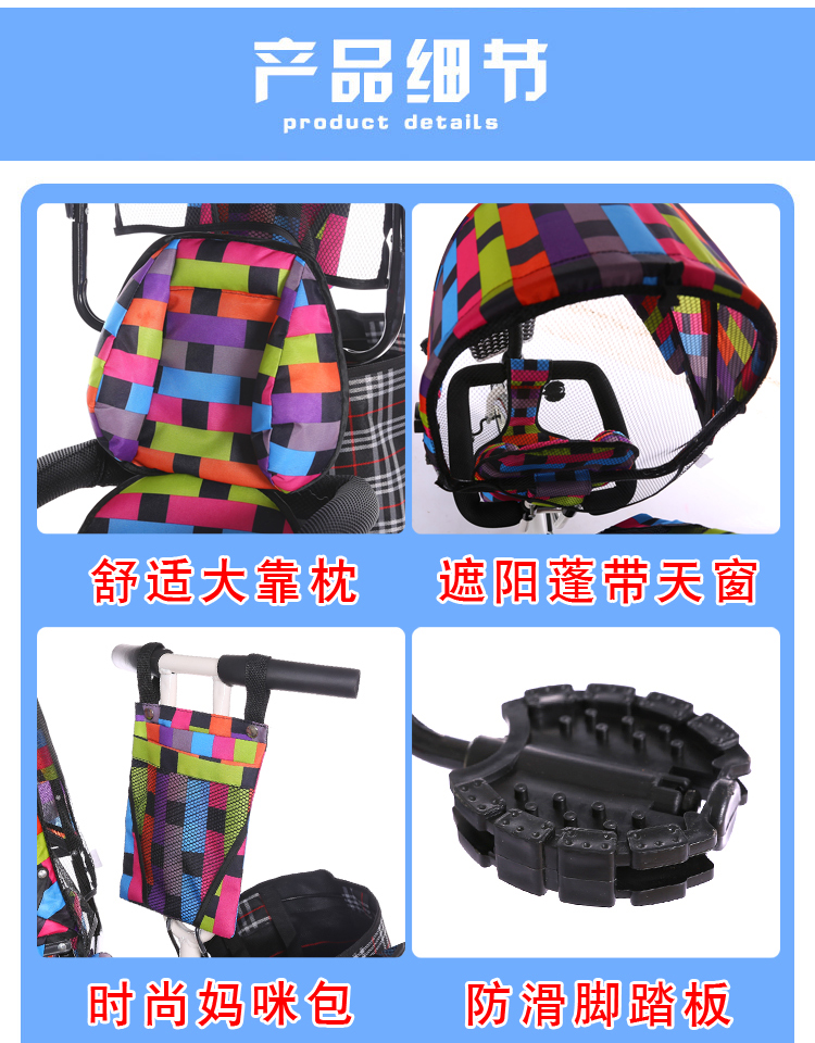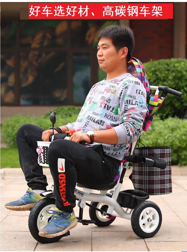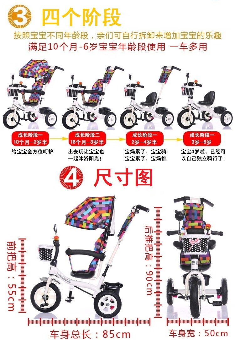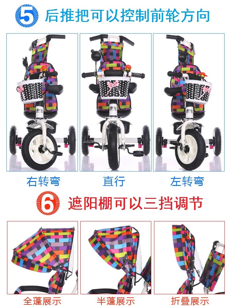 BAOLEJUN children's tricycle bicycle baby stroller infant stroller child 1-3-6 years old with guardrail carport black gray two-way promotion music + safety belt