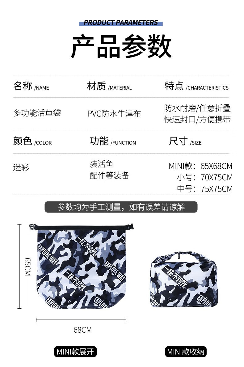 Yiyi Huashi live fish bag thickened wear-resistant portable fishing folding fish bag catch fish bag fishing supplies medium size 75cmX75cm without oxygen hole