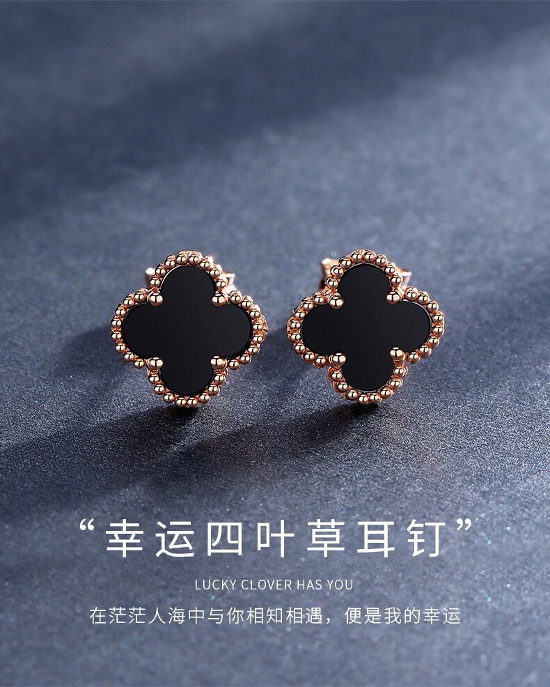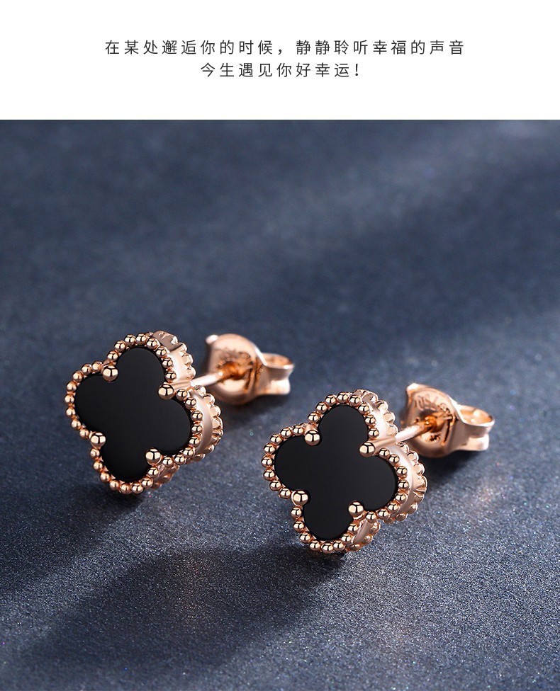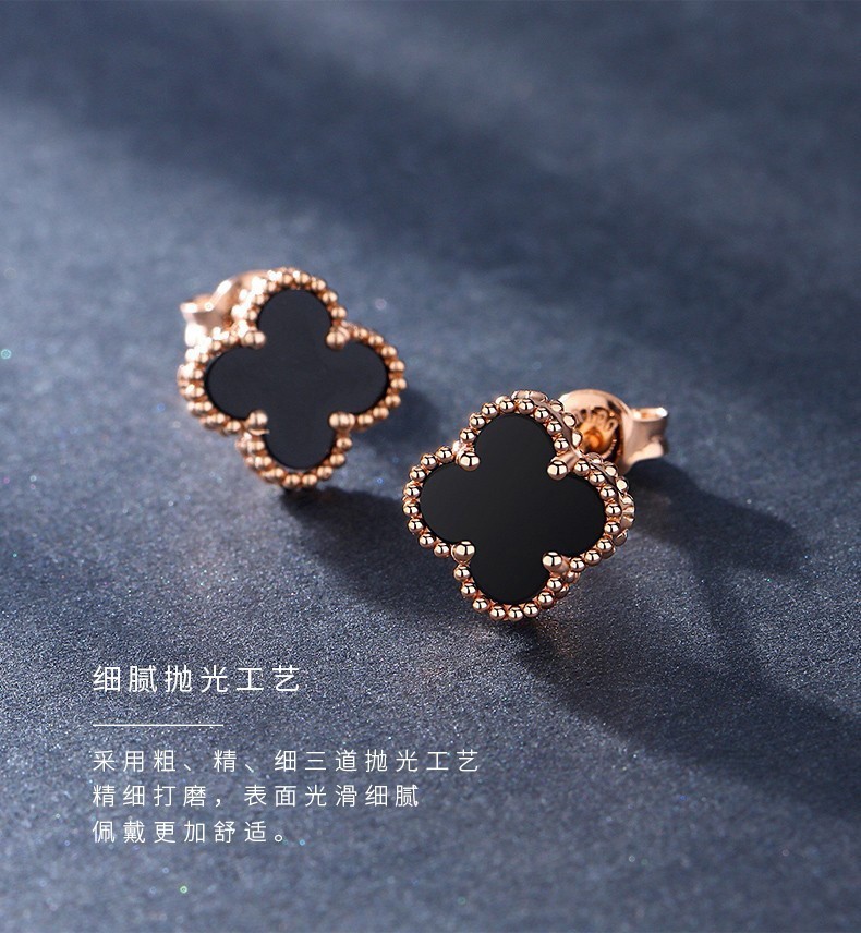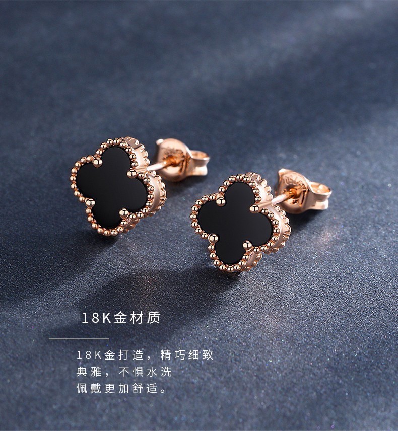 Fafanxi brand 18K color gold four-leaf clover earrings new fashion ear buckle earrings rose gold earrings for women Christmas gift four-leaf clover black agate 12MM