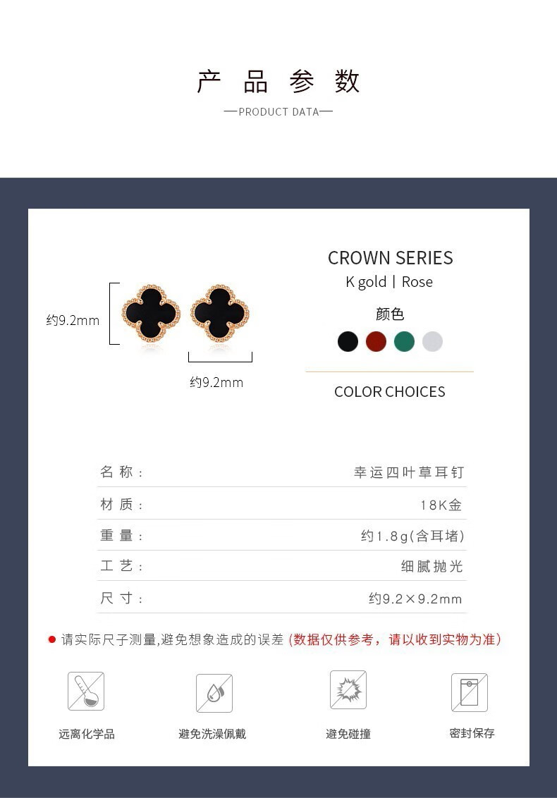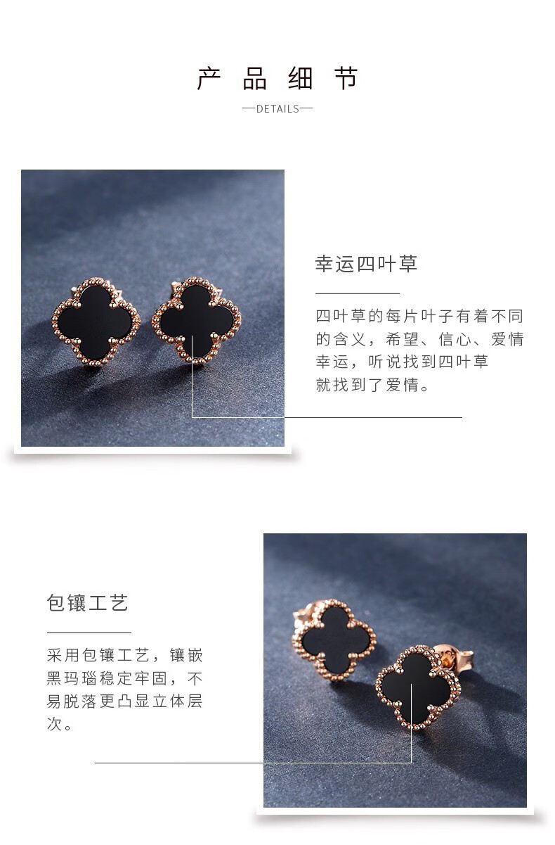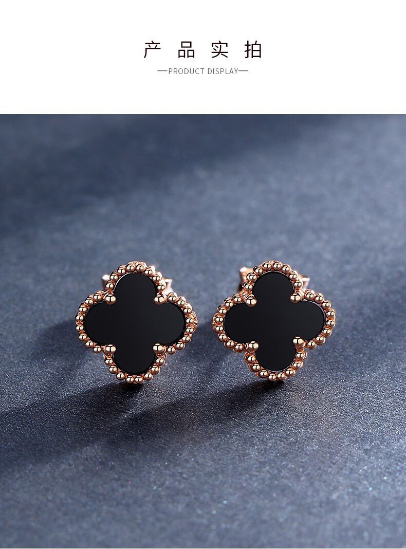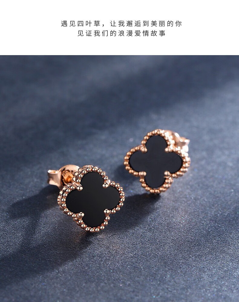 Fafanxi brand 18K color gold four-leaf clover earrings new fashion ear buckle earrings rose gold earrings for women Christmas gift four-leaf clover black agate 12MM