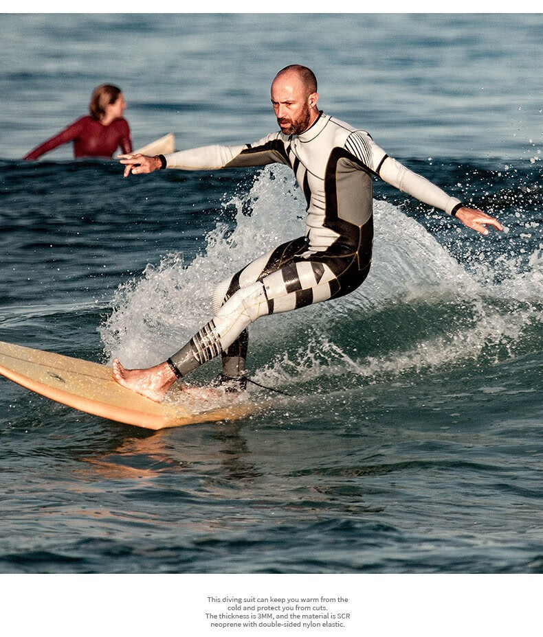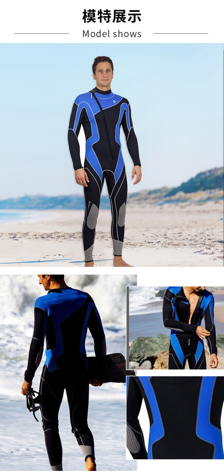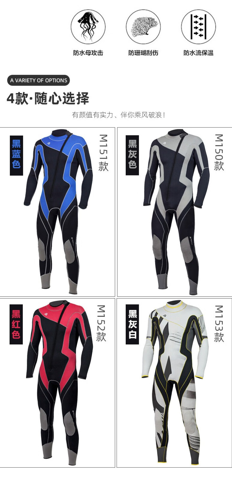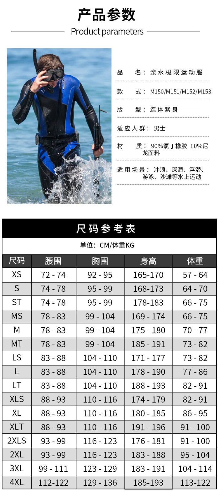 HiSEA men's and women's diving suits, one-piece long-sleeved swimsuits, cold-proof clothes, warm clothes, snorkeling wetsuits, surf suits, black and red - four needles and six threads 3XL