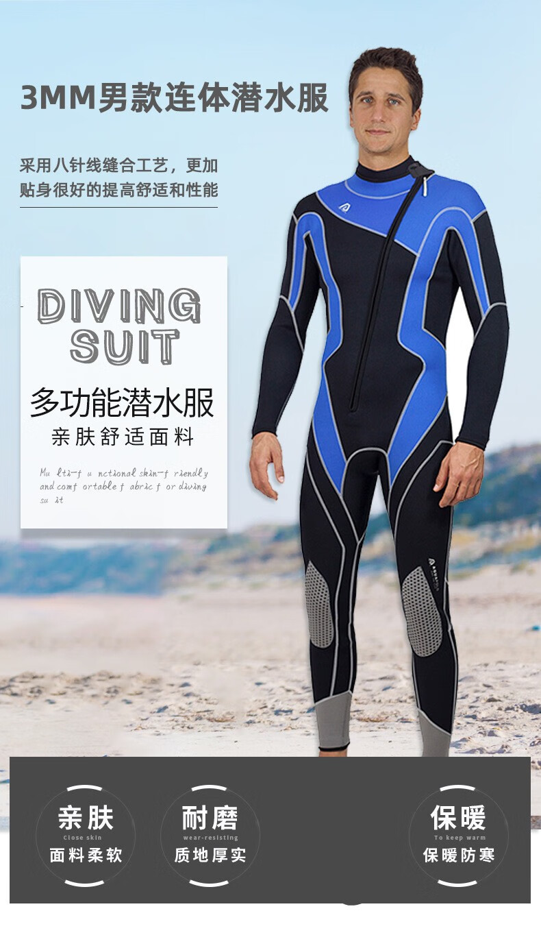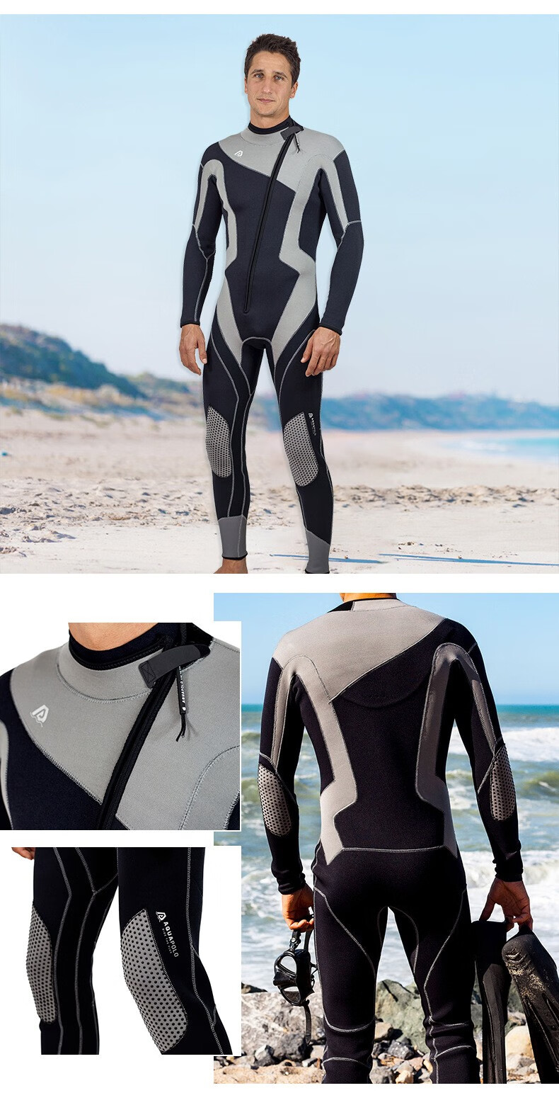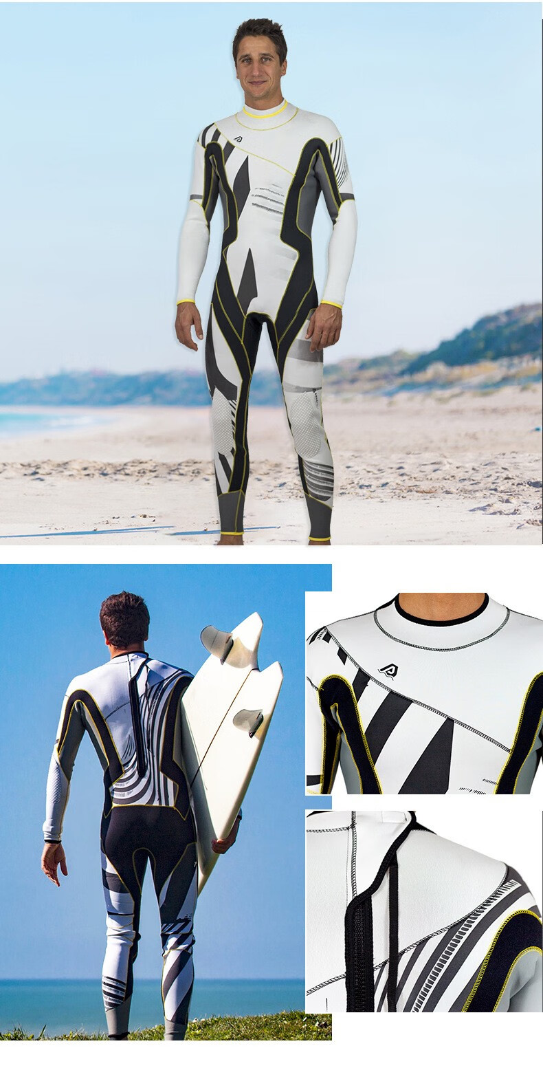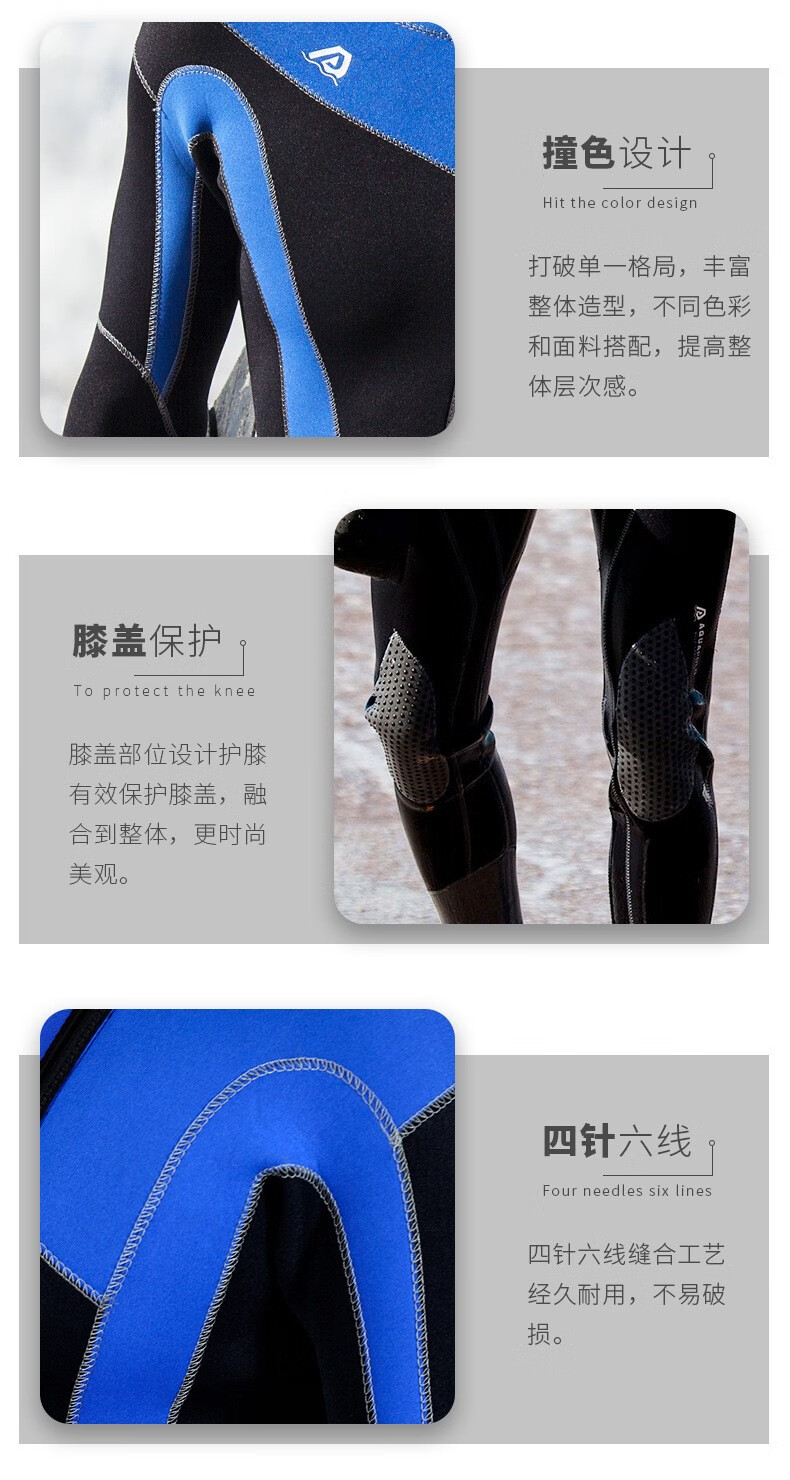 HiSEA men's and women's diving suits, one-piece long-sleeved swimsuits, cold-proof clothes, warm clothes, snorkeling wetsuits, surf suits, black and red - four needles and six threads 3XL