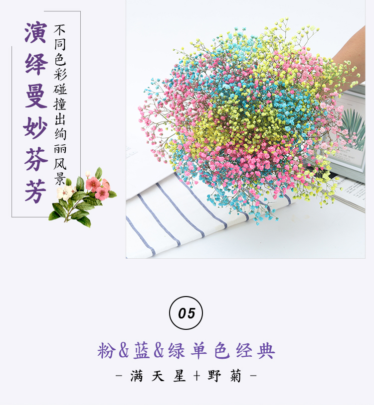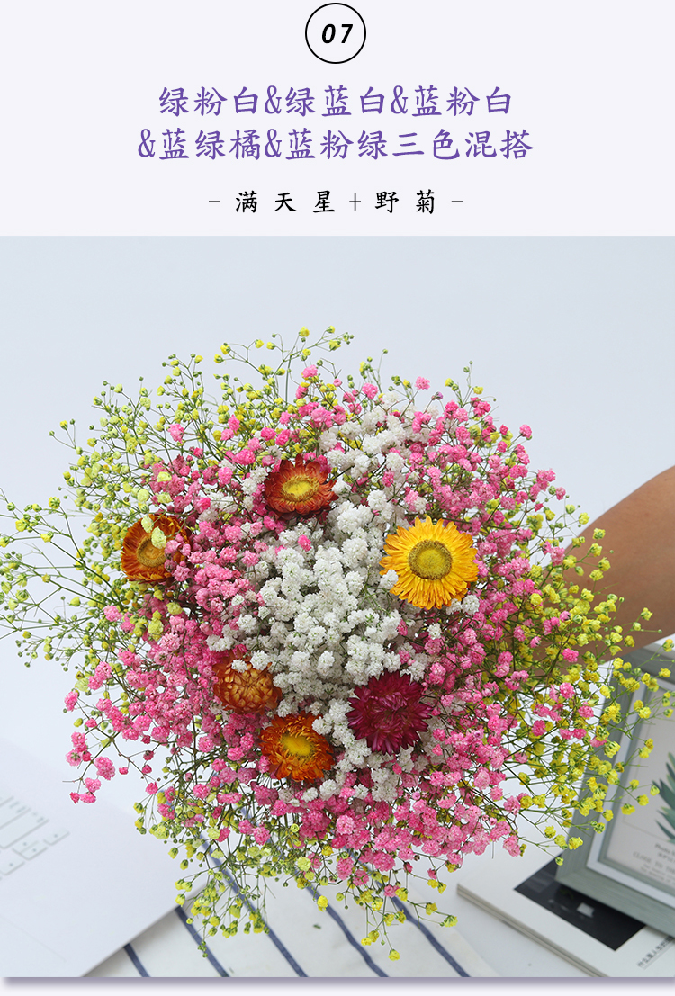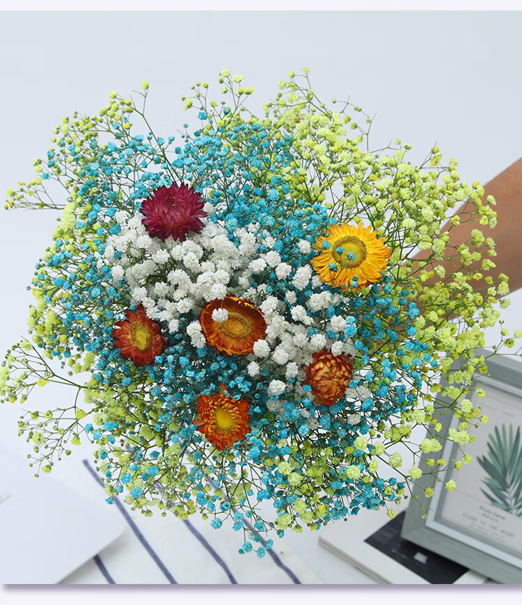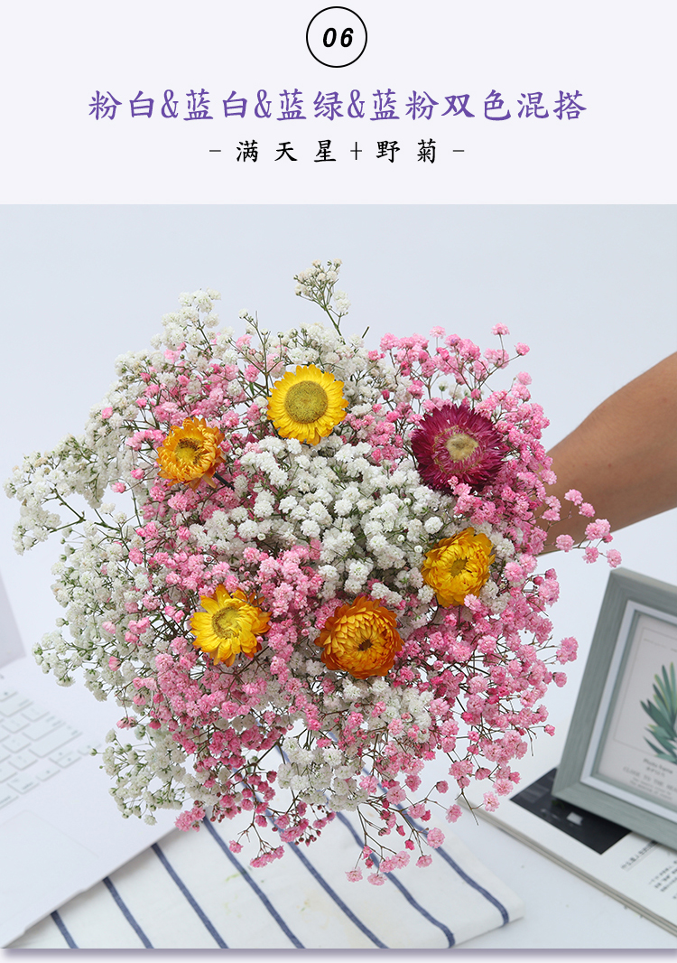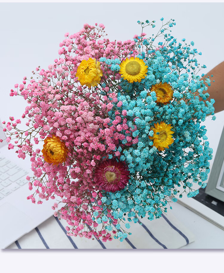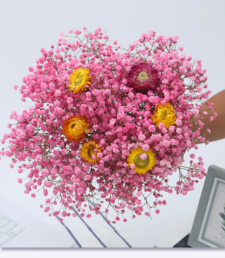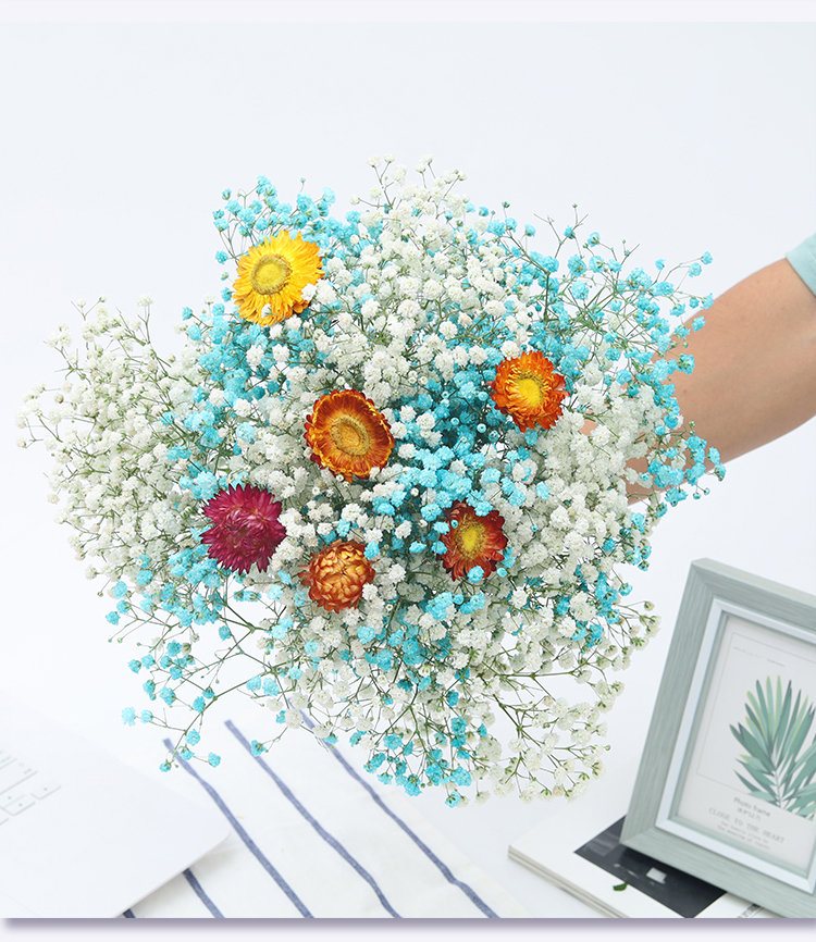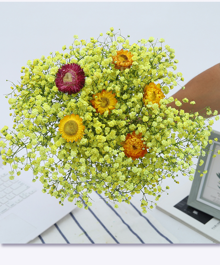 AIMAN Yunnan straight-haired dried flower bouquet real flower home furnishing decoration small fresh living room office decoration air-dried bouquet white + pink gypsophila without vase