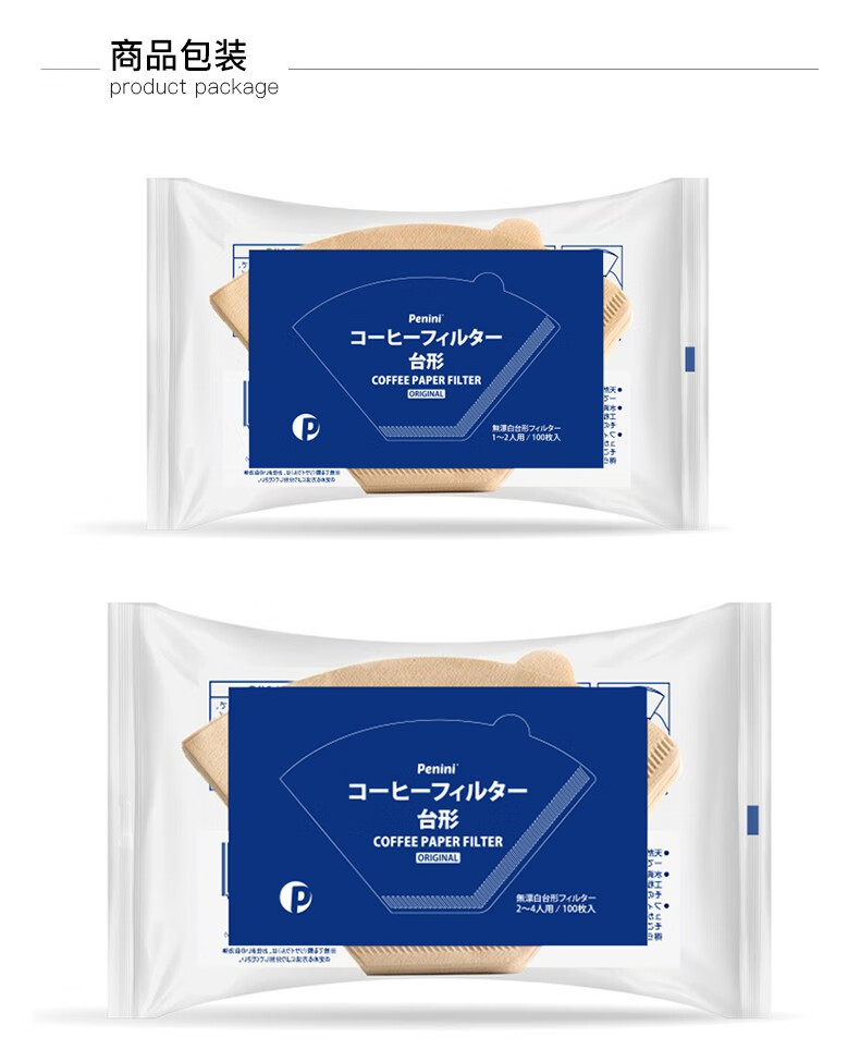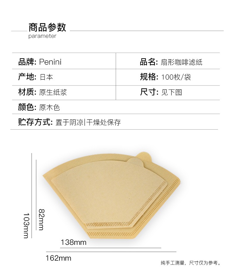 Penini coffee filter paper 100 pieces, fan-shaped filter paper imported from Japan, drip-type hand-brewed coffee filter paper, 2-4 people (100 pieces/bag)