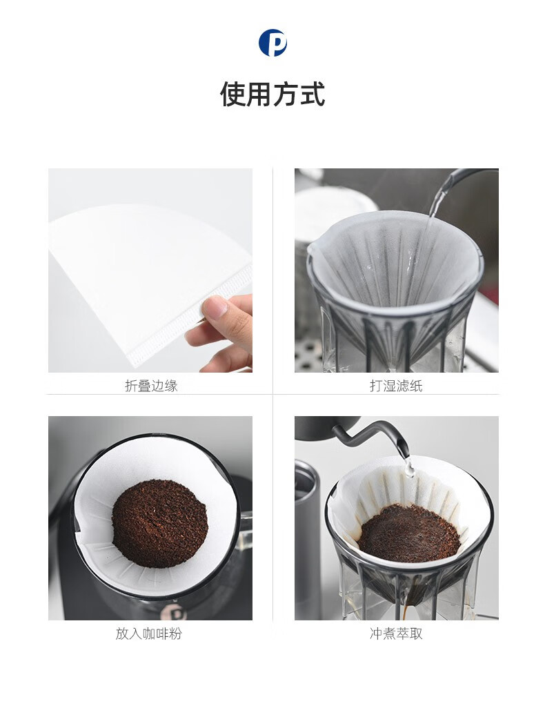 Penini coffee filter paper 100 pieces for V-shaped filter cups imported from Japan V60 drip-type hand-brewed coffee filter bag for 2-4 people