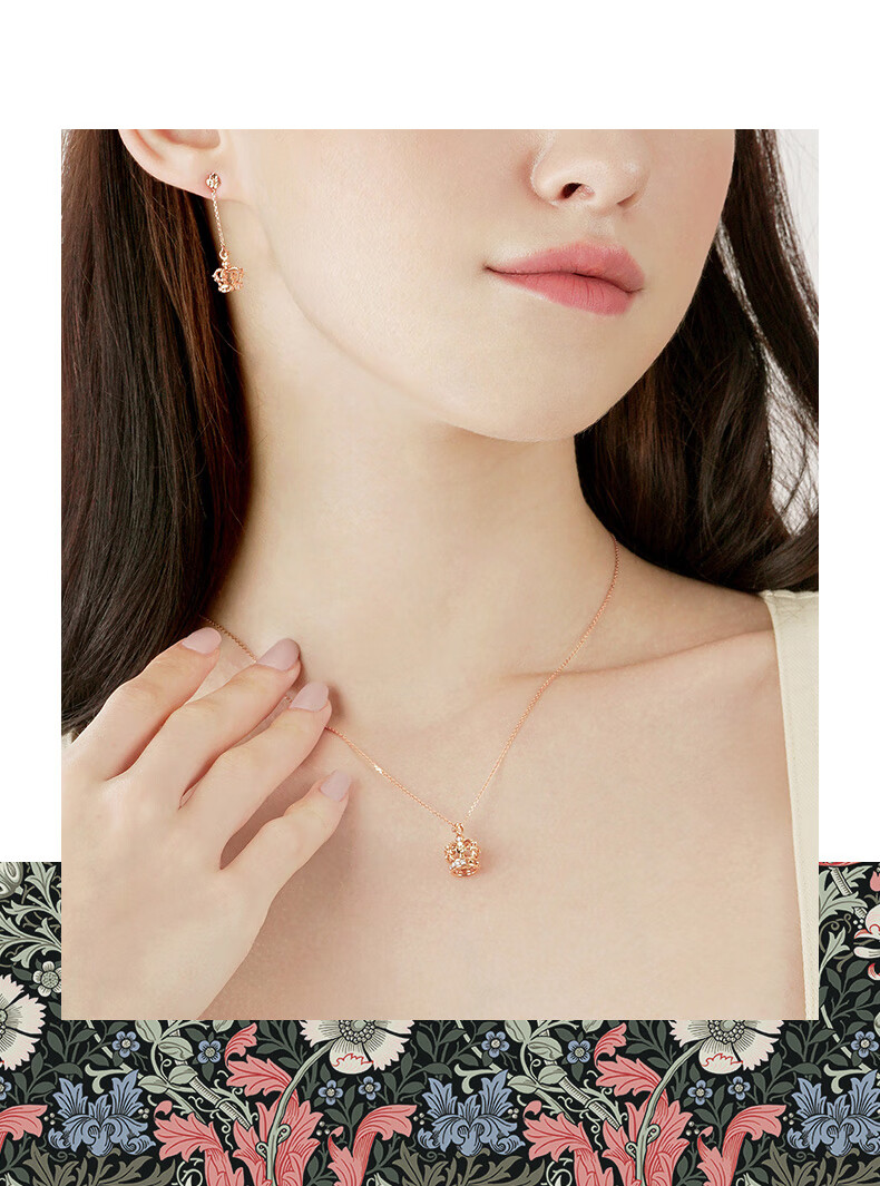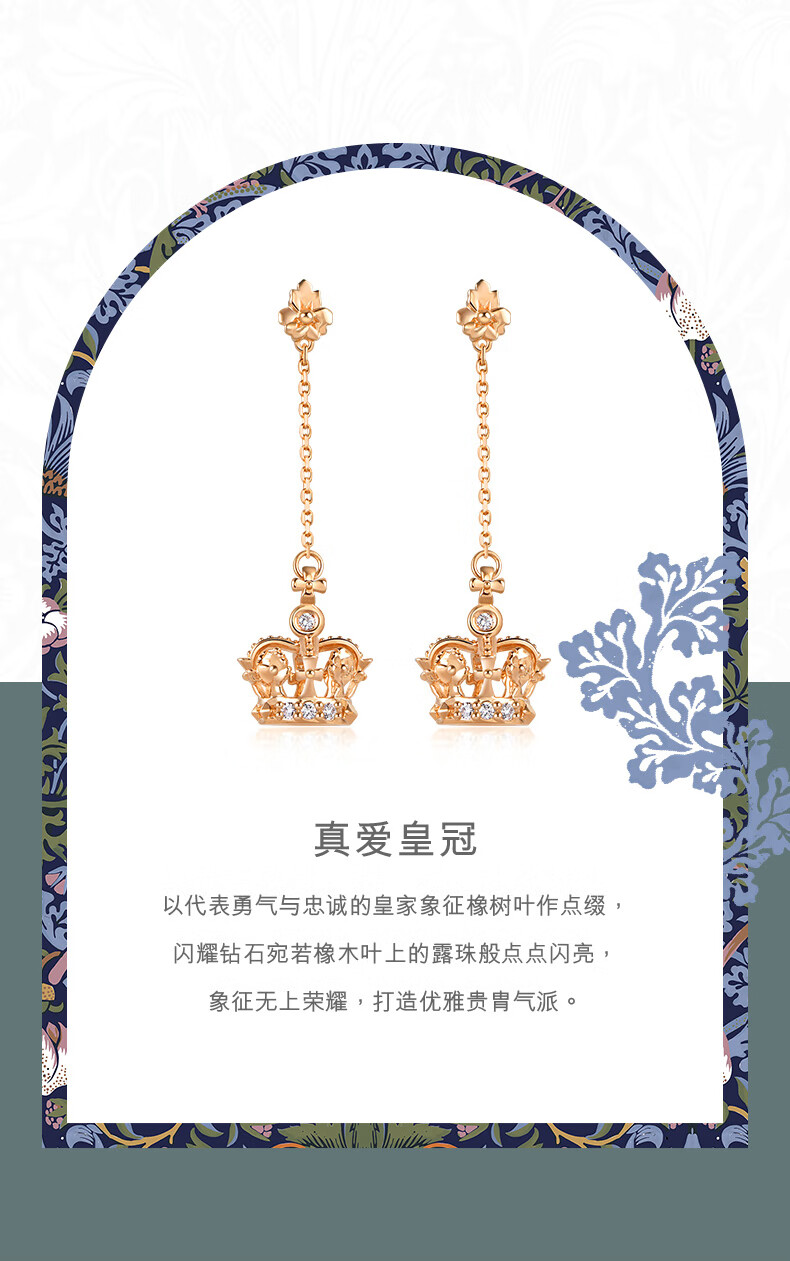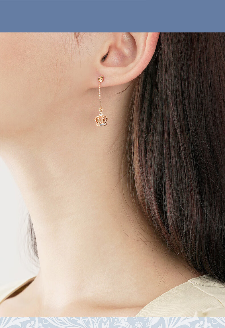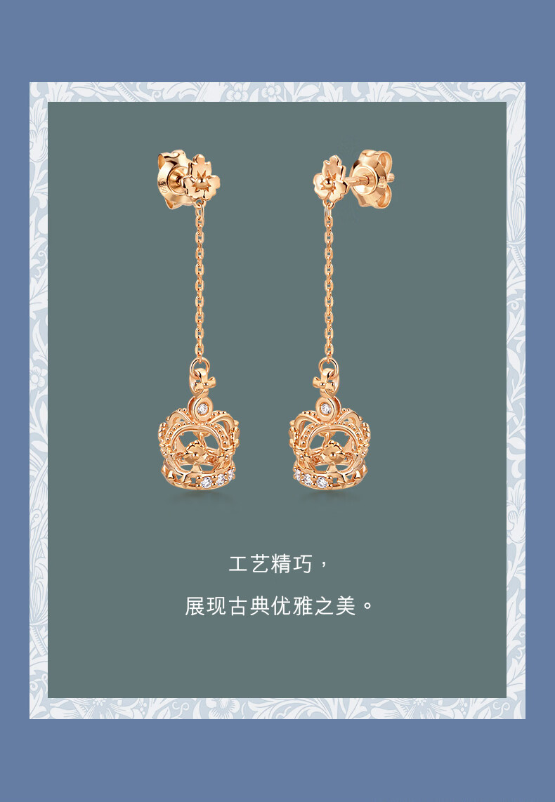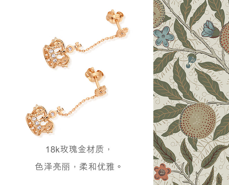 Chow Sang Sang 18K Rose Gold VA Laurel Crown Diamond Stud Earrings Women's Color Gold Earrings 90894E