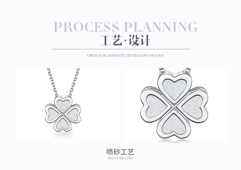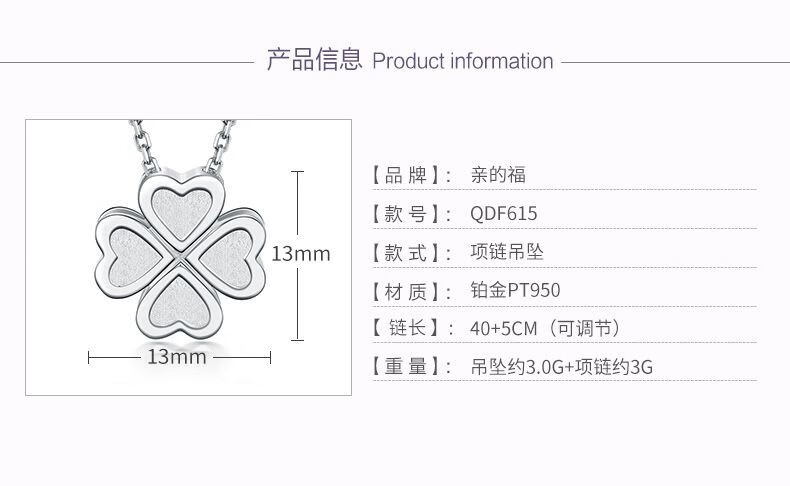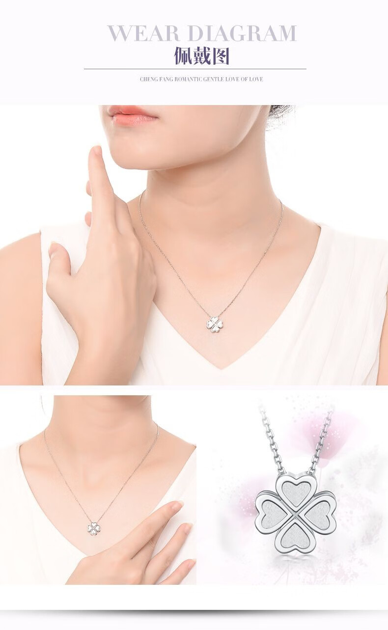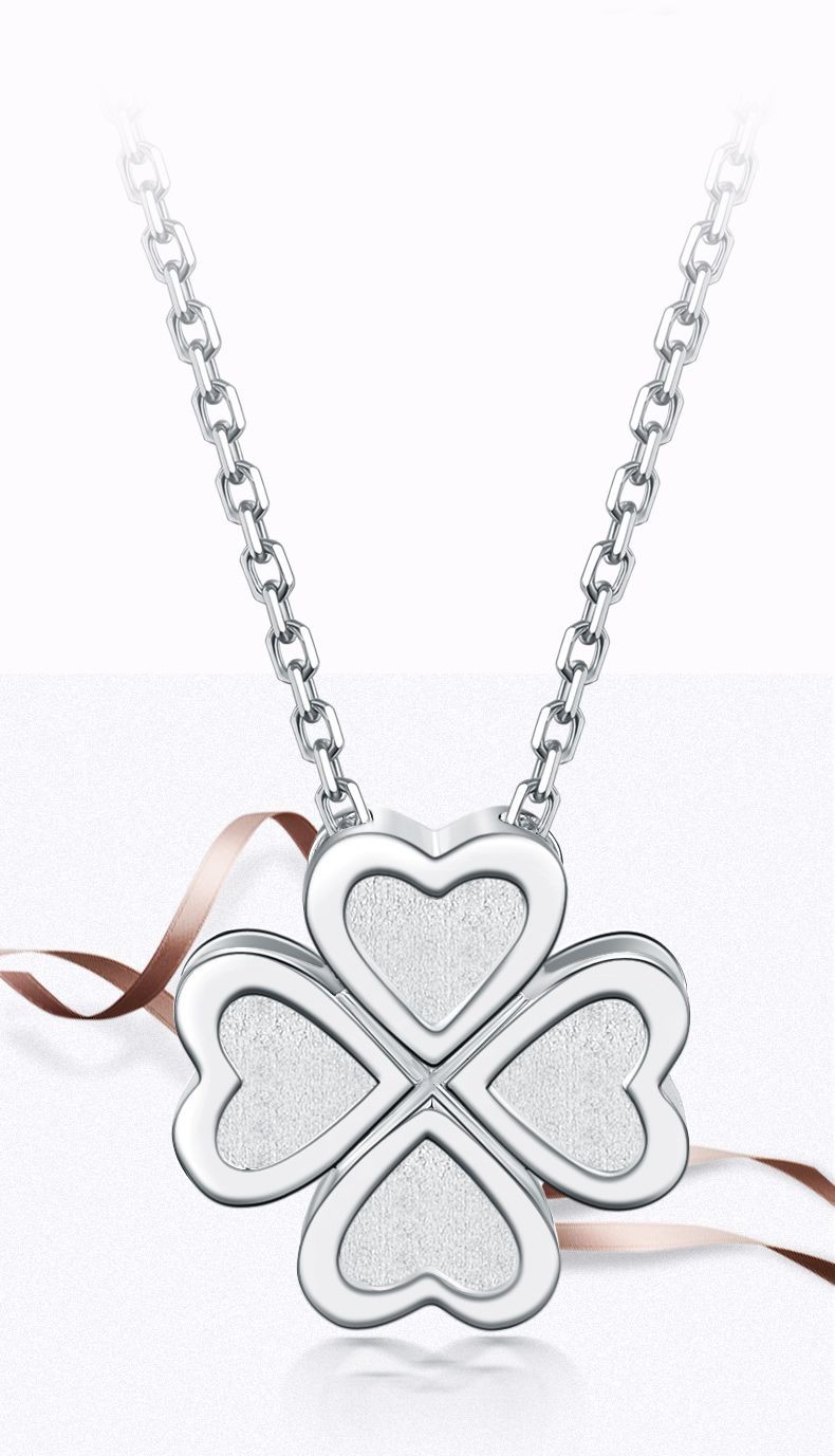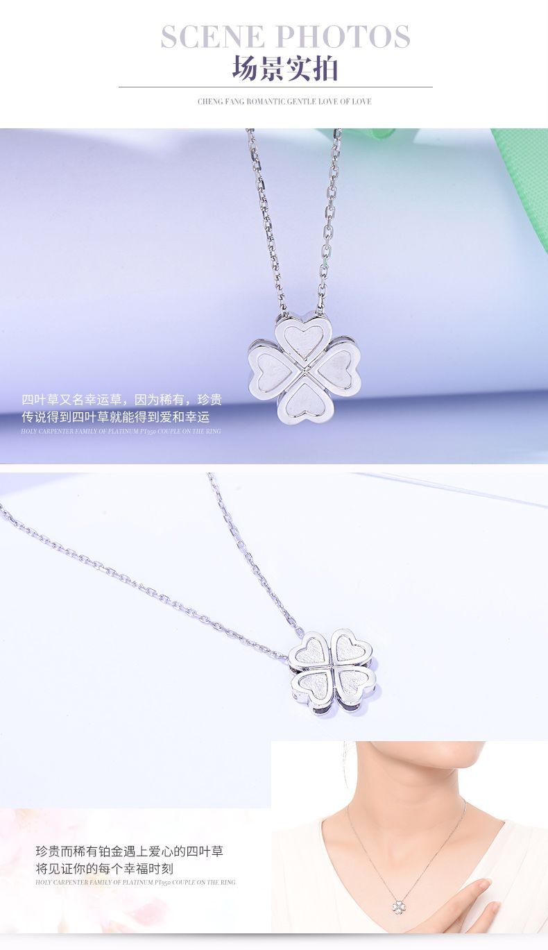 QinDeFu platinum necklace, platinum four-leaf clover, heart-shaped pendant for women, versatile plain gold chain set, birthday gift, pendant about 3.2 grams (customized) with 1 silver necklace