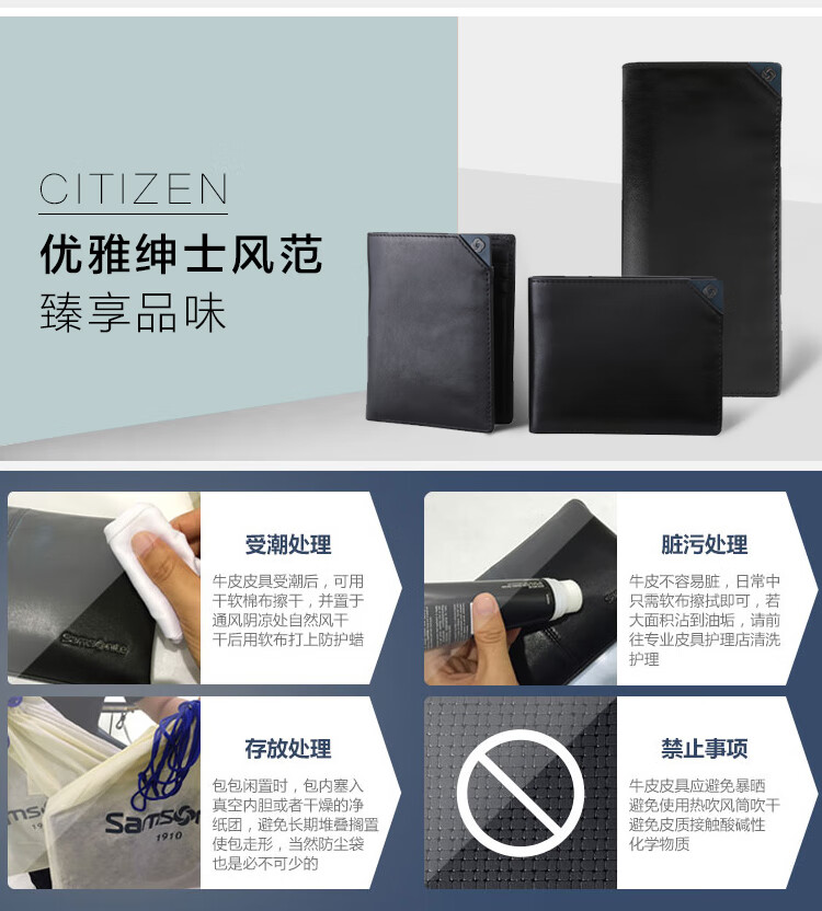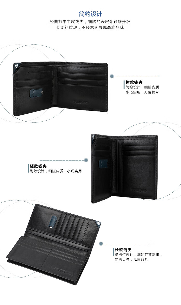 Samsonite Men's Long Wallet Cowhide Card Bag Driving Document Storage Bag Men's Birthday Gift TK6