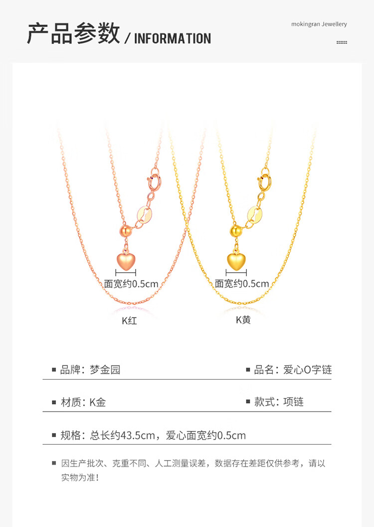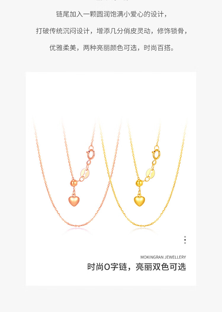 Mengjinyuan 18K gold necklace AU750 colored gold Chopard chain plain chain rose gold love O-shaped chain for your girlfriend, weighing about 1.30g46cmK red O-shaped chain