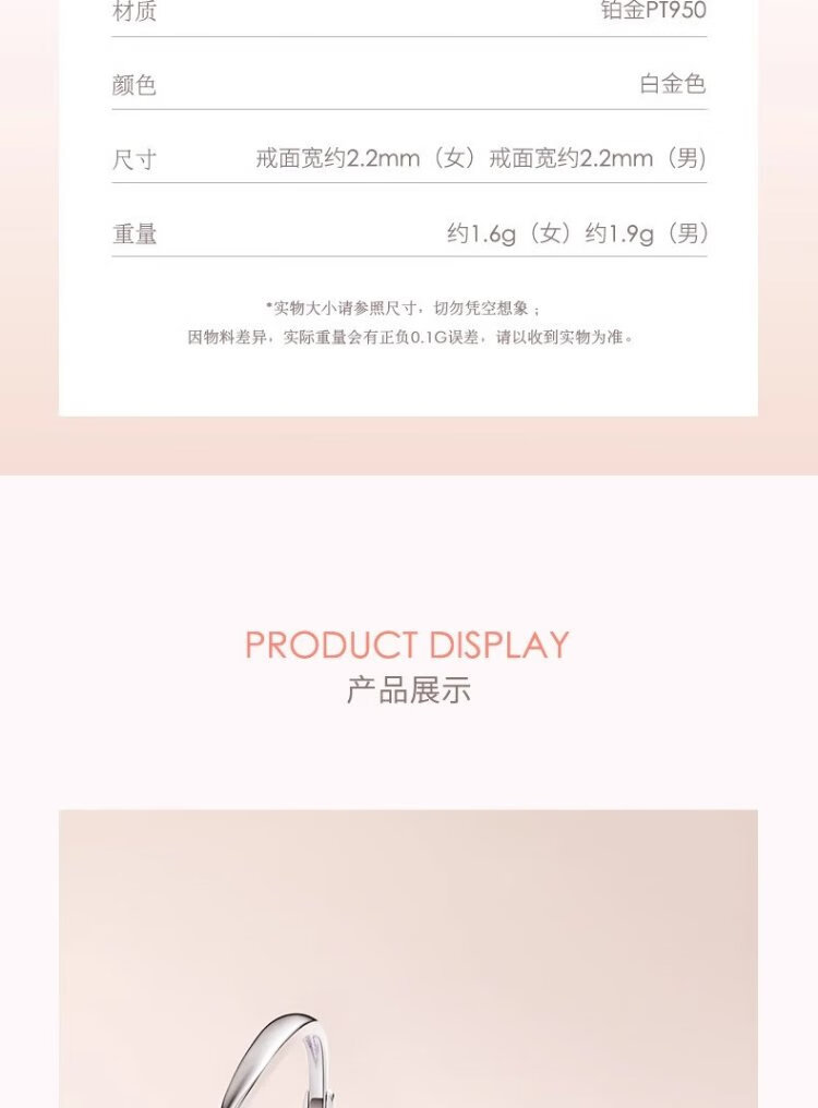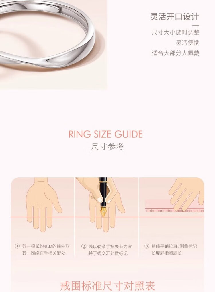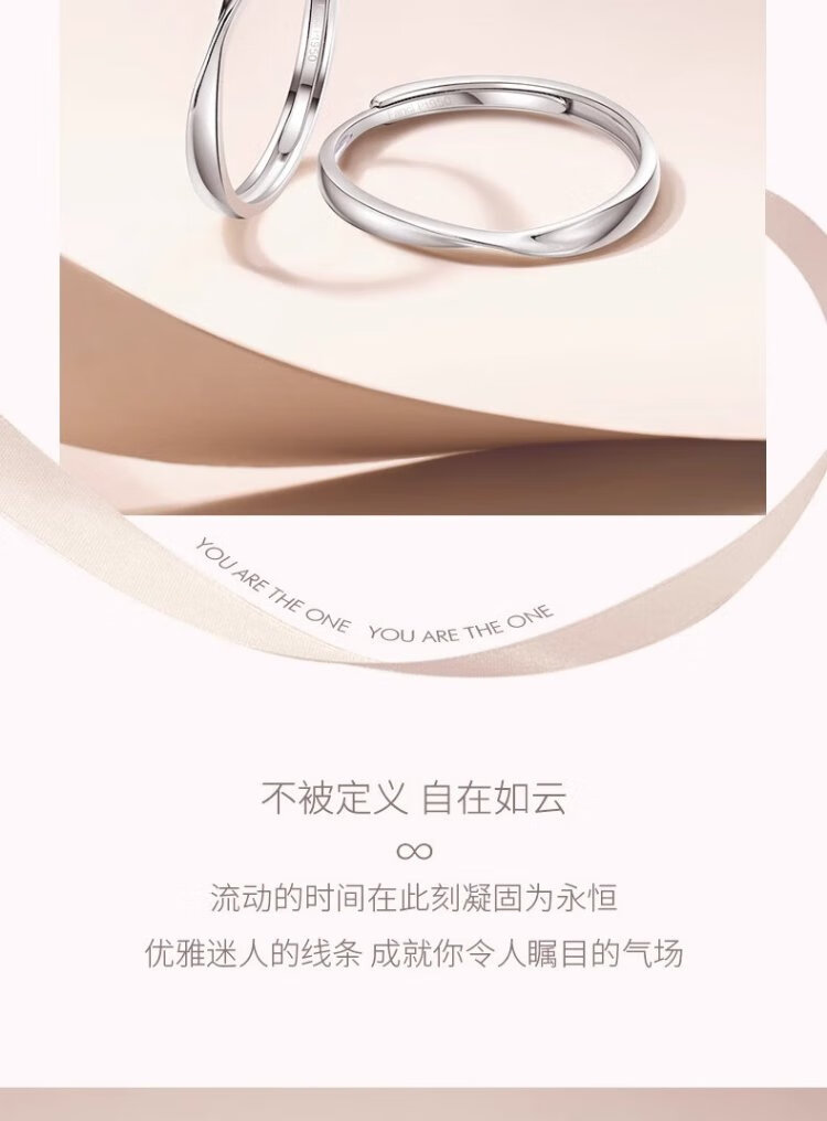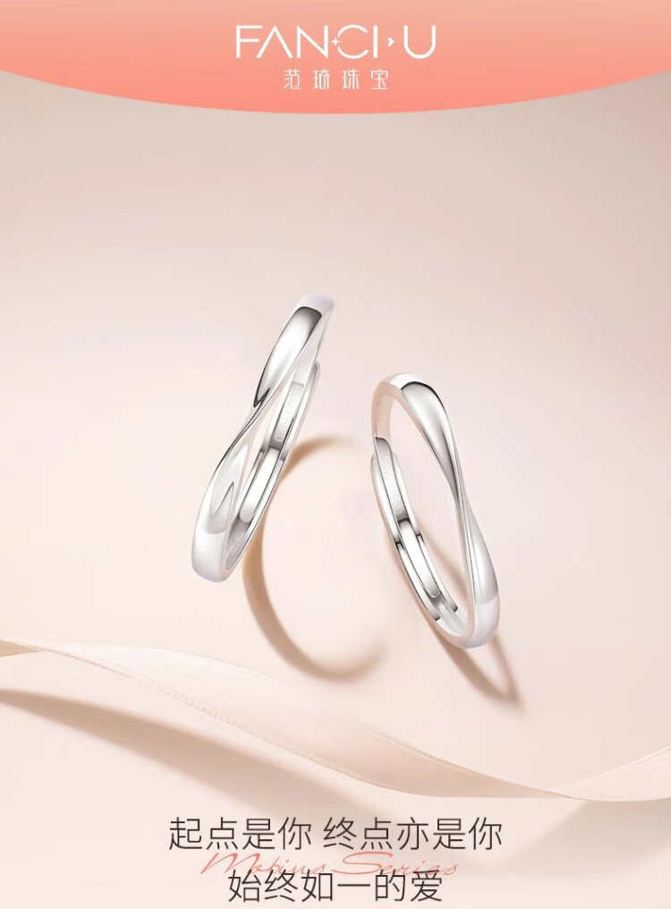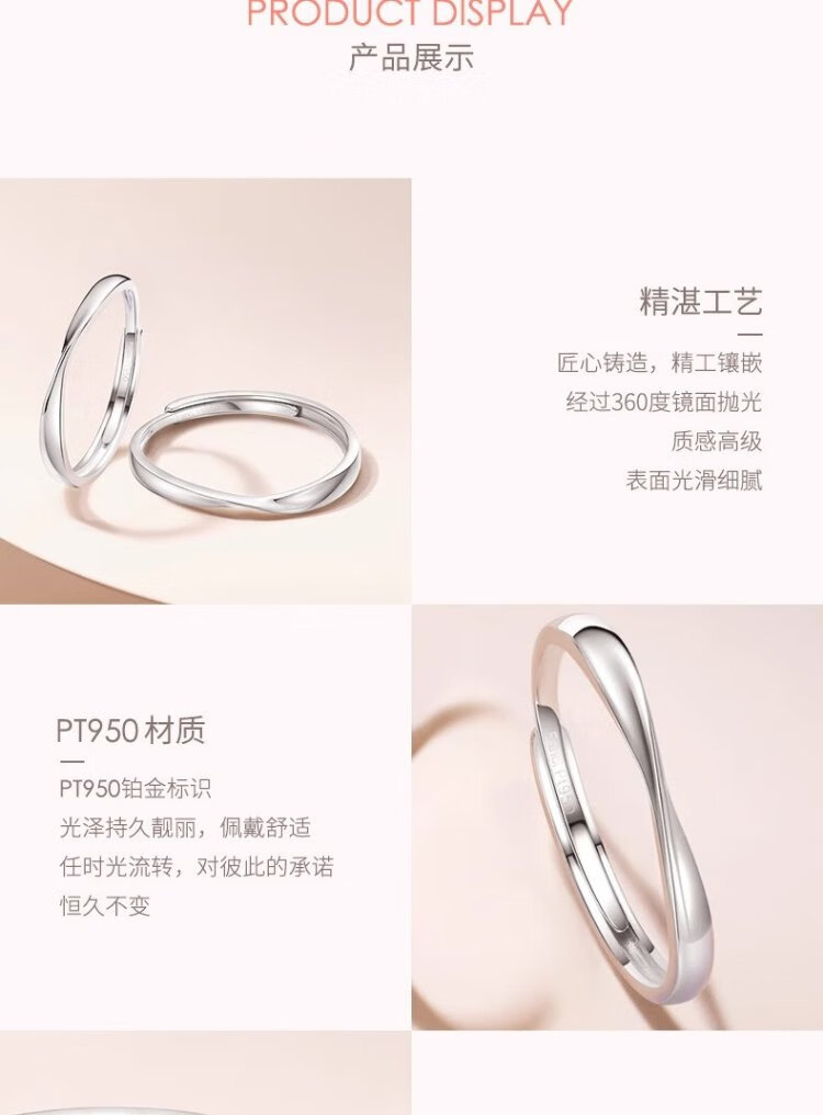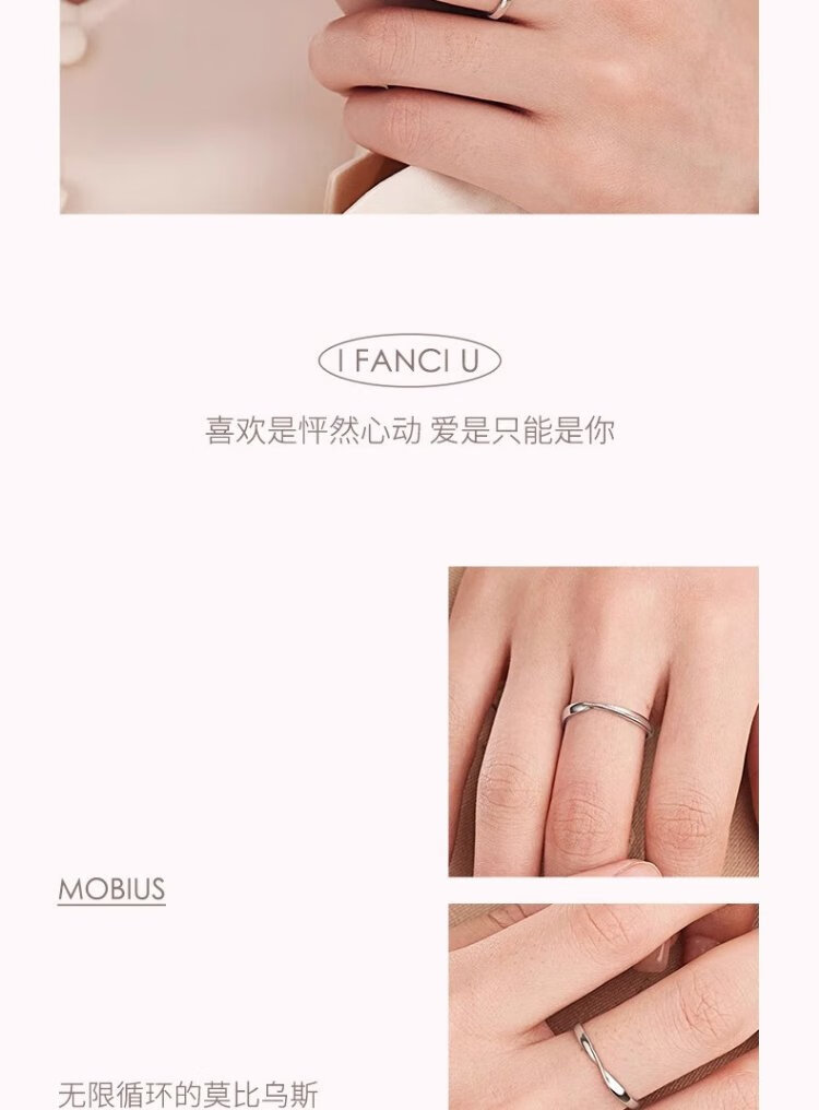 Fanci (Fanci) PT950 Mobius platinum couple rings, birthday confession gift for girlfriend, single men's ring, large size (18-24 adjustable)
