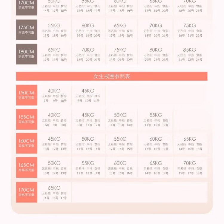 China (cm) 160-165/84-86 165-170 / 88-90 167-172 / 92-96 168-173 / 98-102 170-176 / 106-110